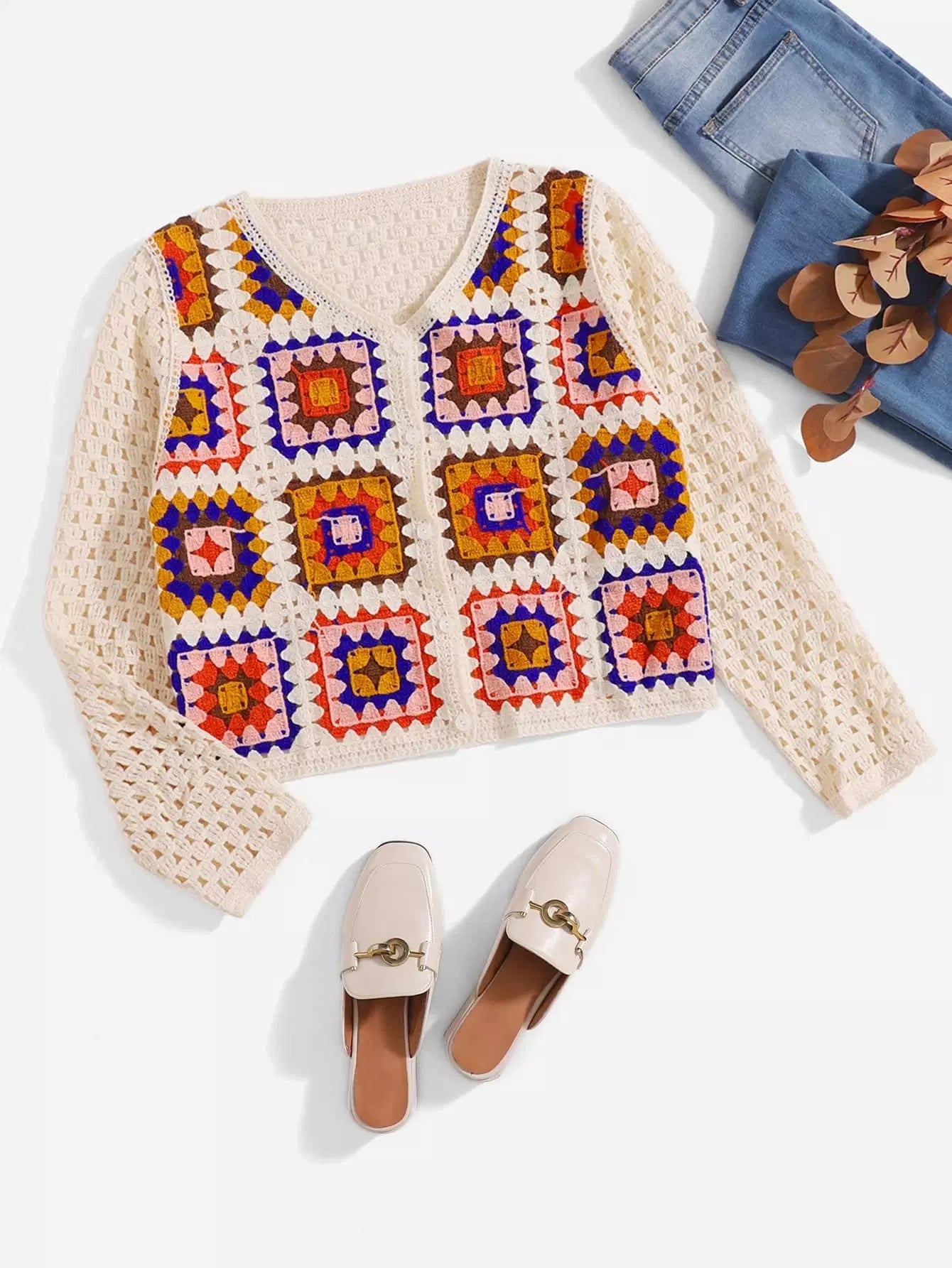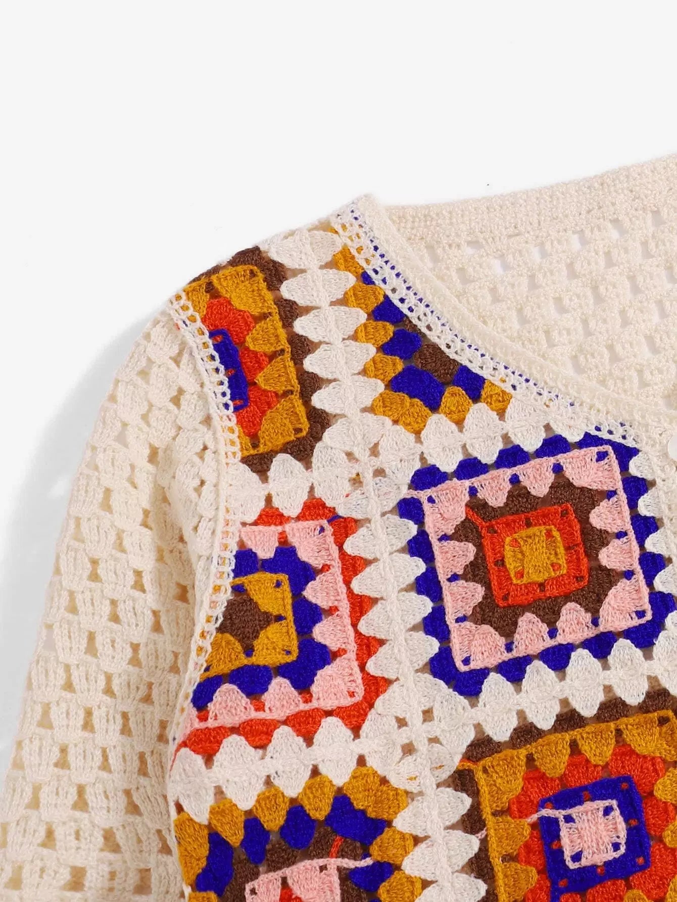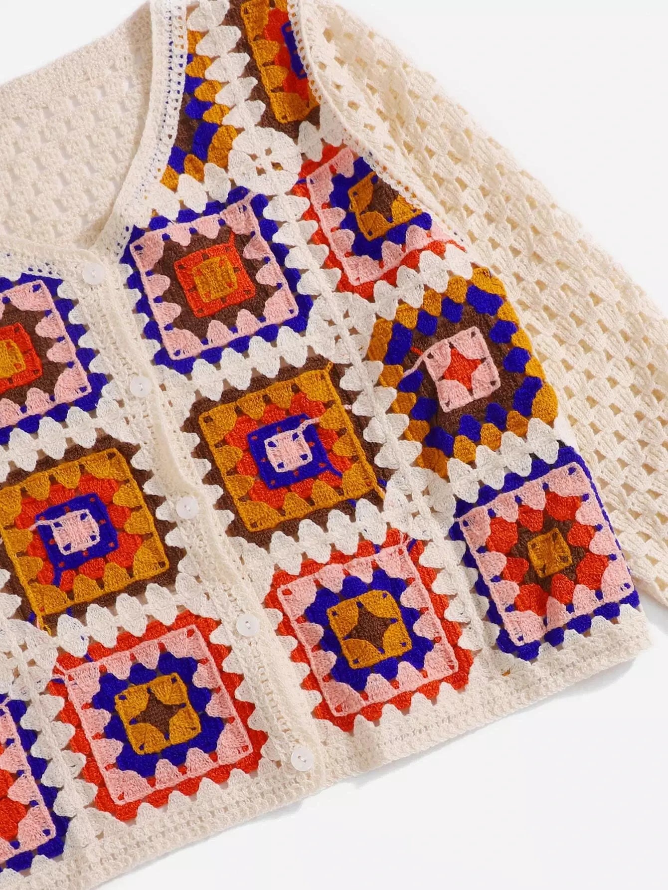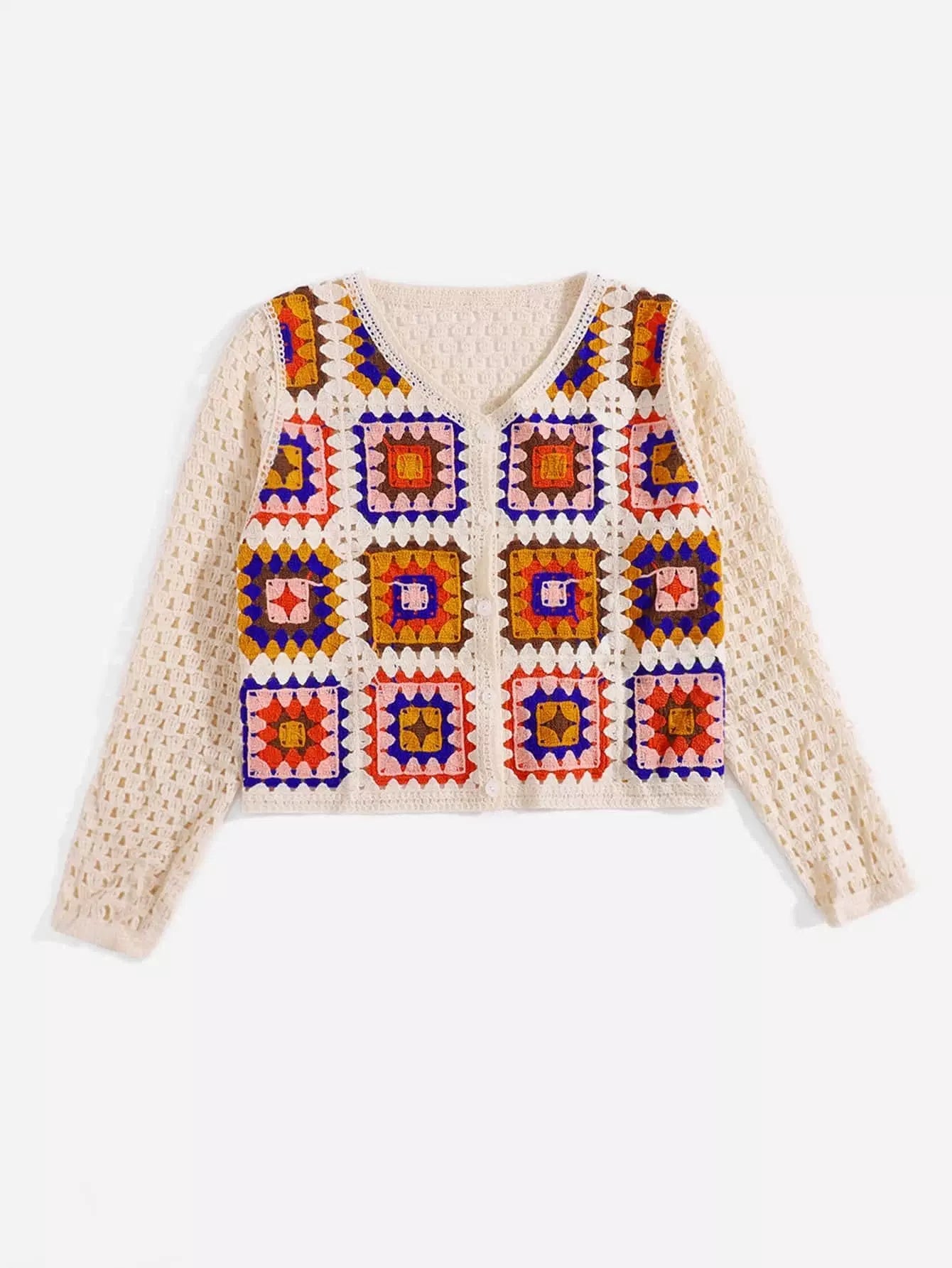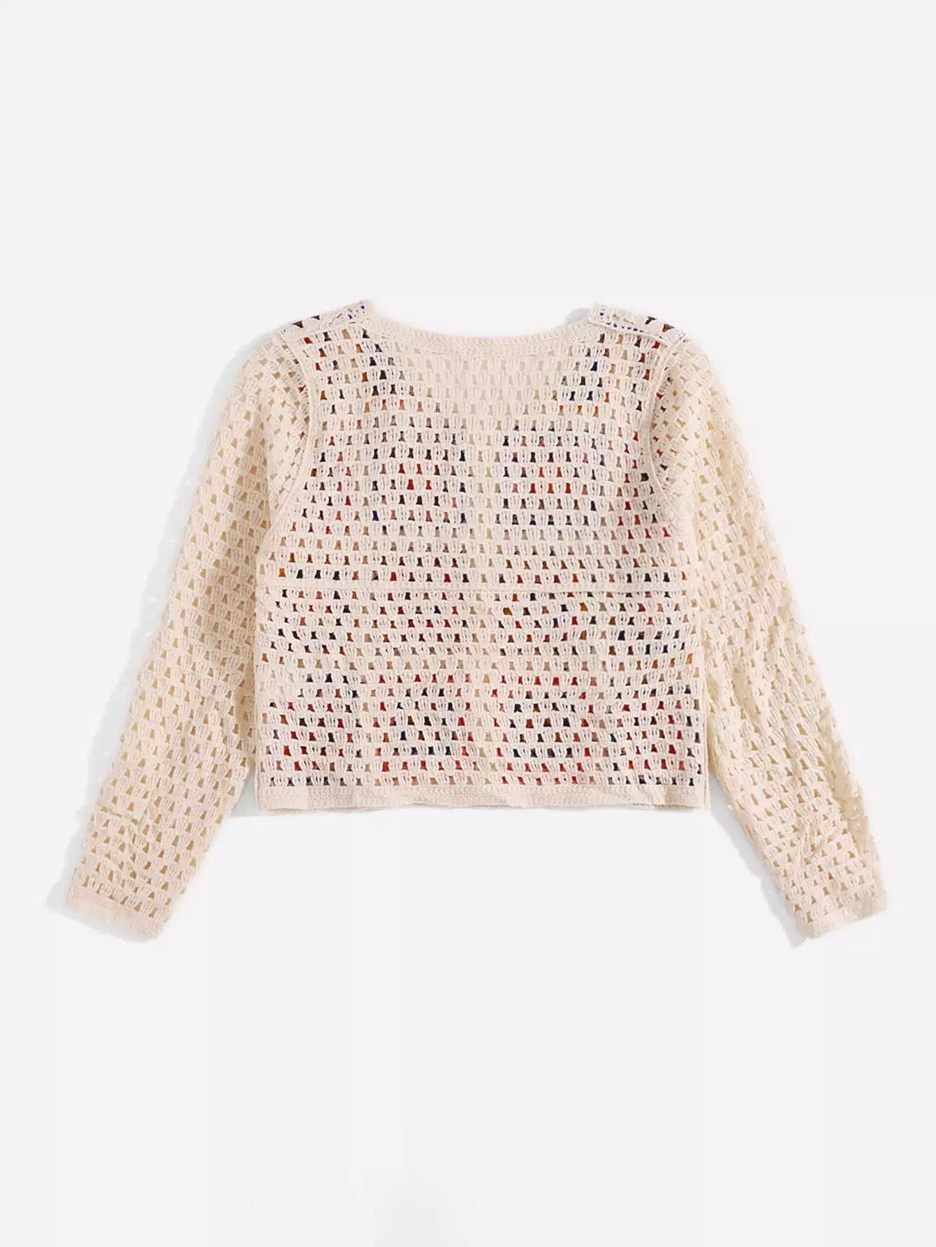 Pointelle Knit Graphic Pattern Cardigan