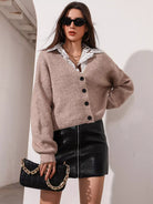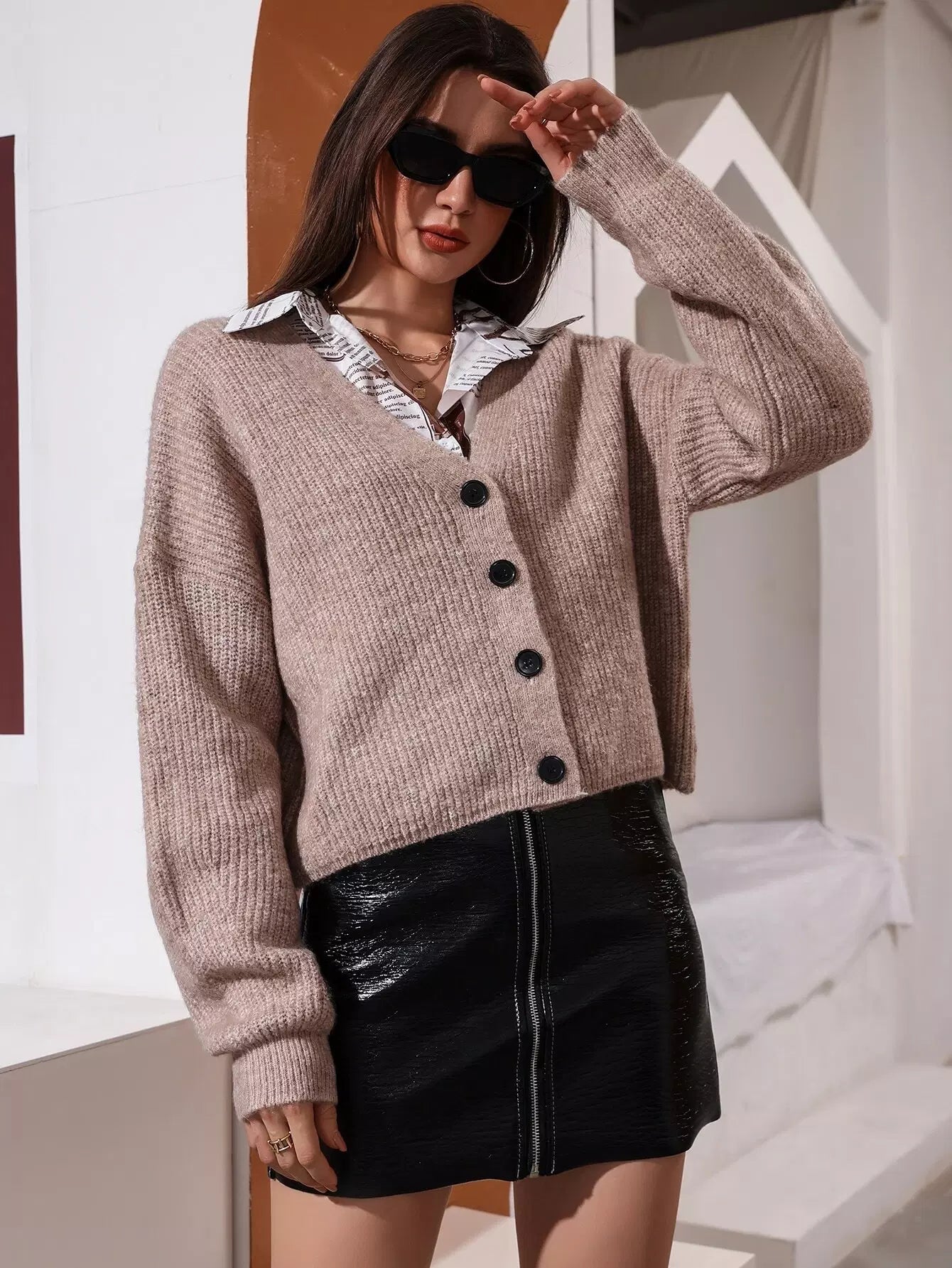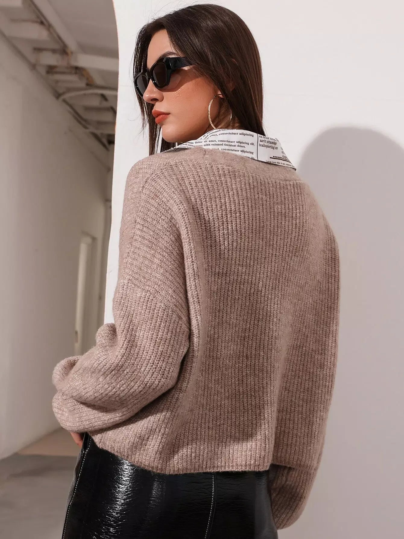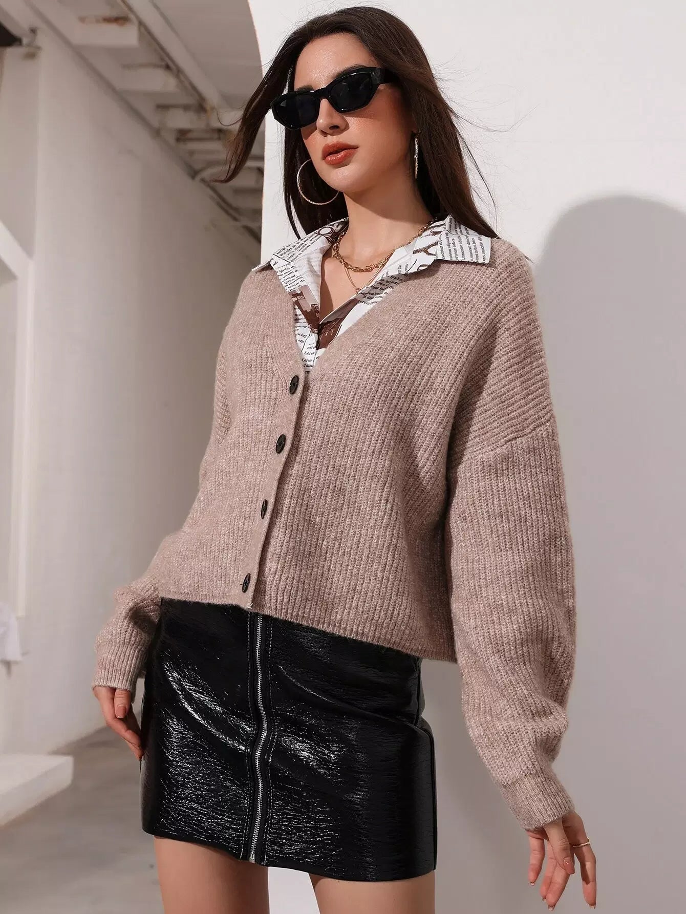 Rib-knit Button Up Drop Shoulder Cardigan Without Blouse