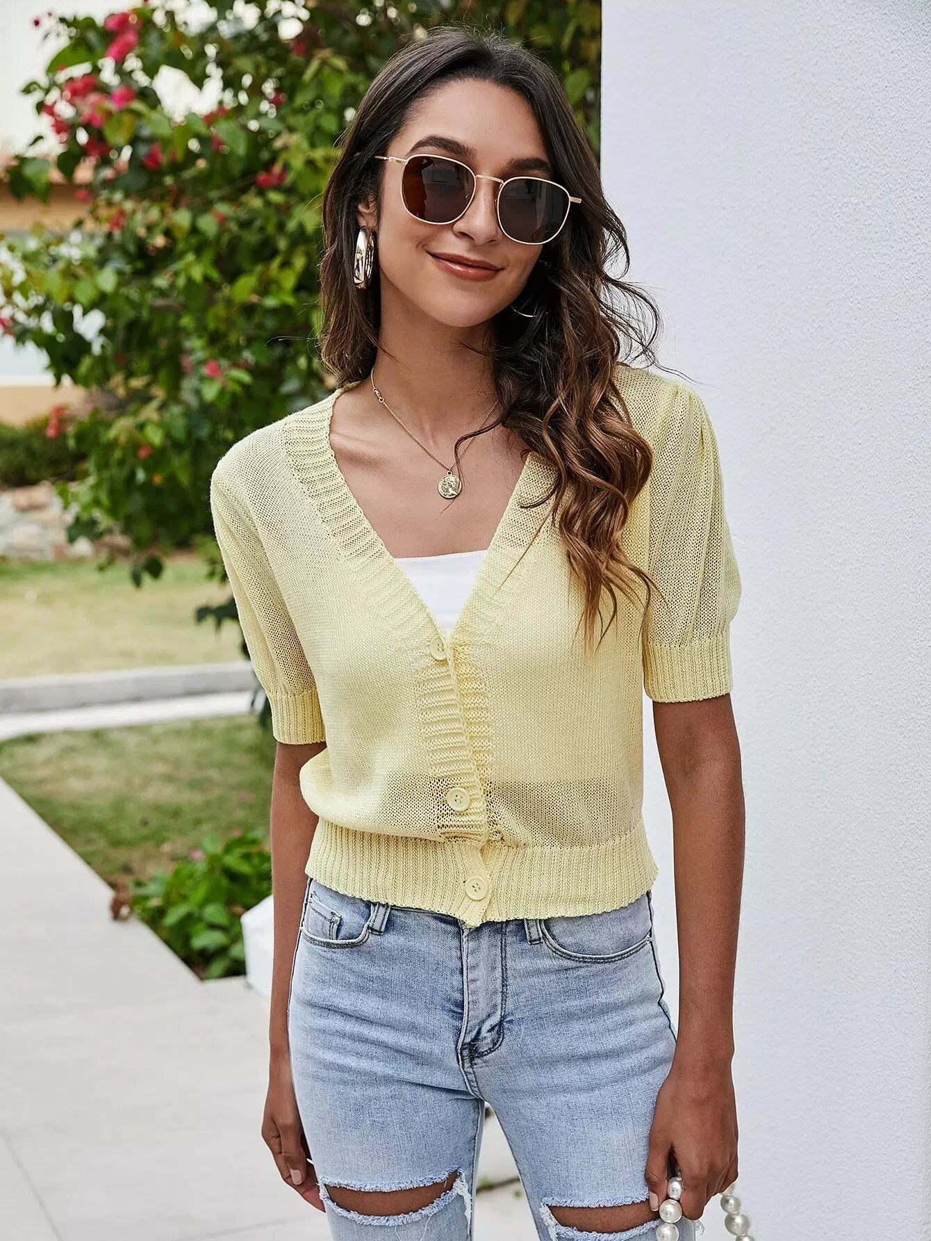Solid Button Front Sheer Cardigan Without Camisole