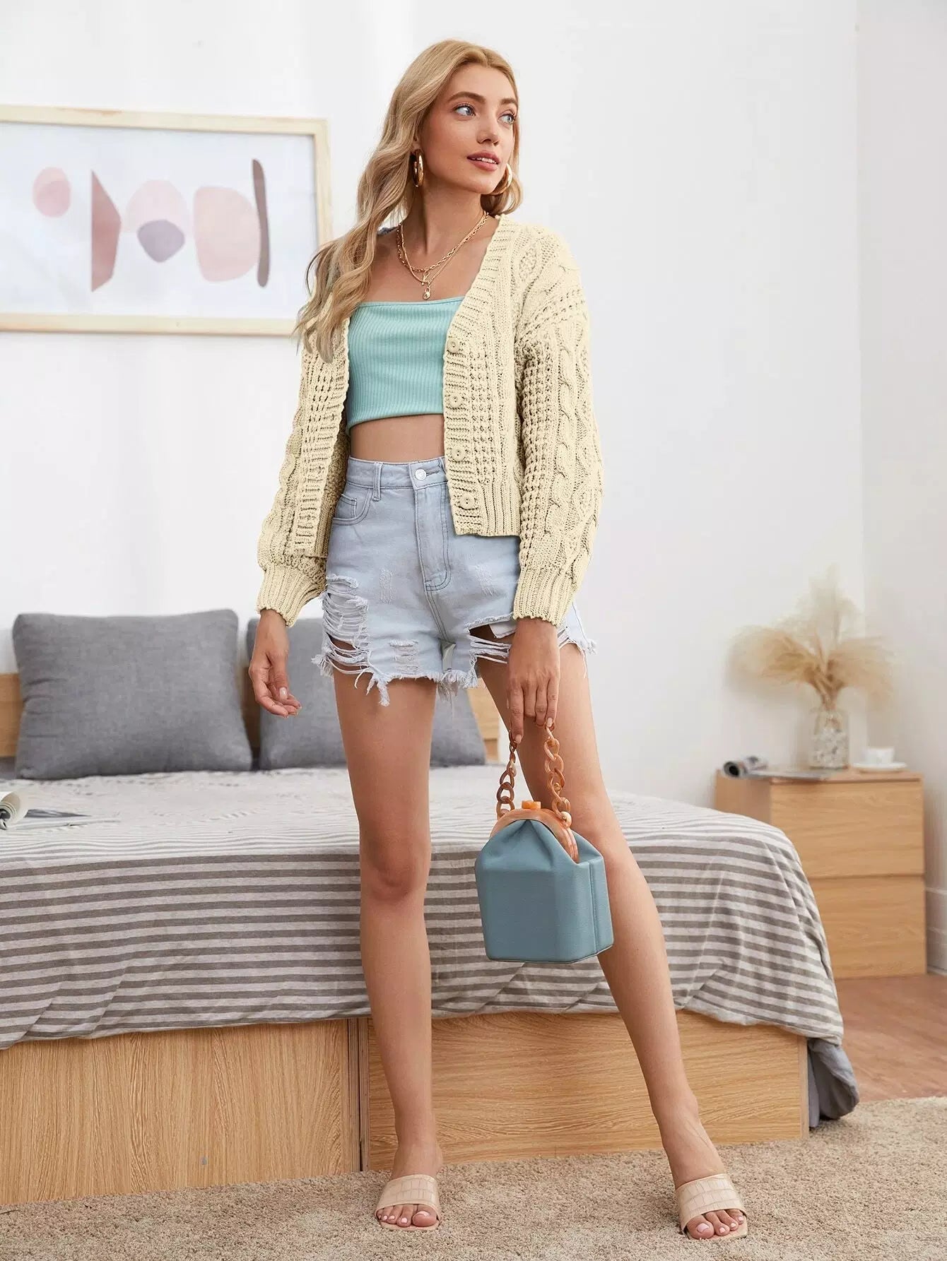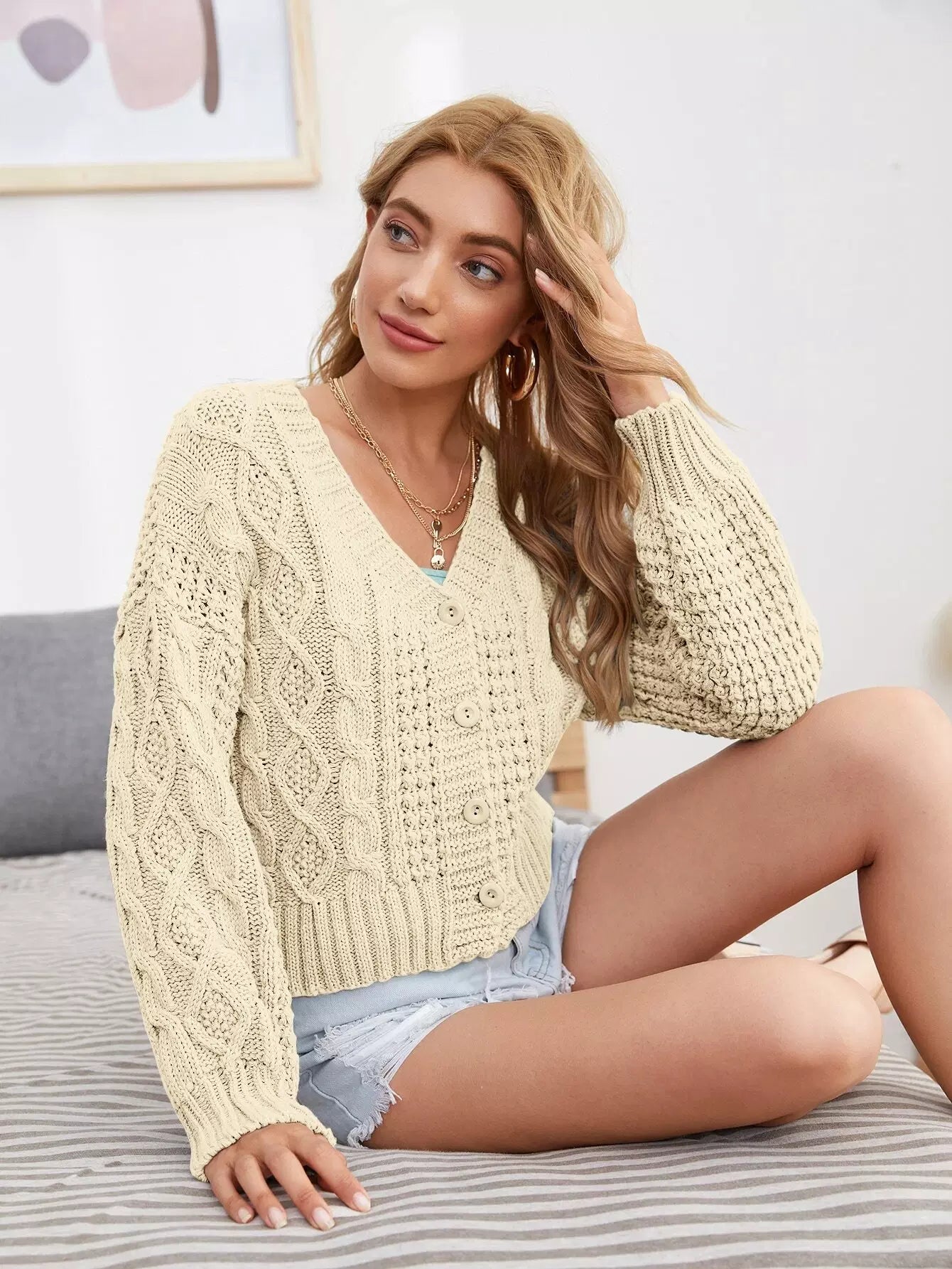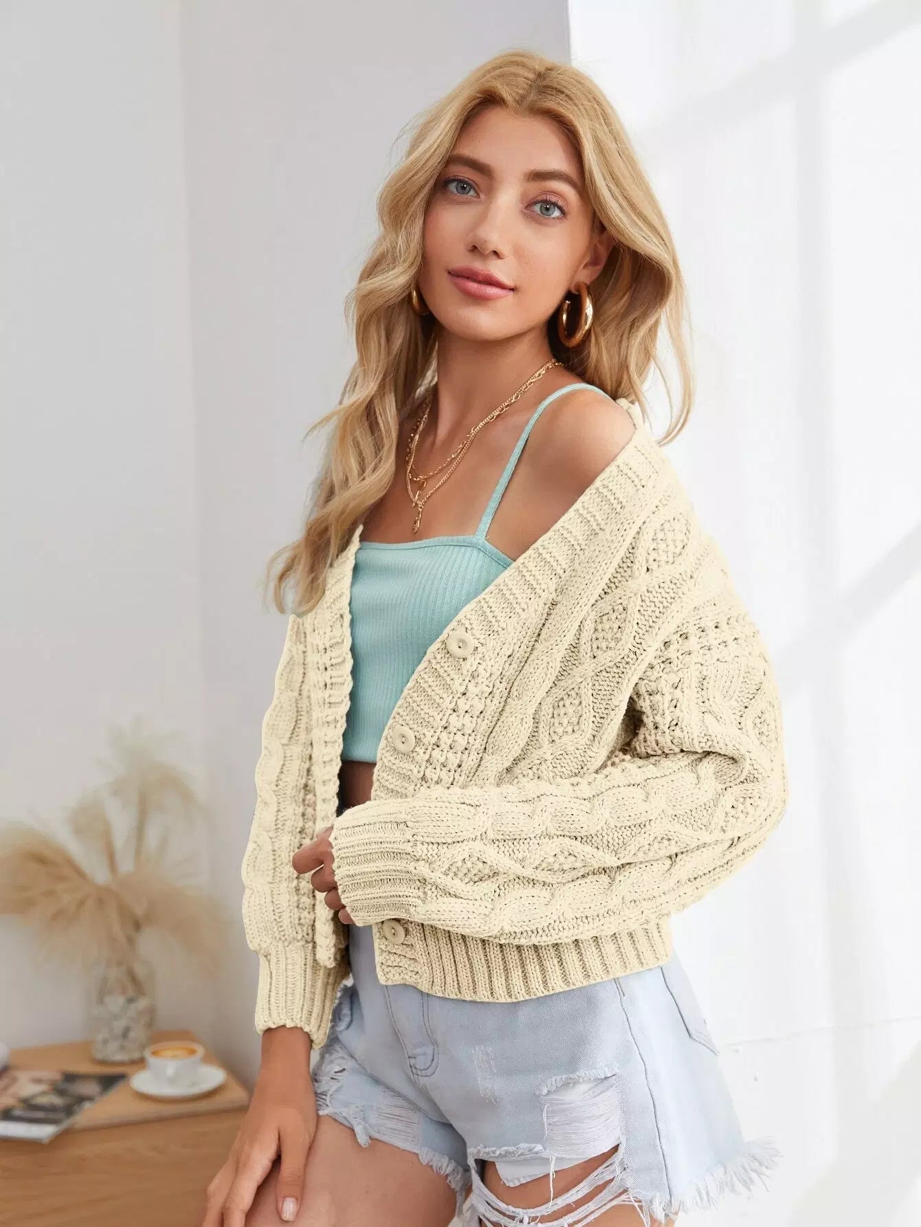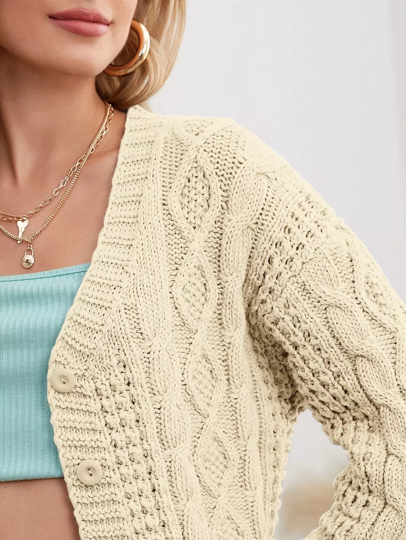 Solid Cable Knit Button Through Cardigan