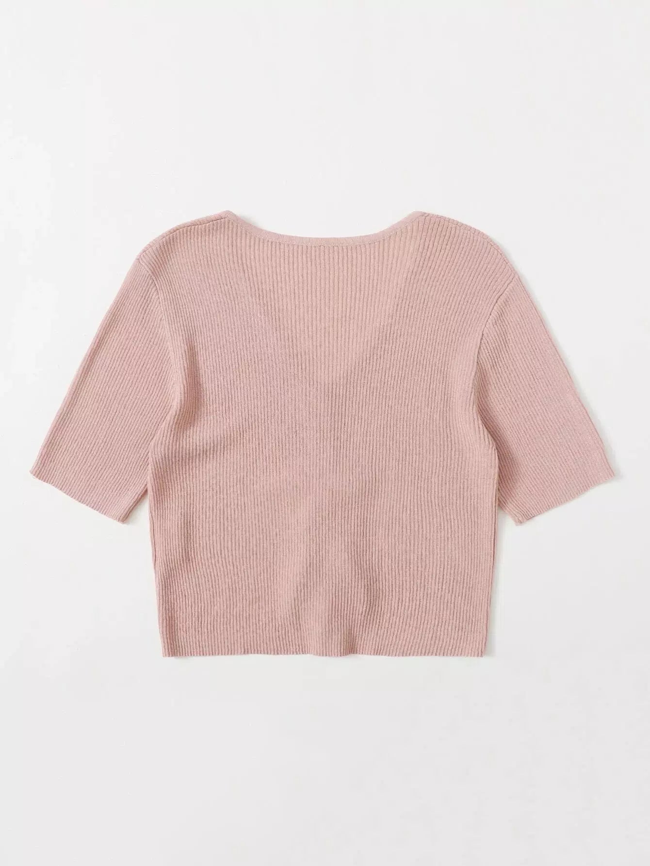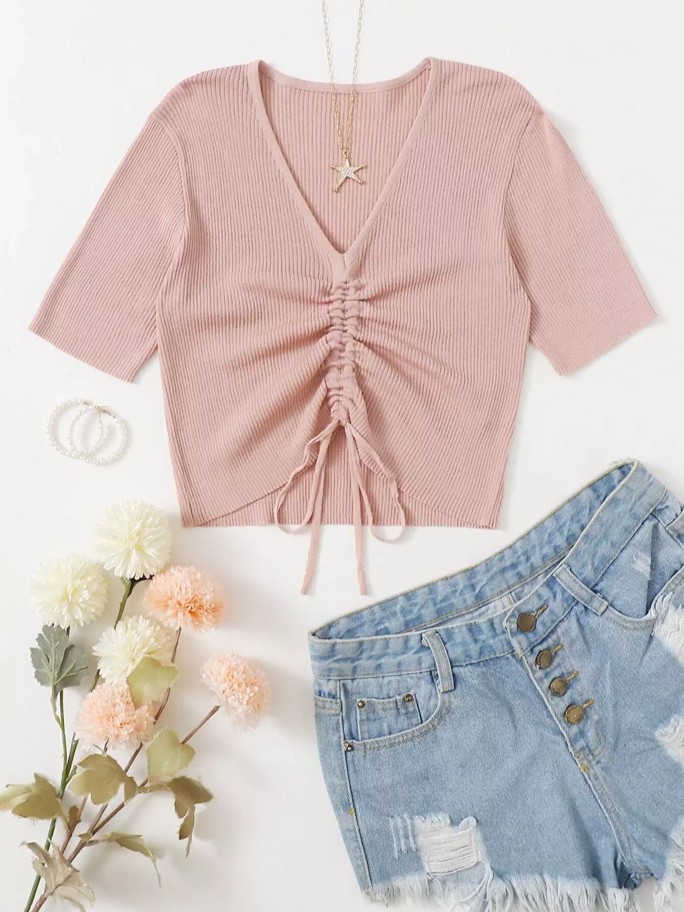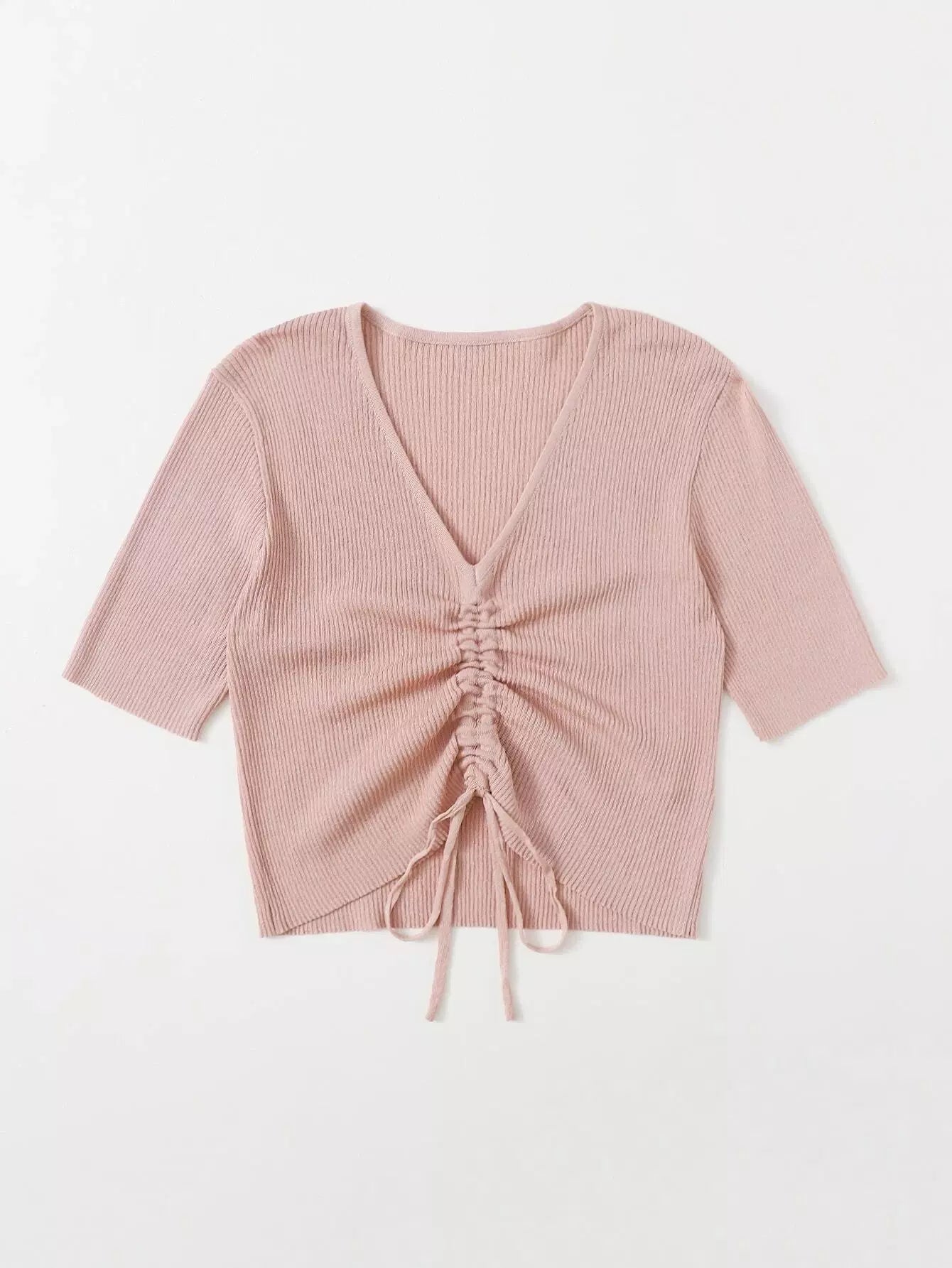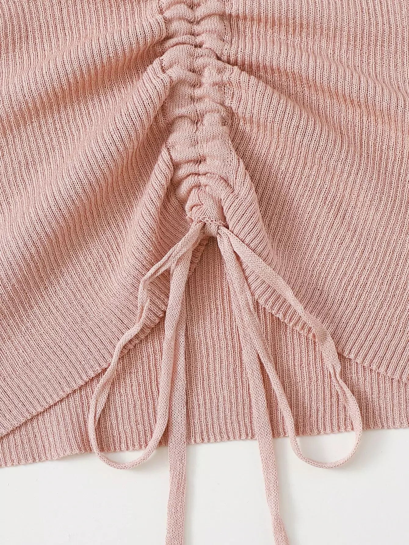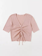 Drawstring Front Crop Rib Knit Top