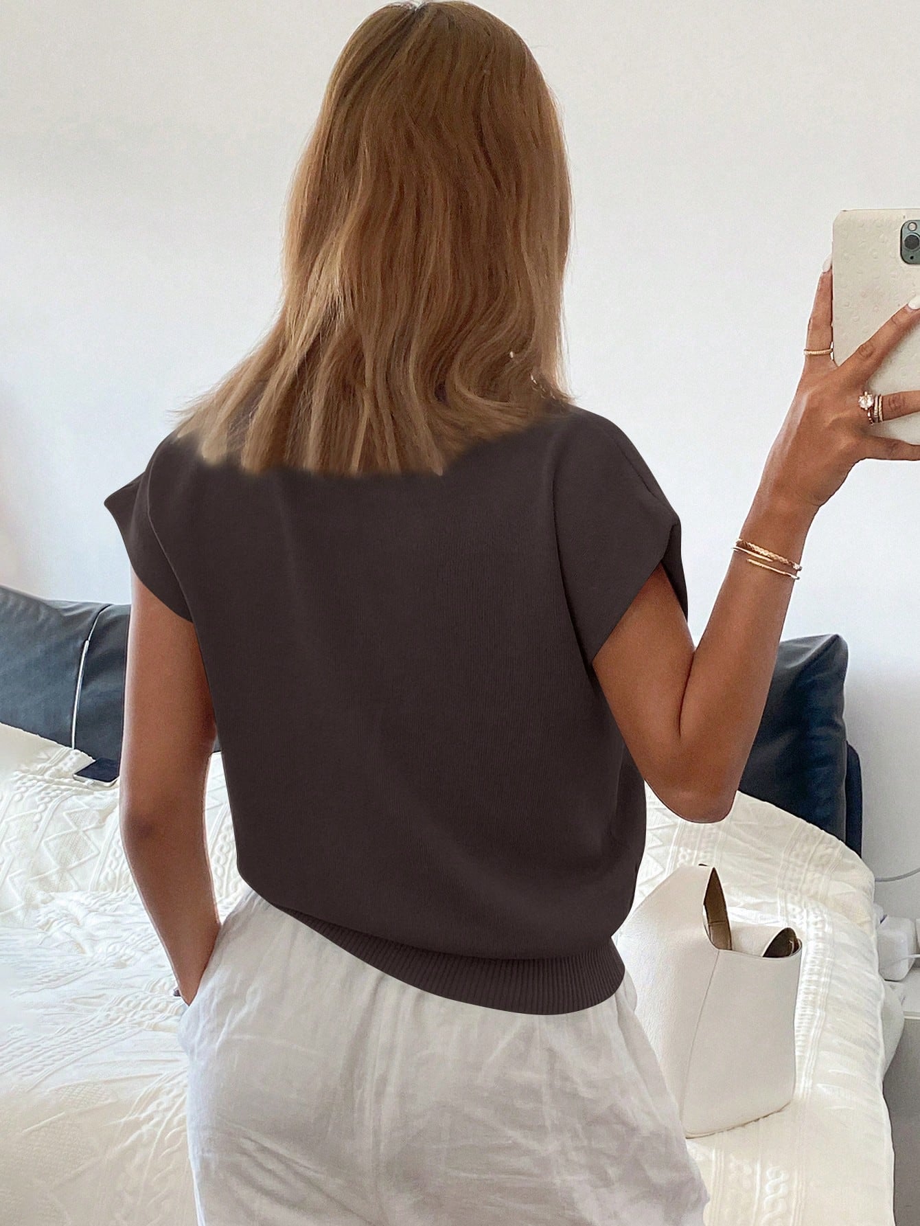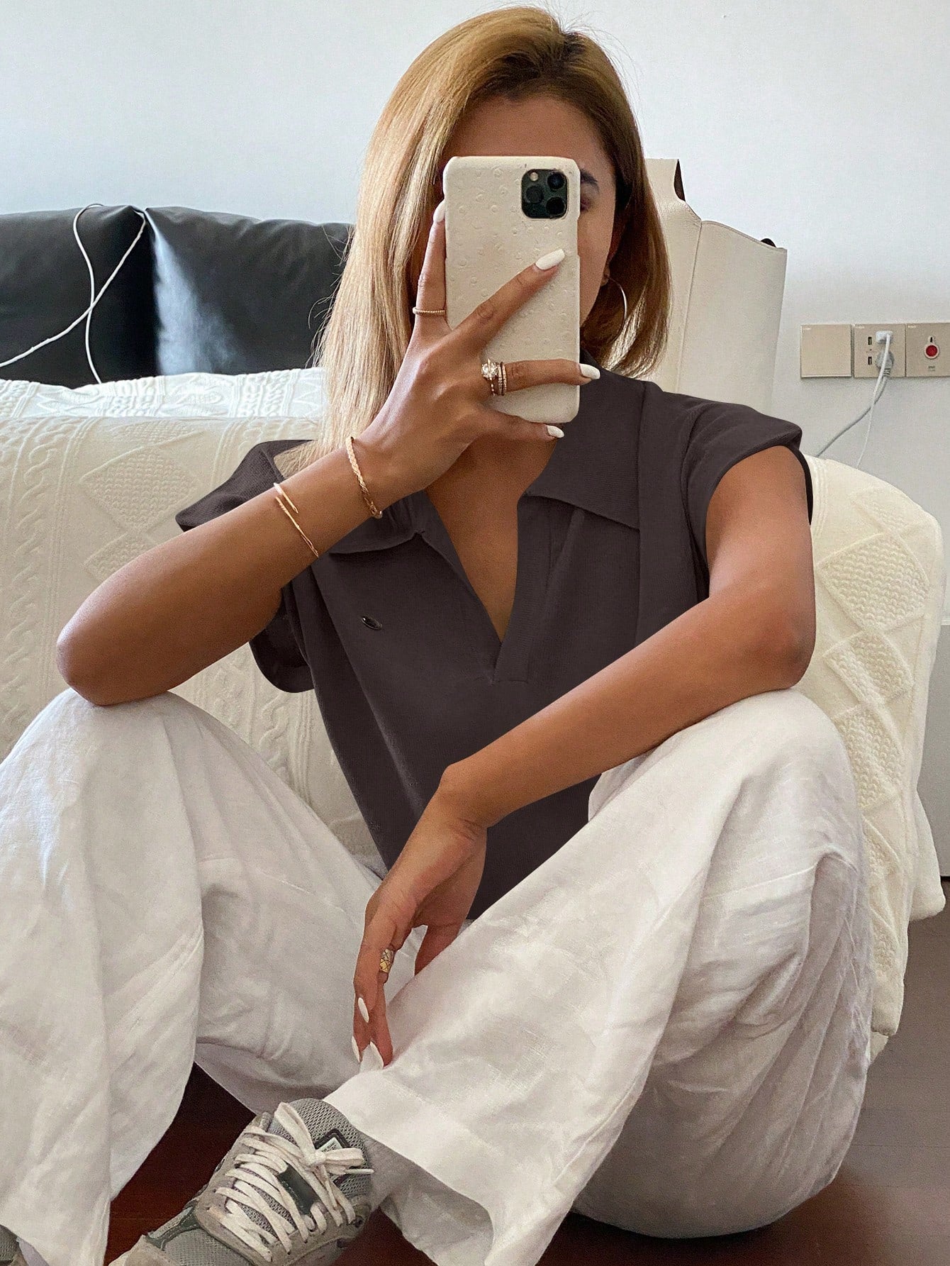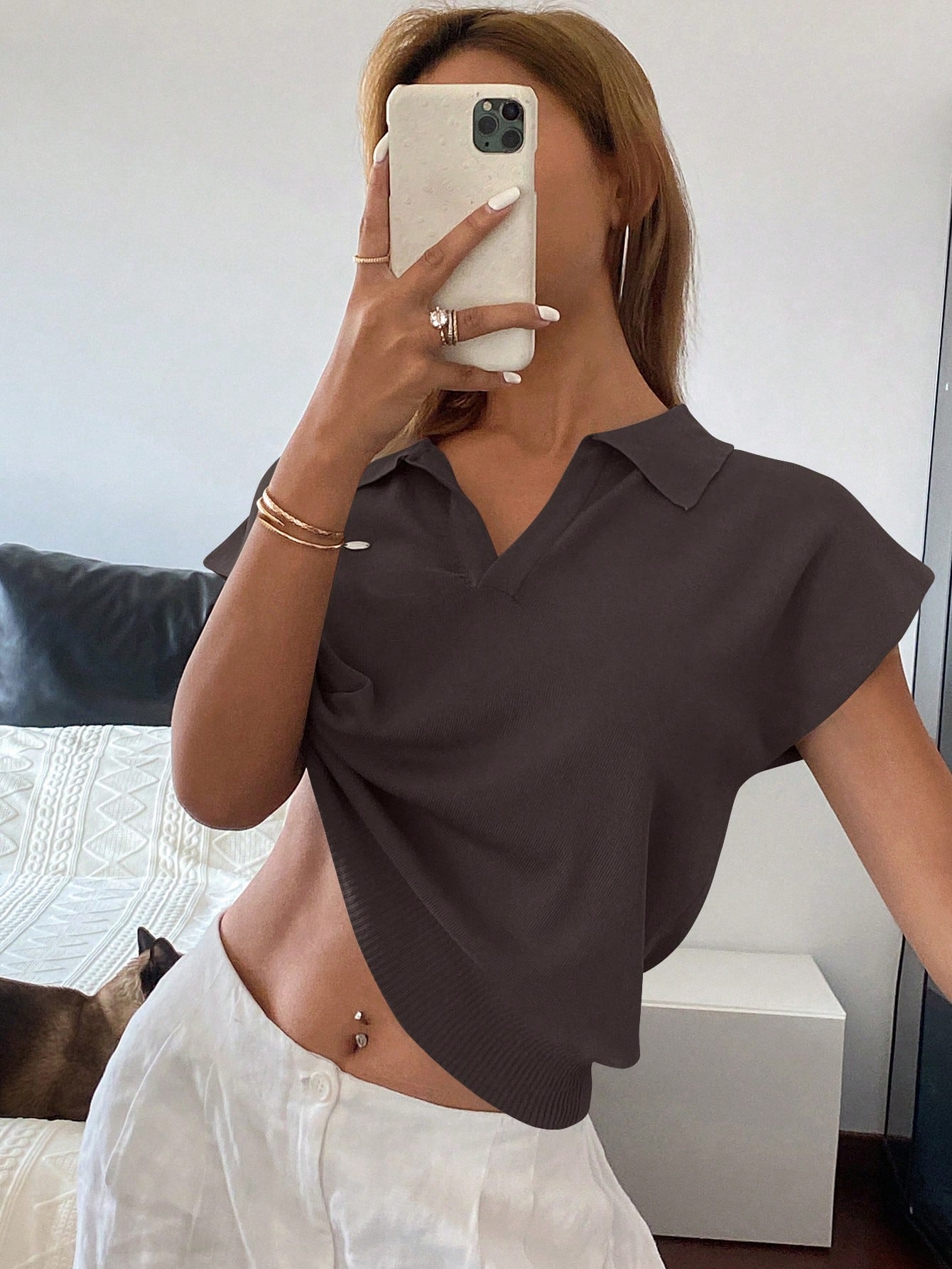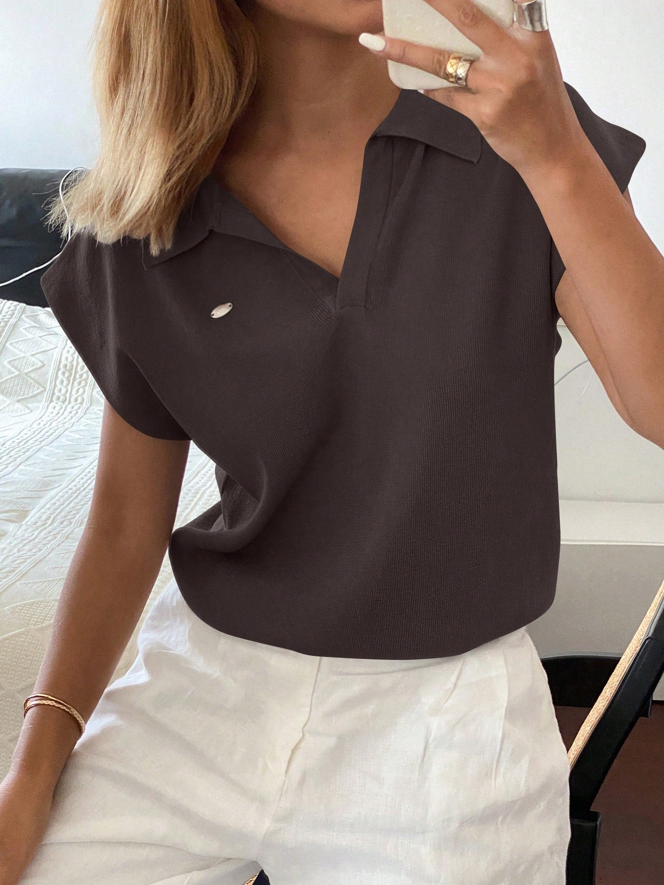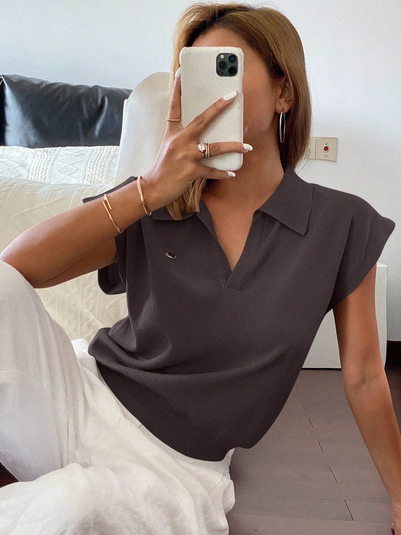 Livesso Women's Solid Fitted Polo Collar Knit Top Commuter Casual For Spring/Summer