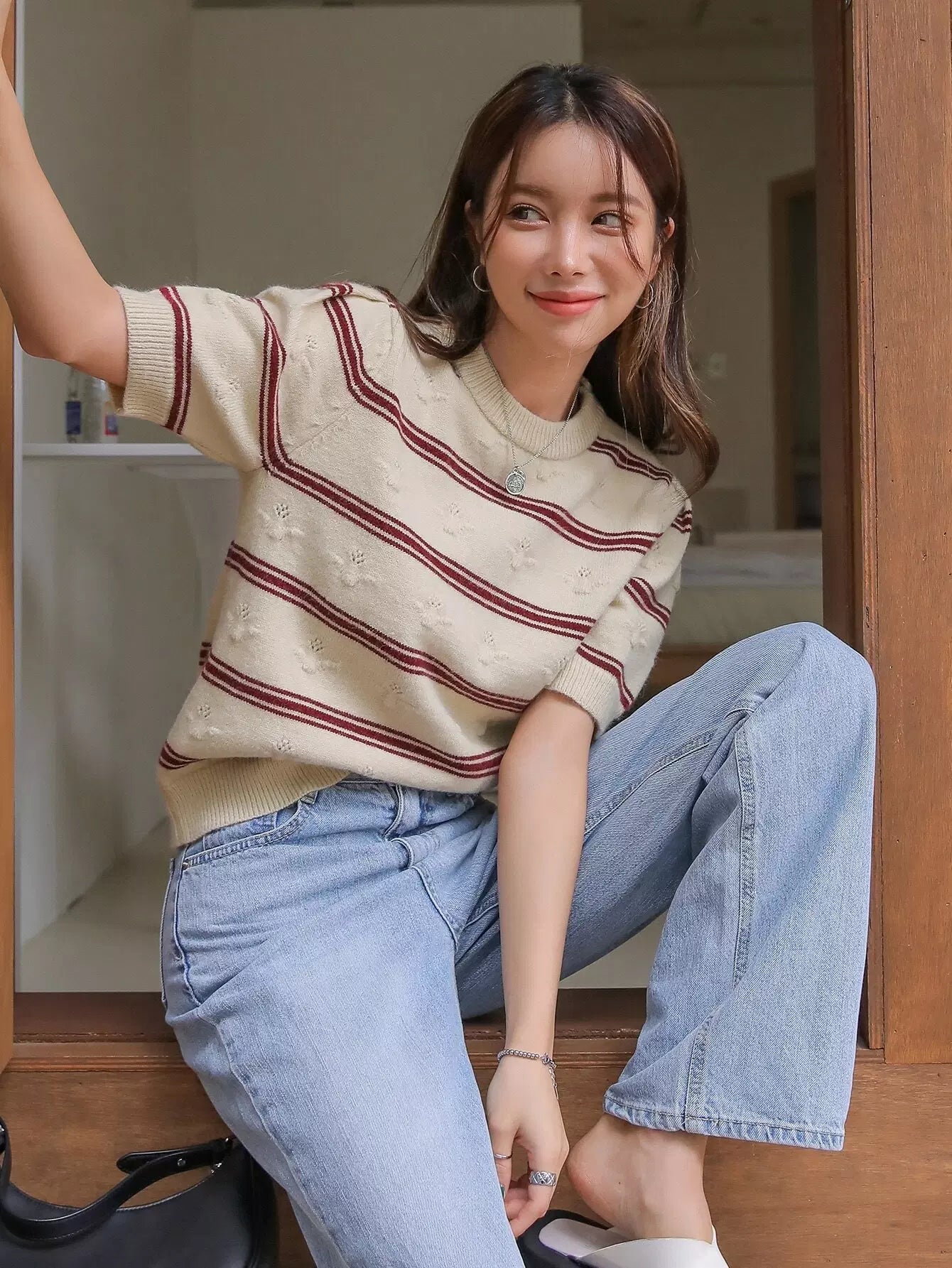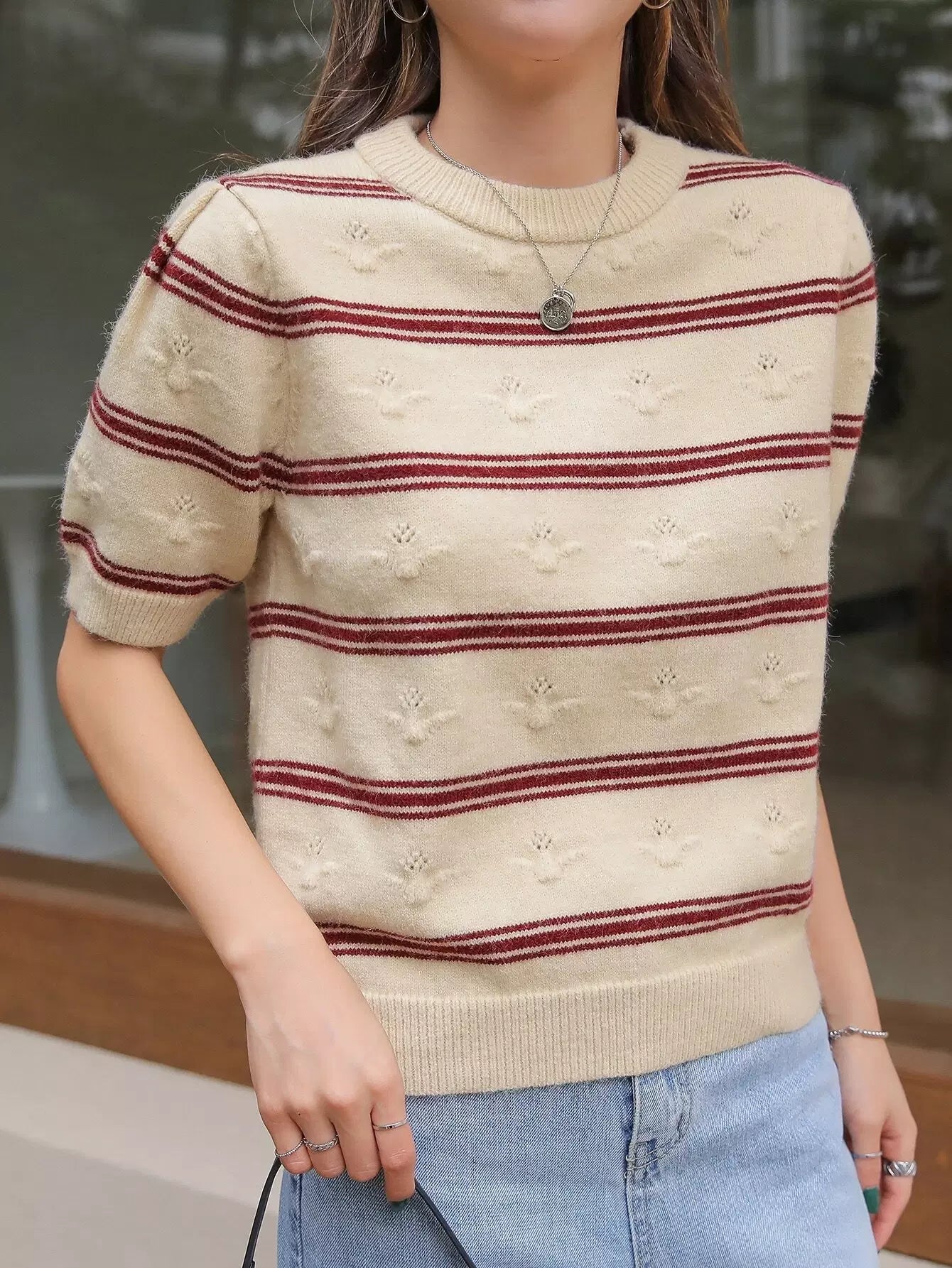 Stripe Pattern Round Neck Knit Top