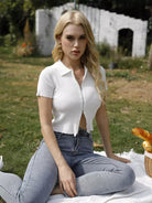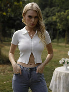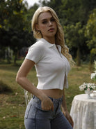 Zipper Front Crop Ribbed Knit Top