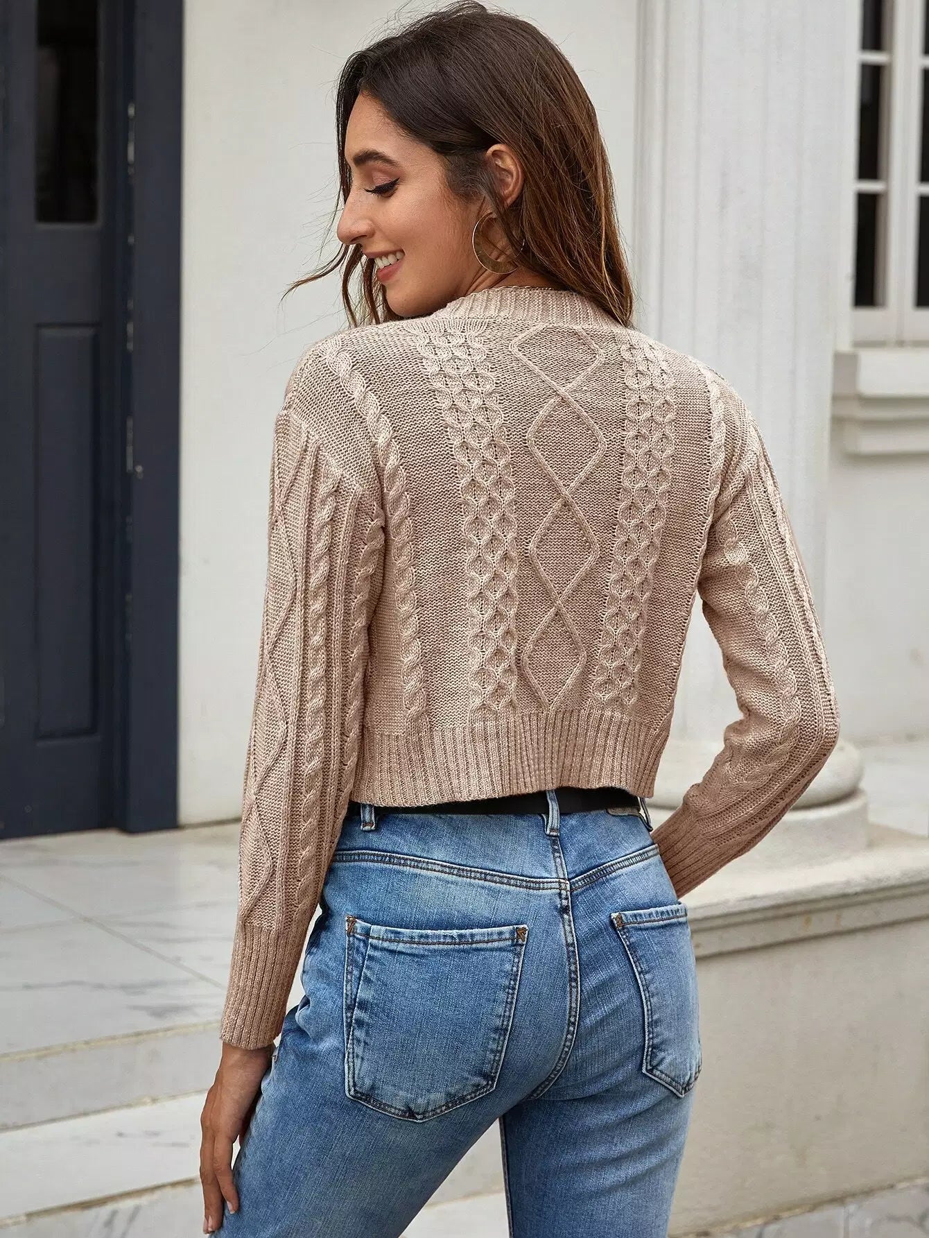 Cable Knit Bandeau Top & Cropped Cardigan Set