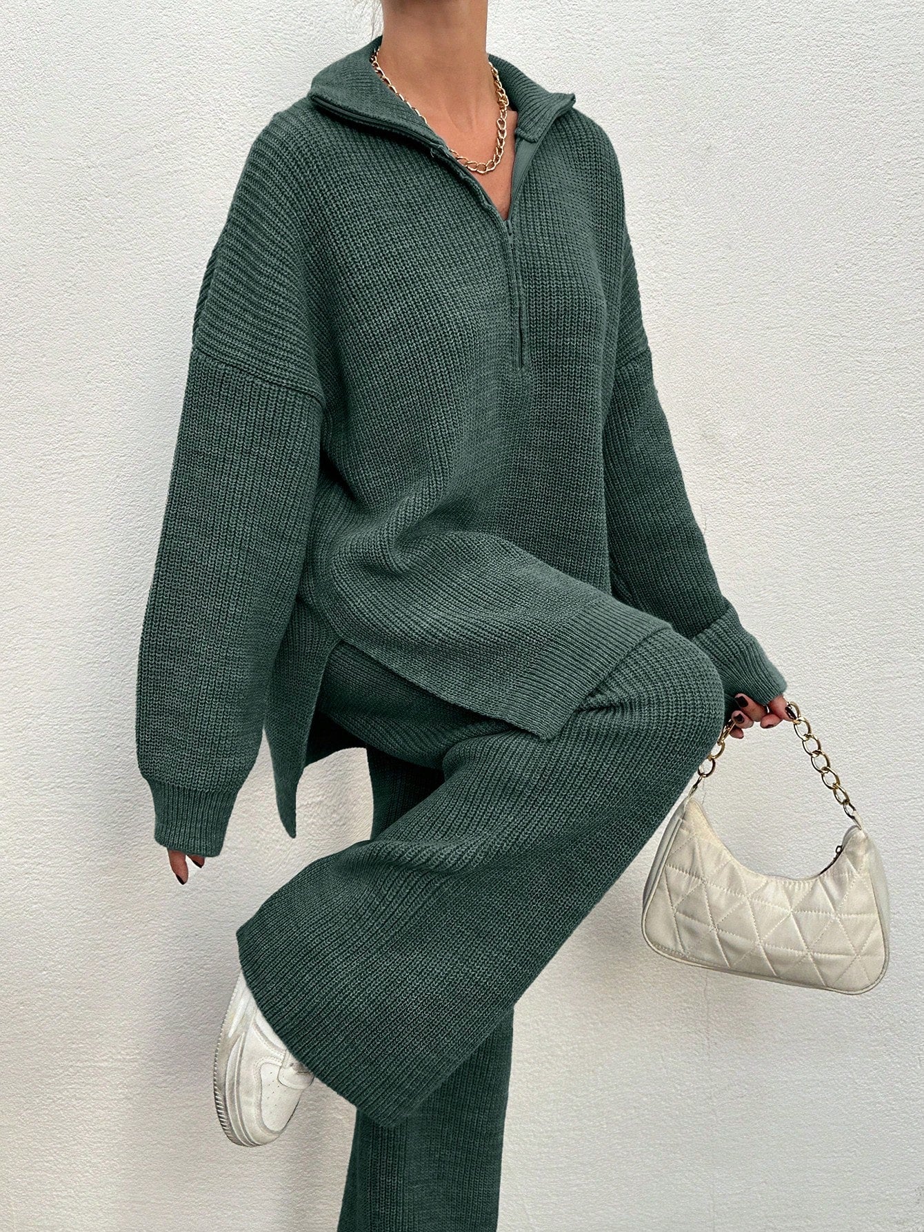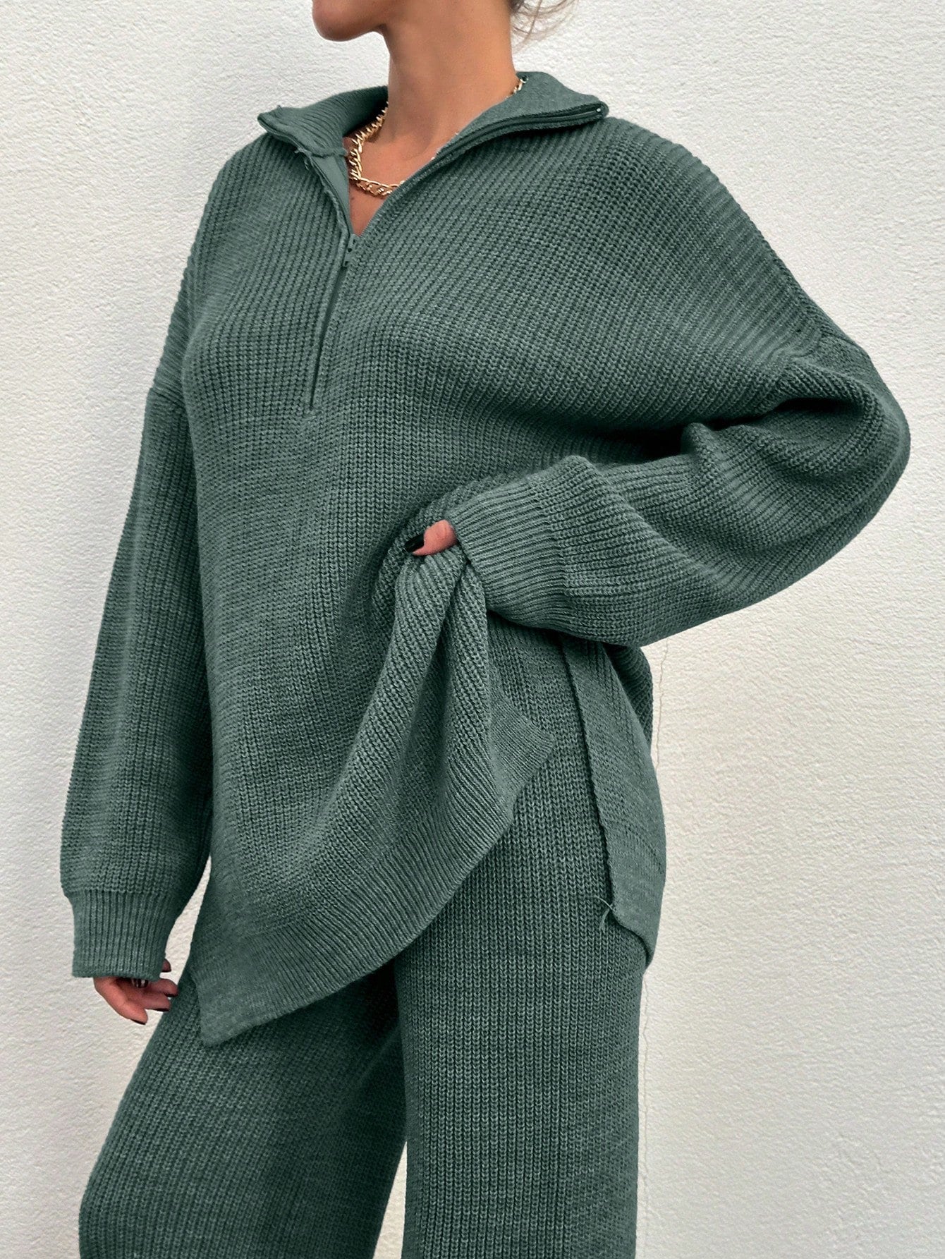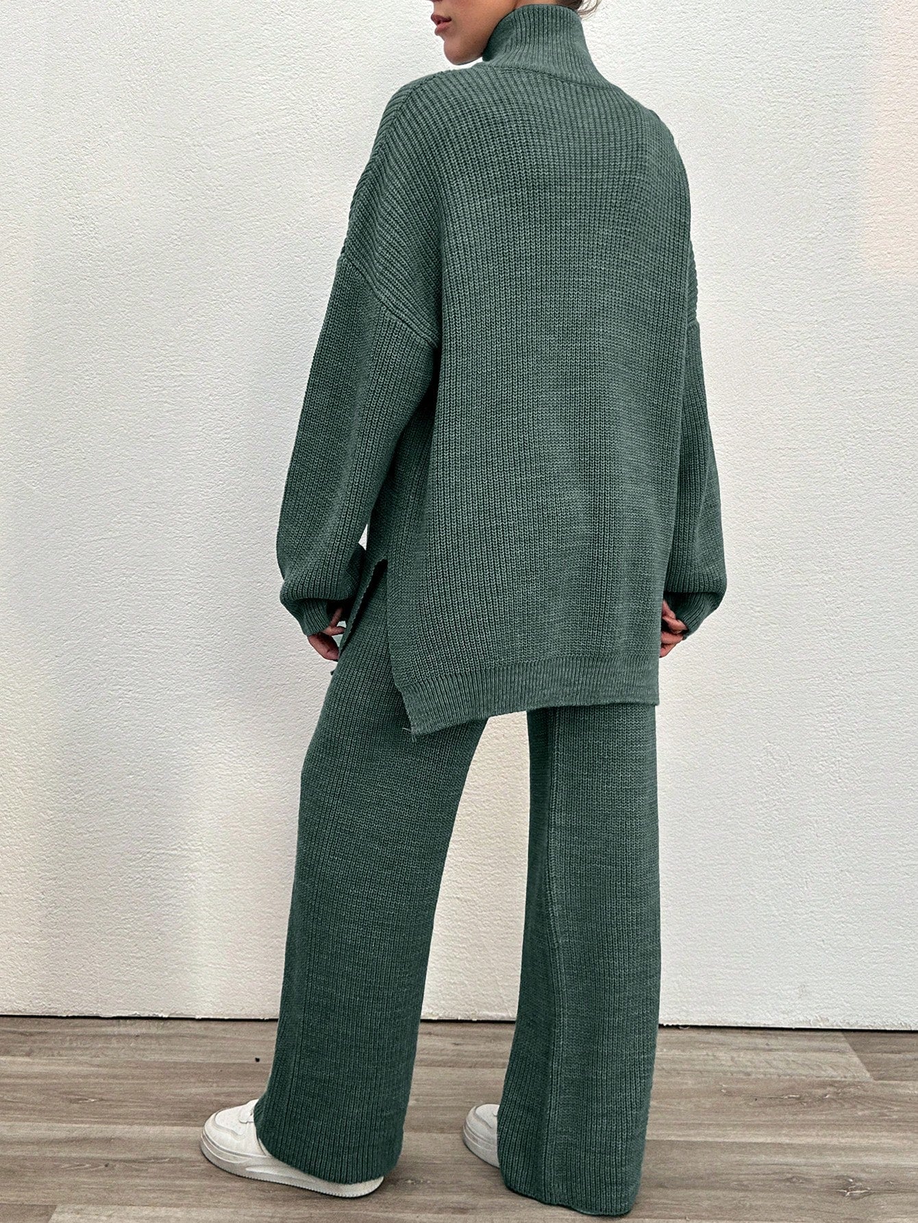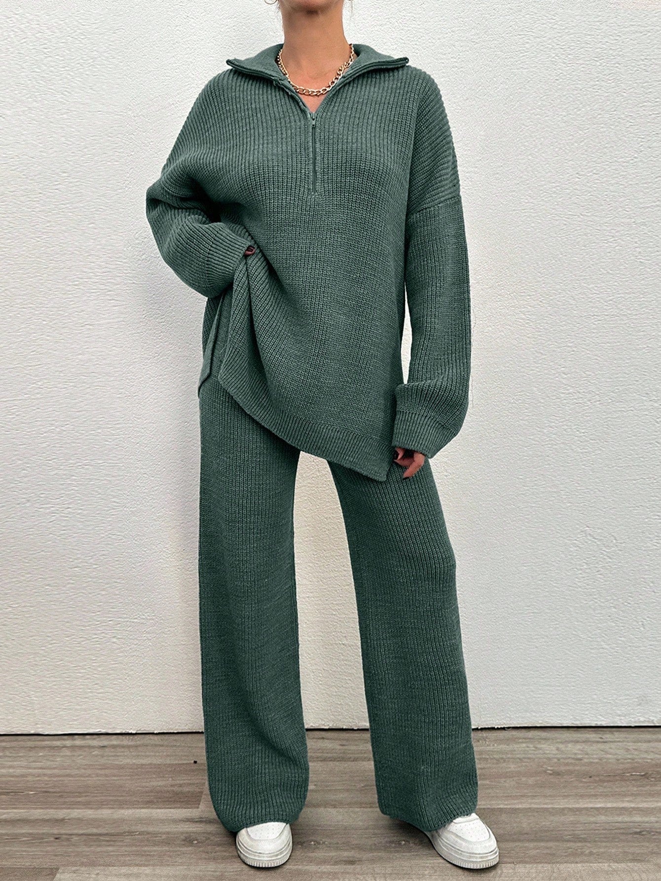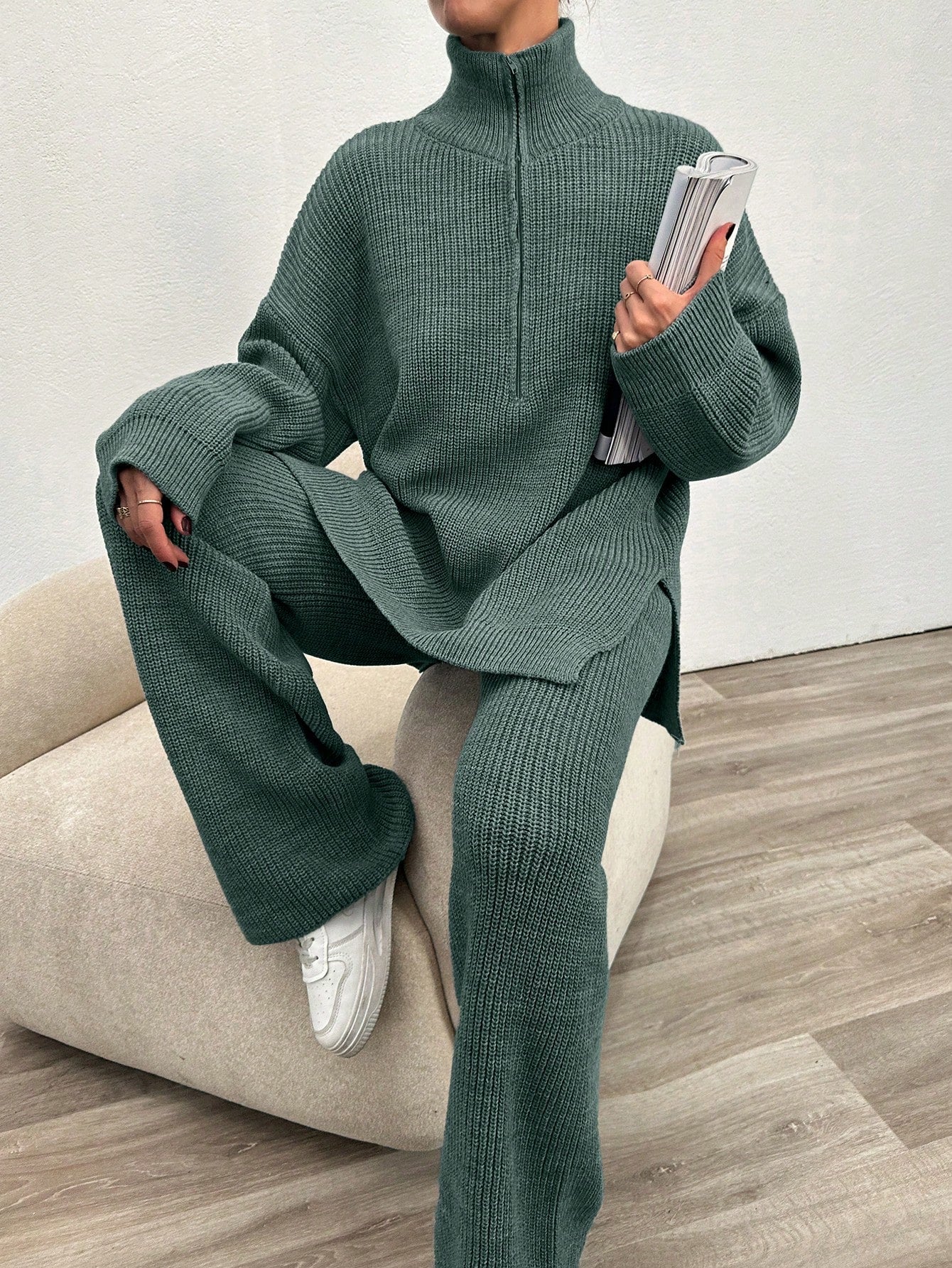 EURMUSE 2pcs Women's Plain Zip Up Long Sleeve Sweater Suit And Sweatpants