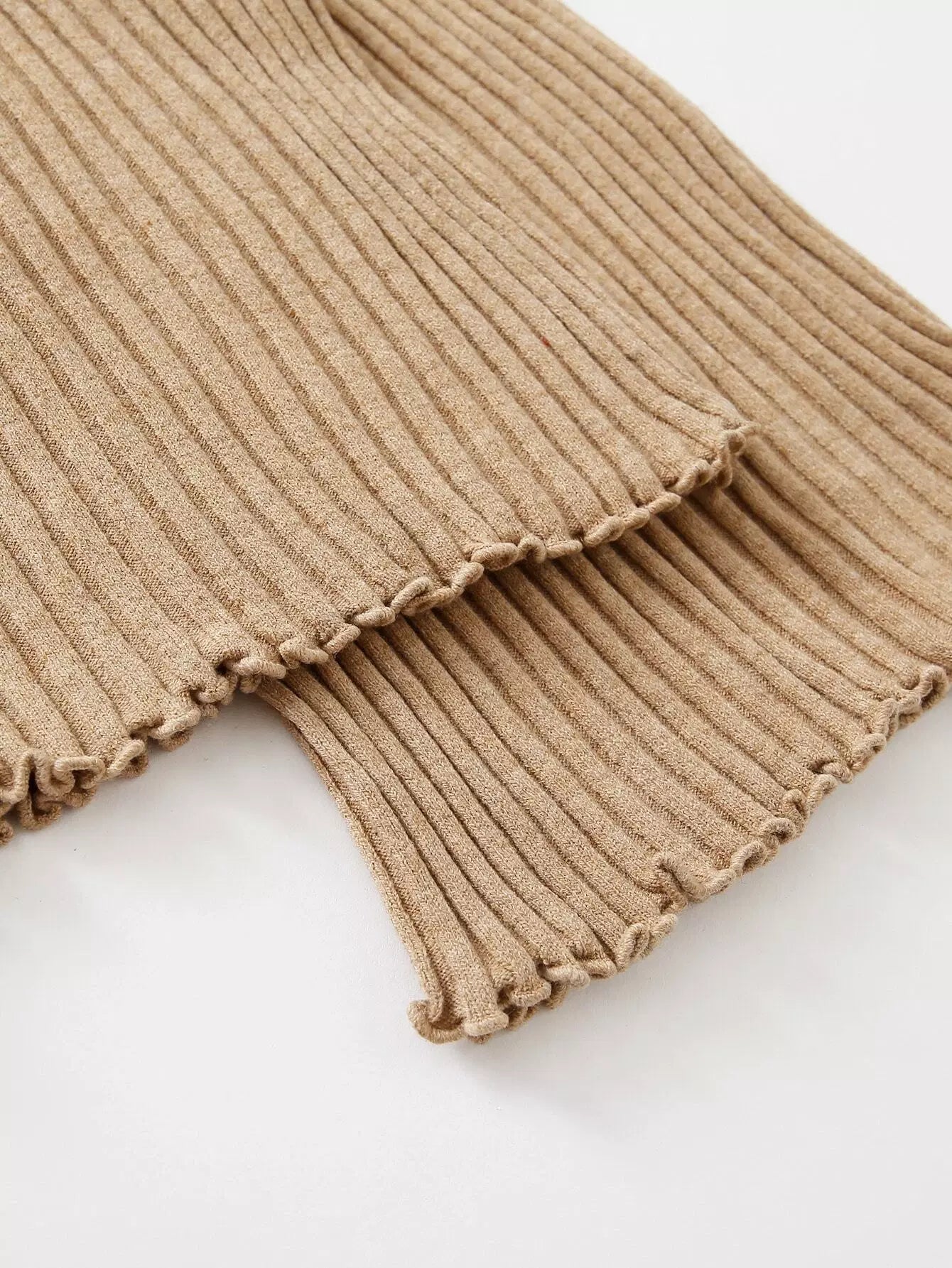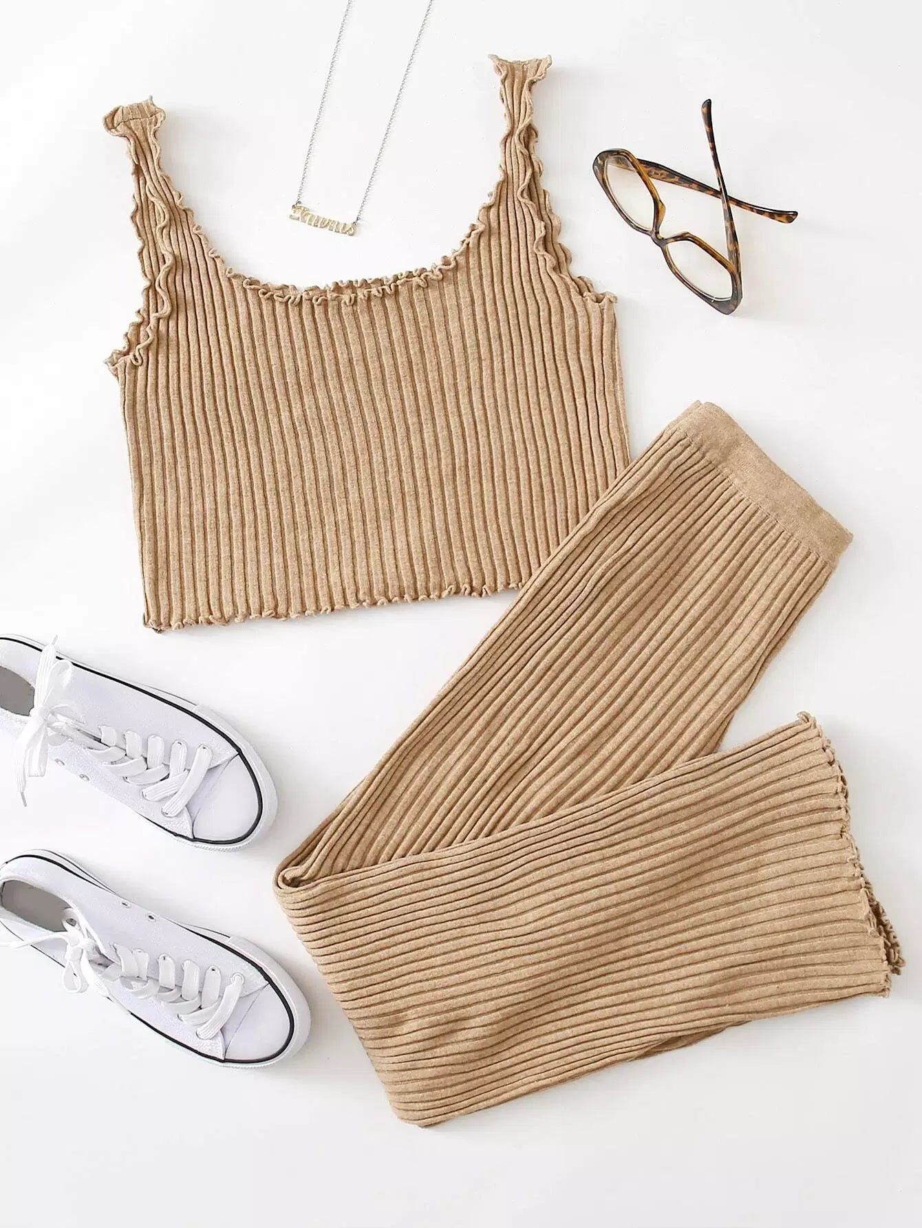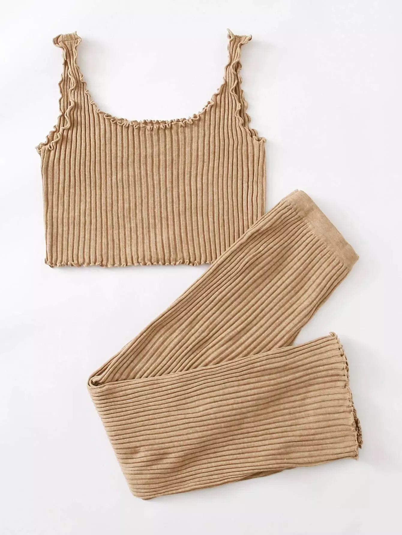 Lettuce Trim Rib-knit Top & Pants Set