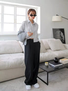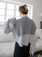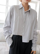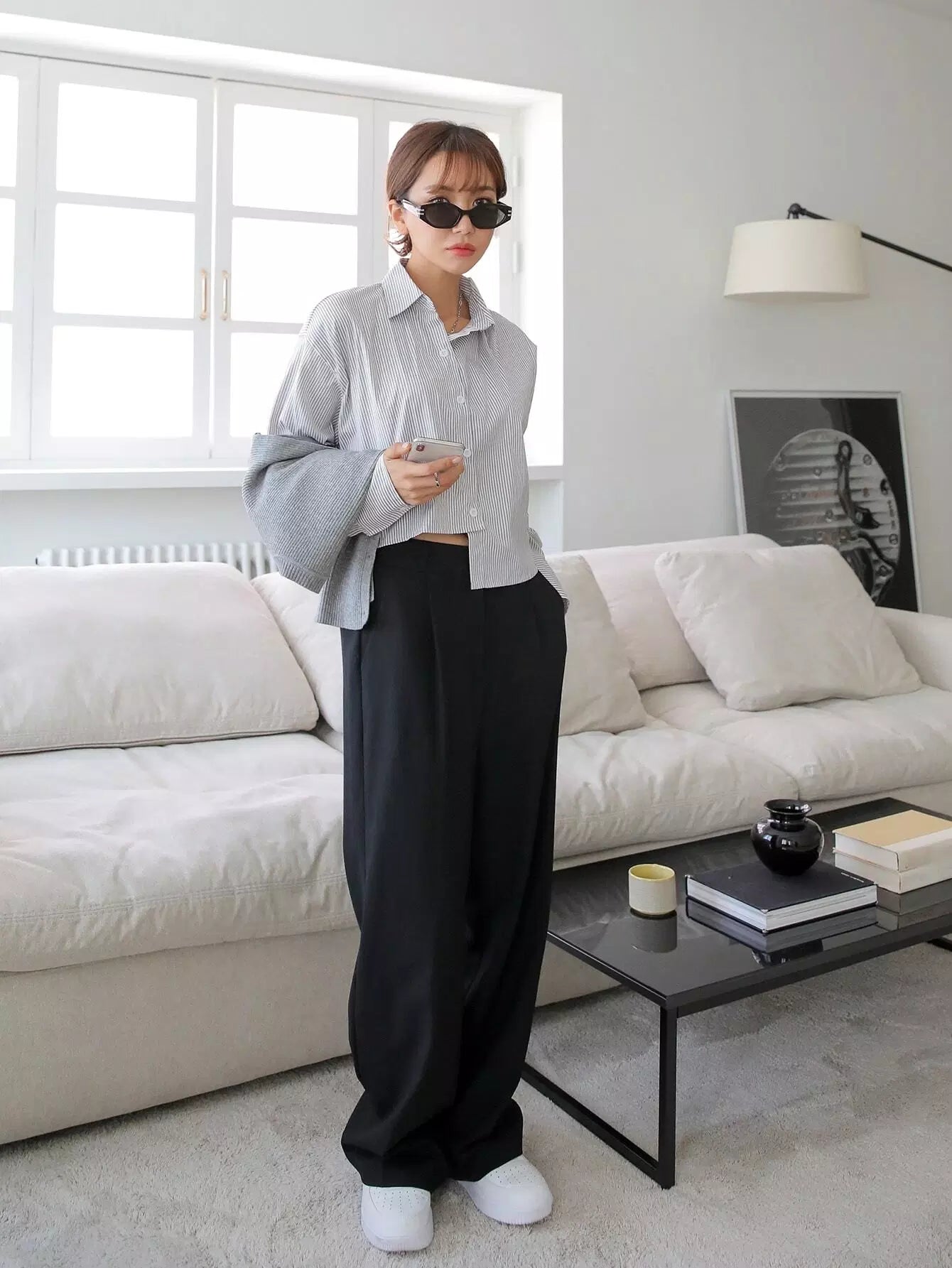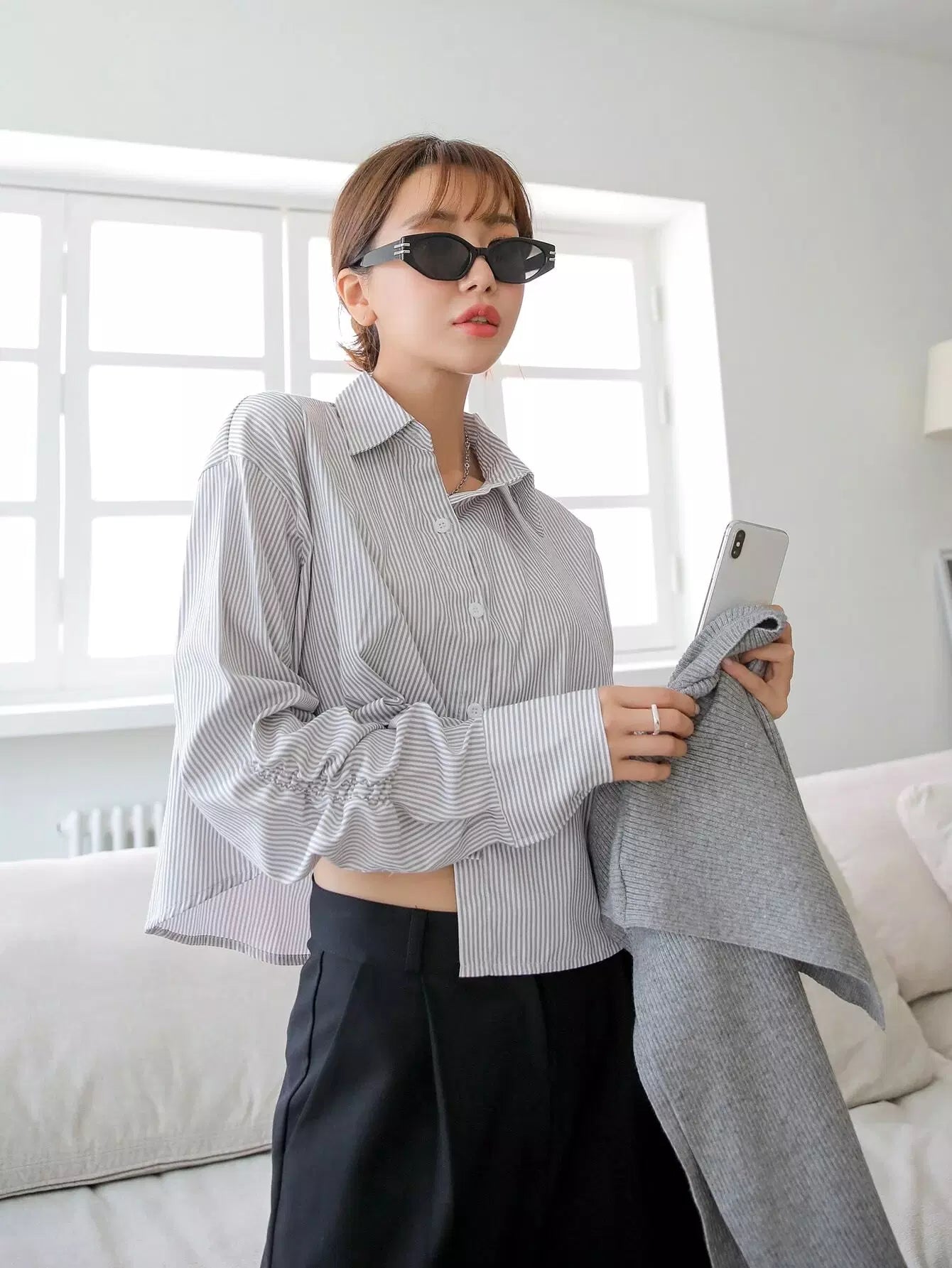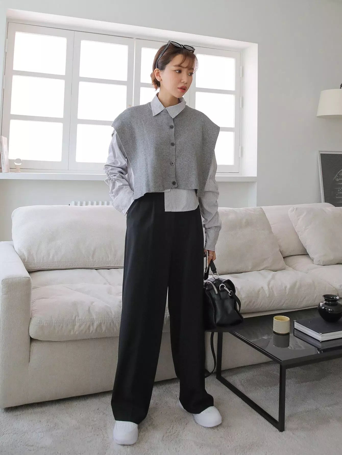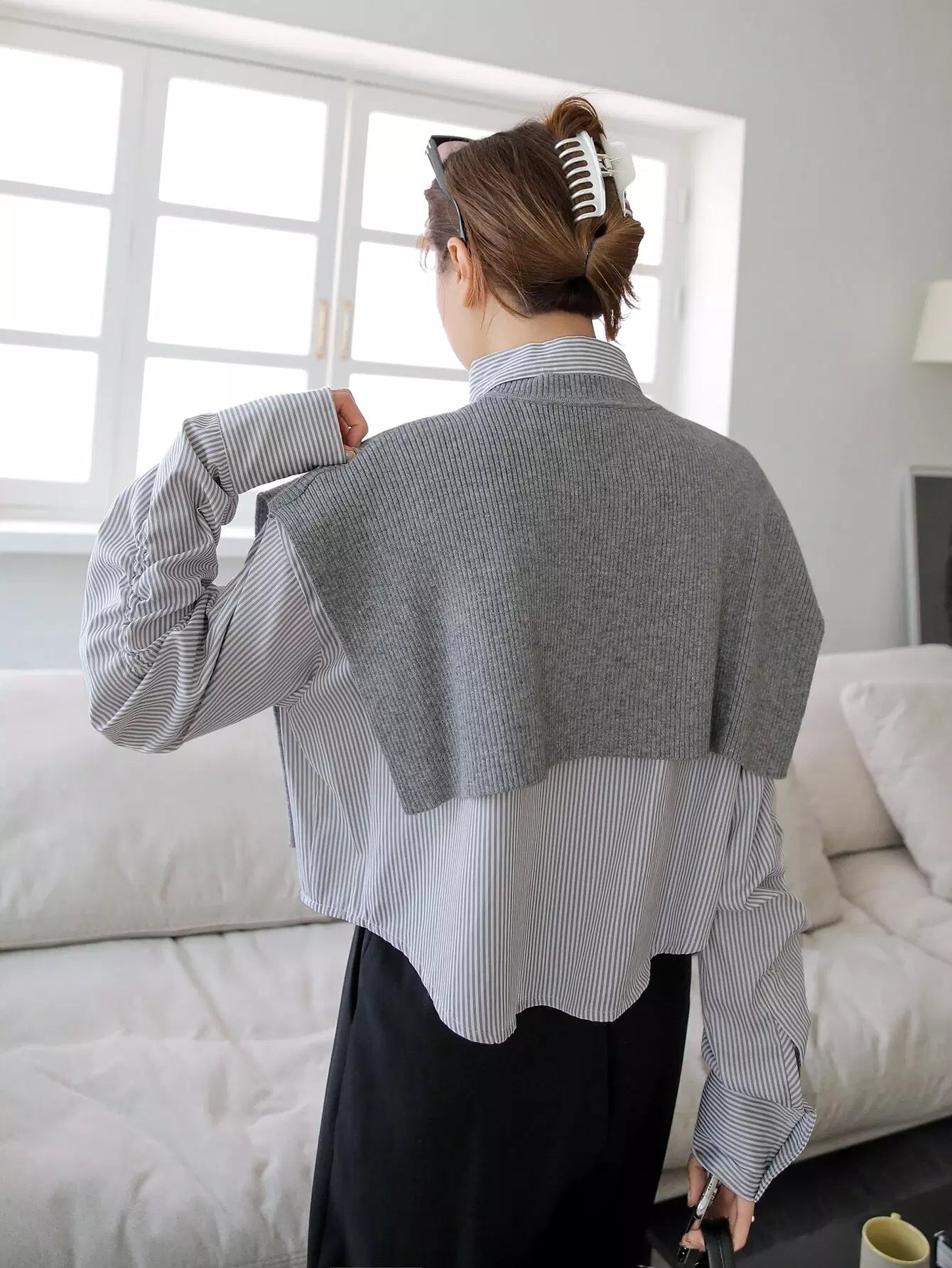 Ribbed Knit Sleeveless Crop Cardigan & Vertical Stripe Asymmetrical Hem Blouse