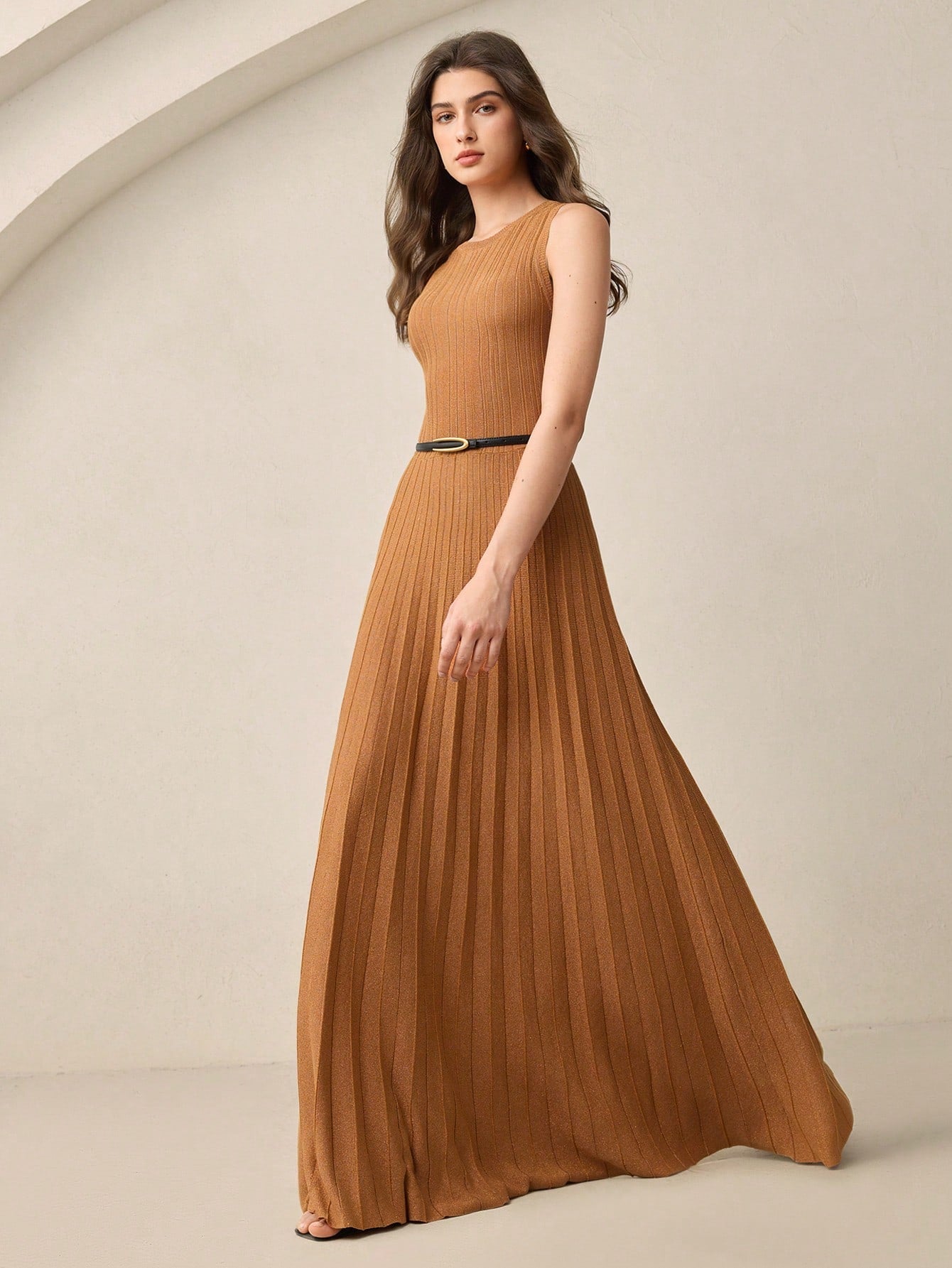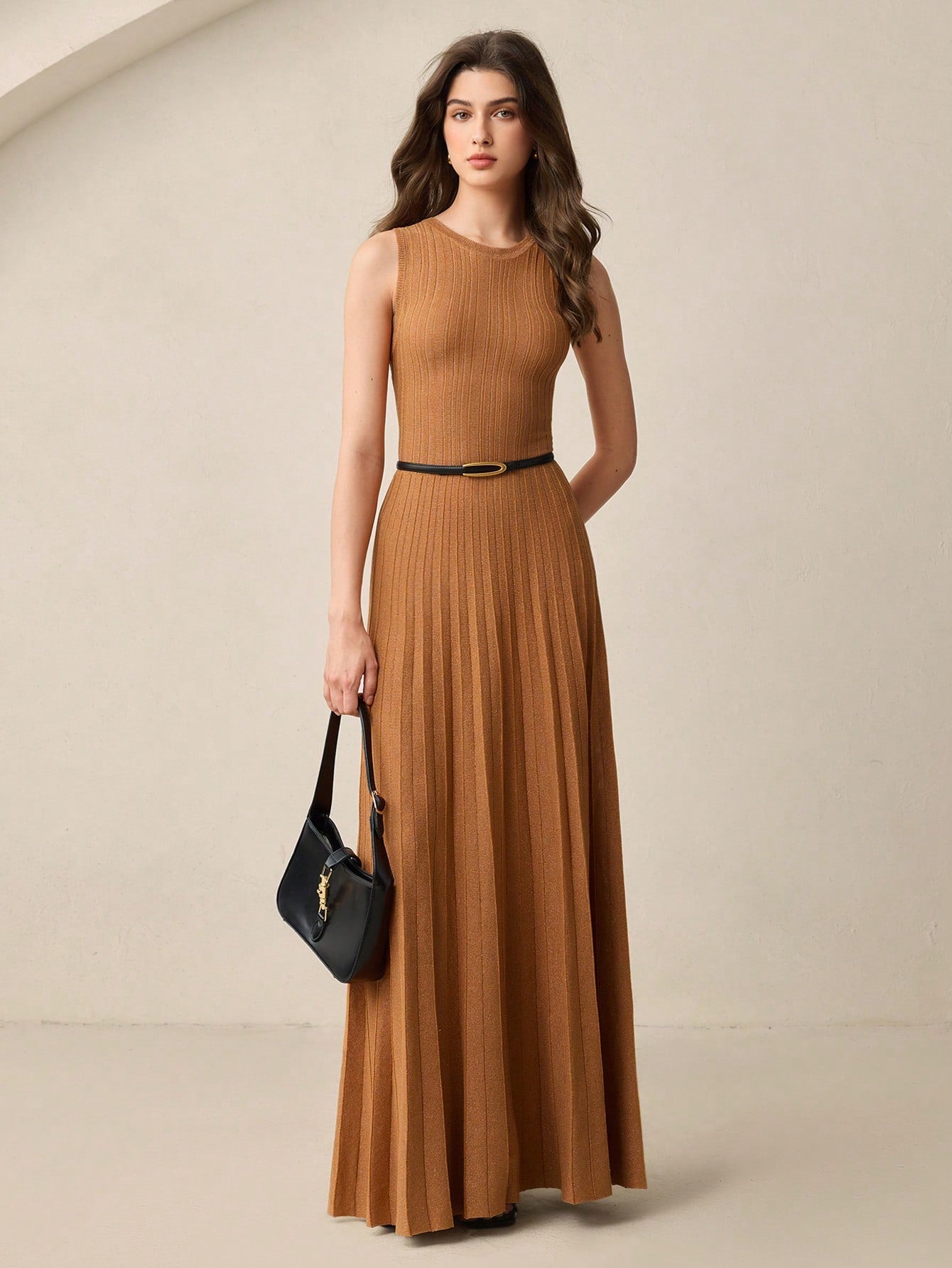 BizChic 2025 Summer New Arrival Sleeveless Pleated Dress With Metal Buckle Belt Decoration, Suitable