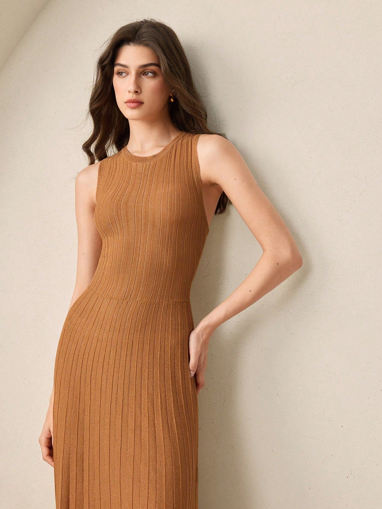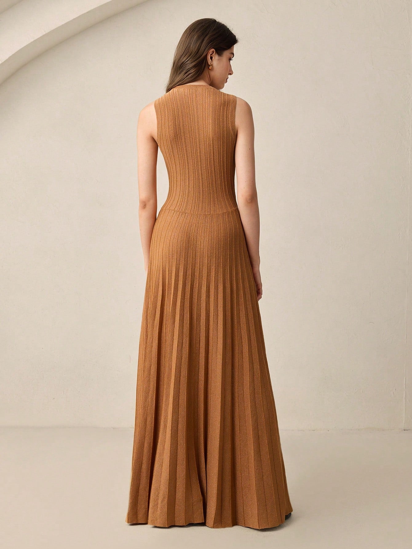 BizChic 2025 Summer New Arrival Sleeveless Pleated Dress With Metal Buckle Decoration, Suitable Without Belt