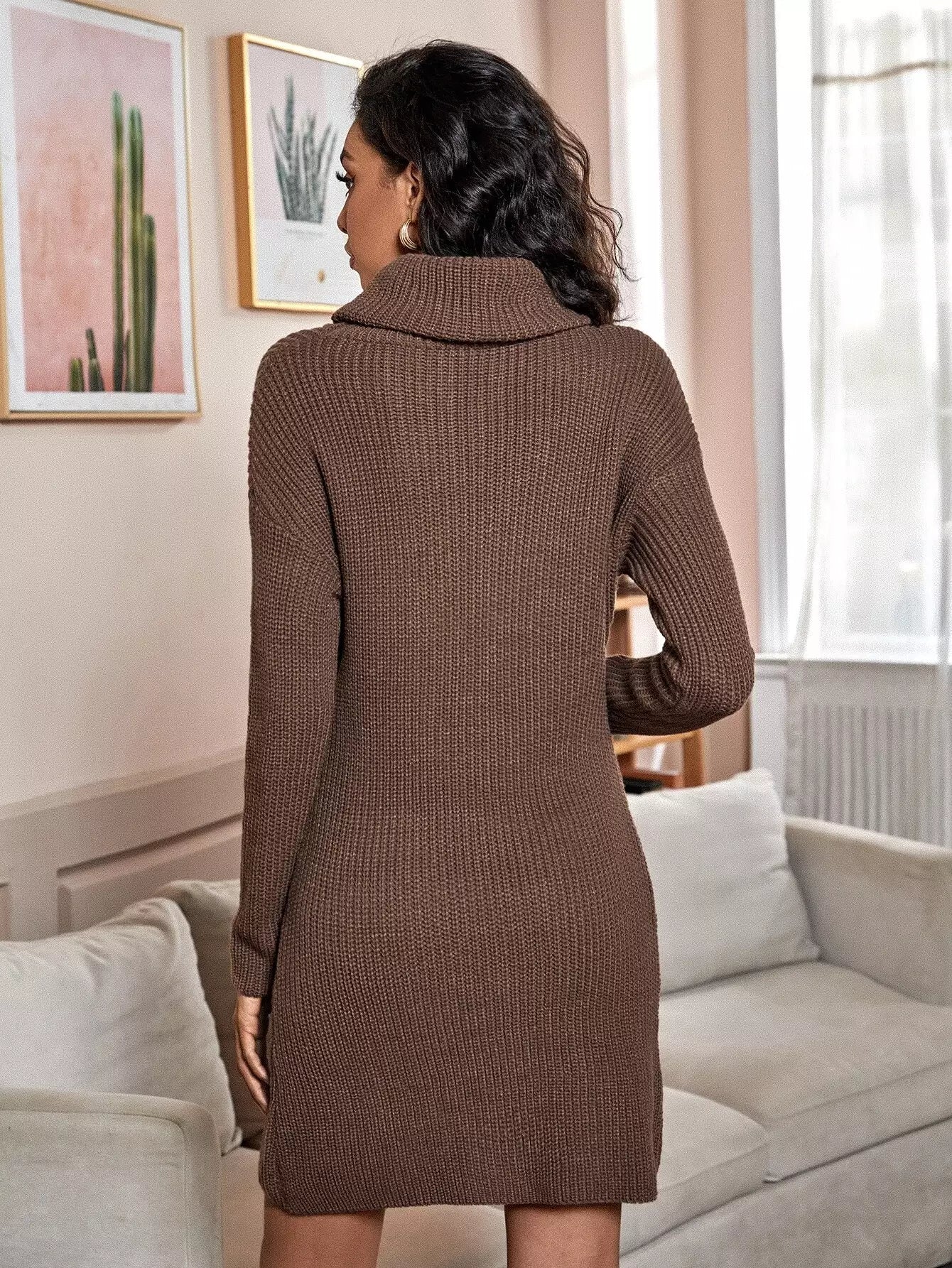 Draped Front Drop Shoulder Sweater Dress Without Belt