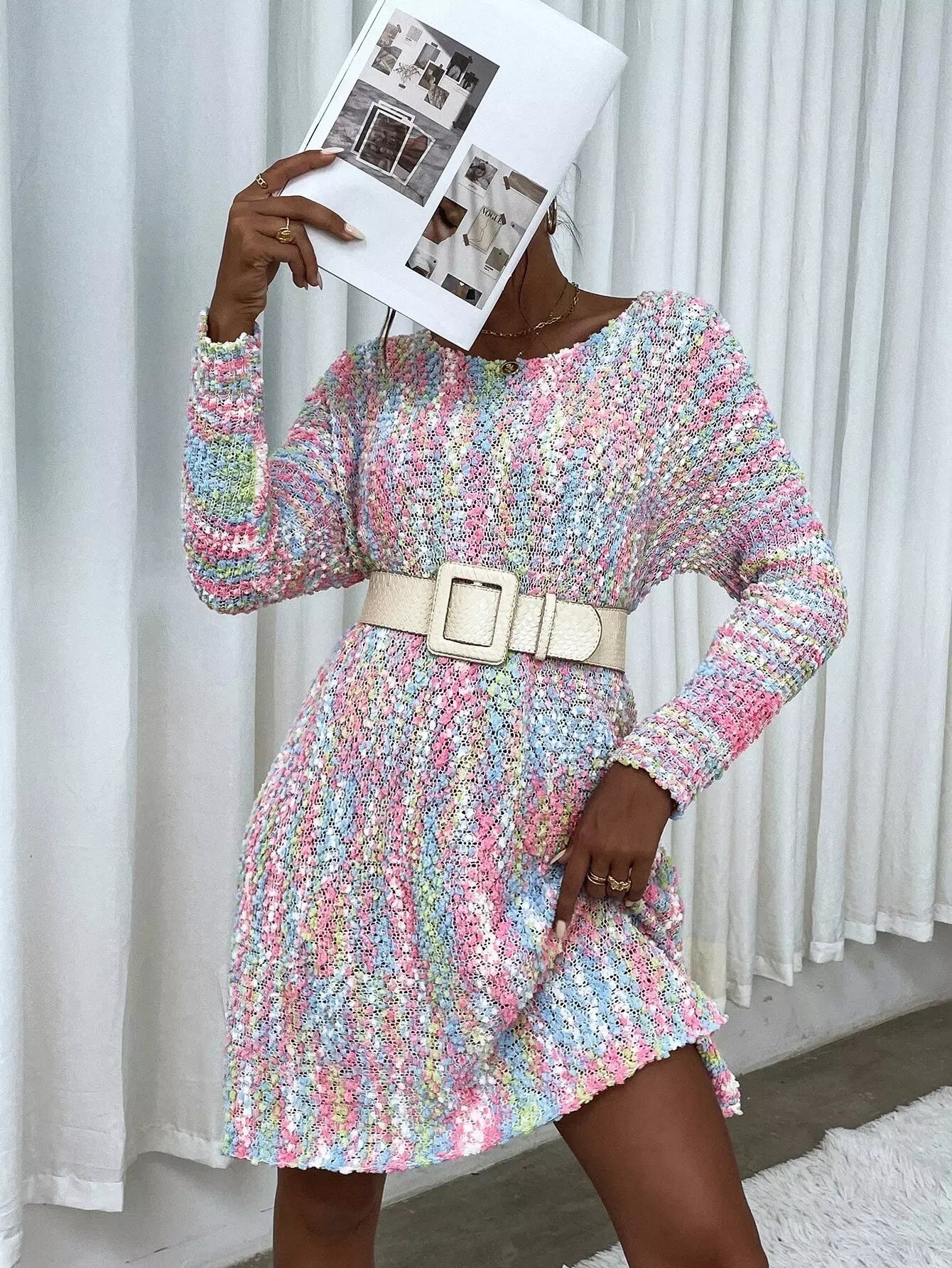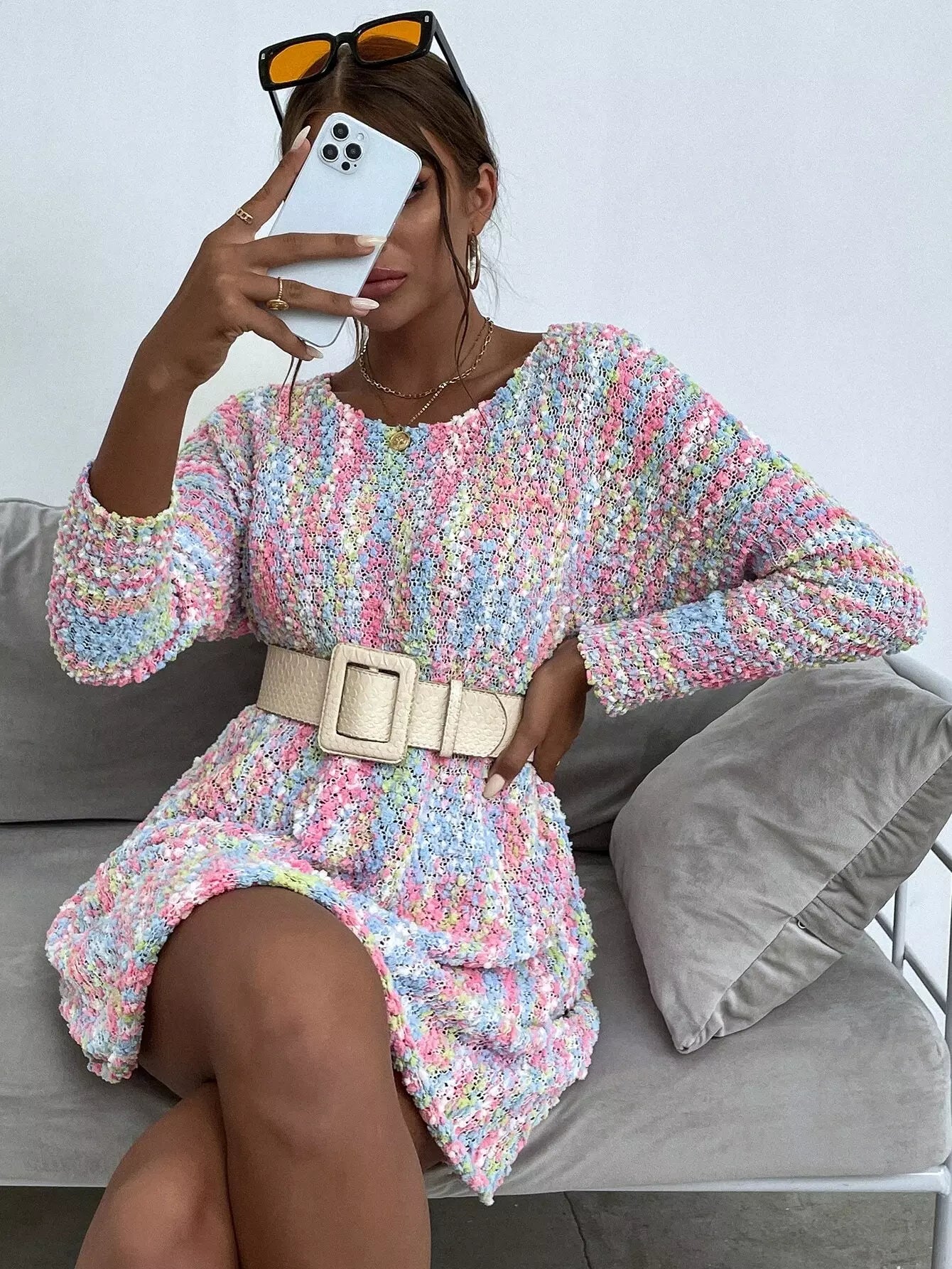 Women - Drop Shoulder Popcorn Knit Sweater Dress Without Belt