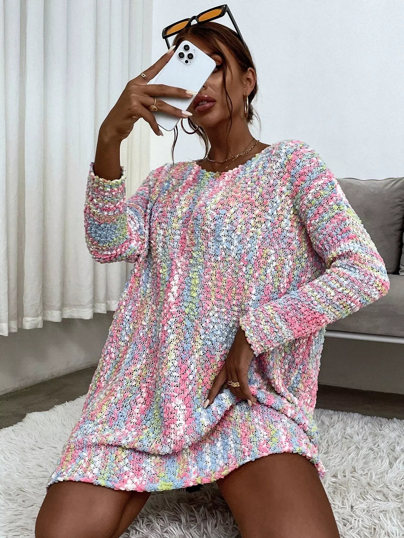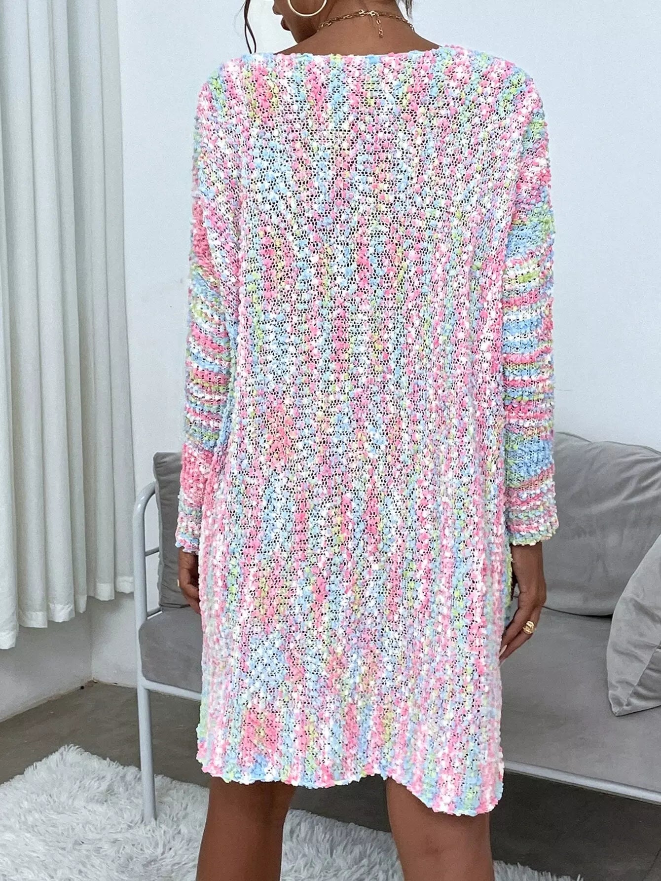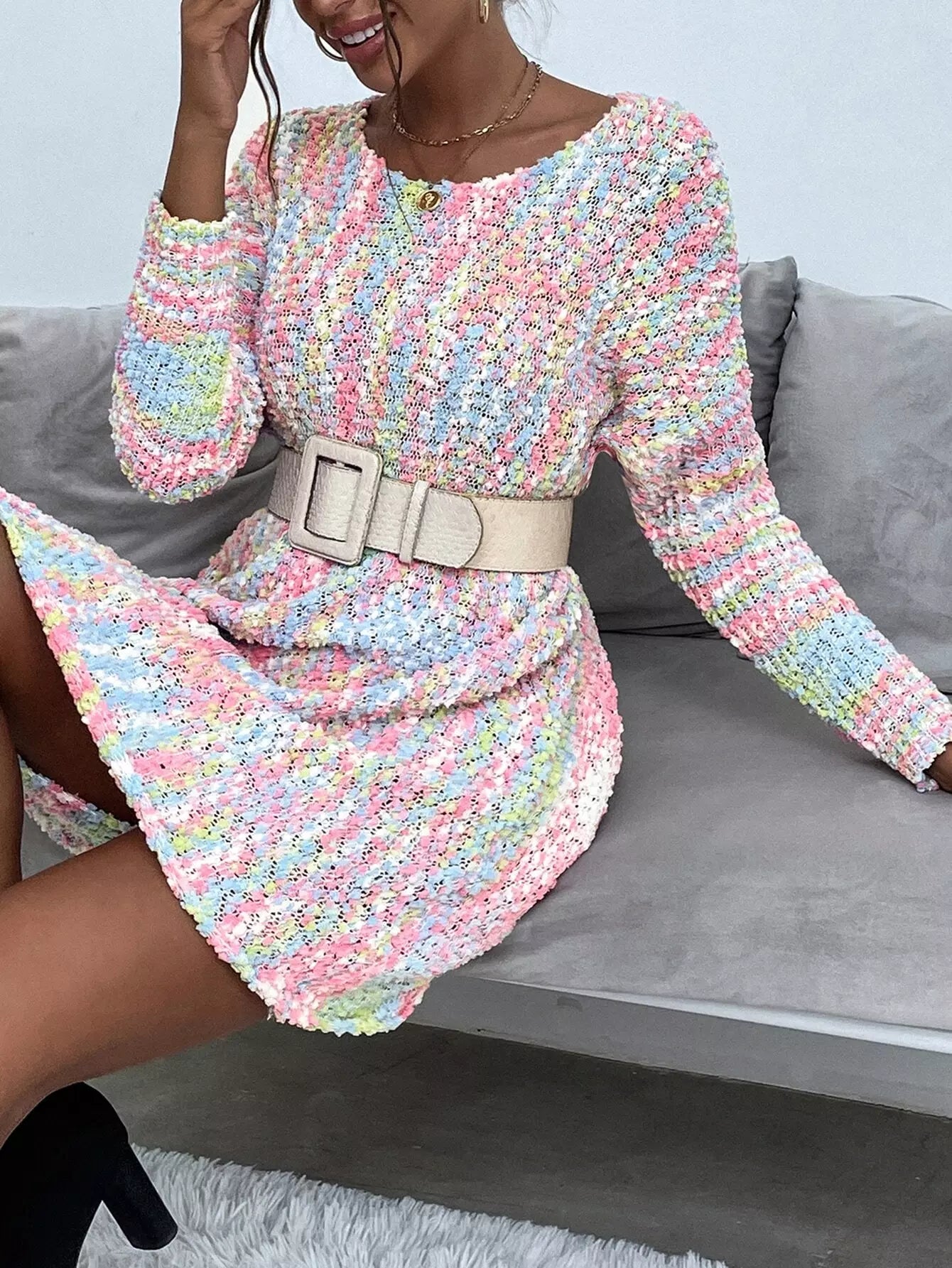 Drop Shoulder Popcorn Knit Sweater Dress Without Belt