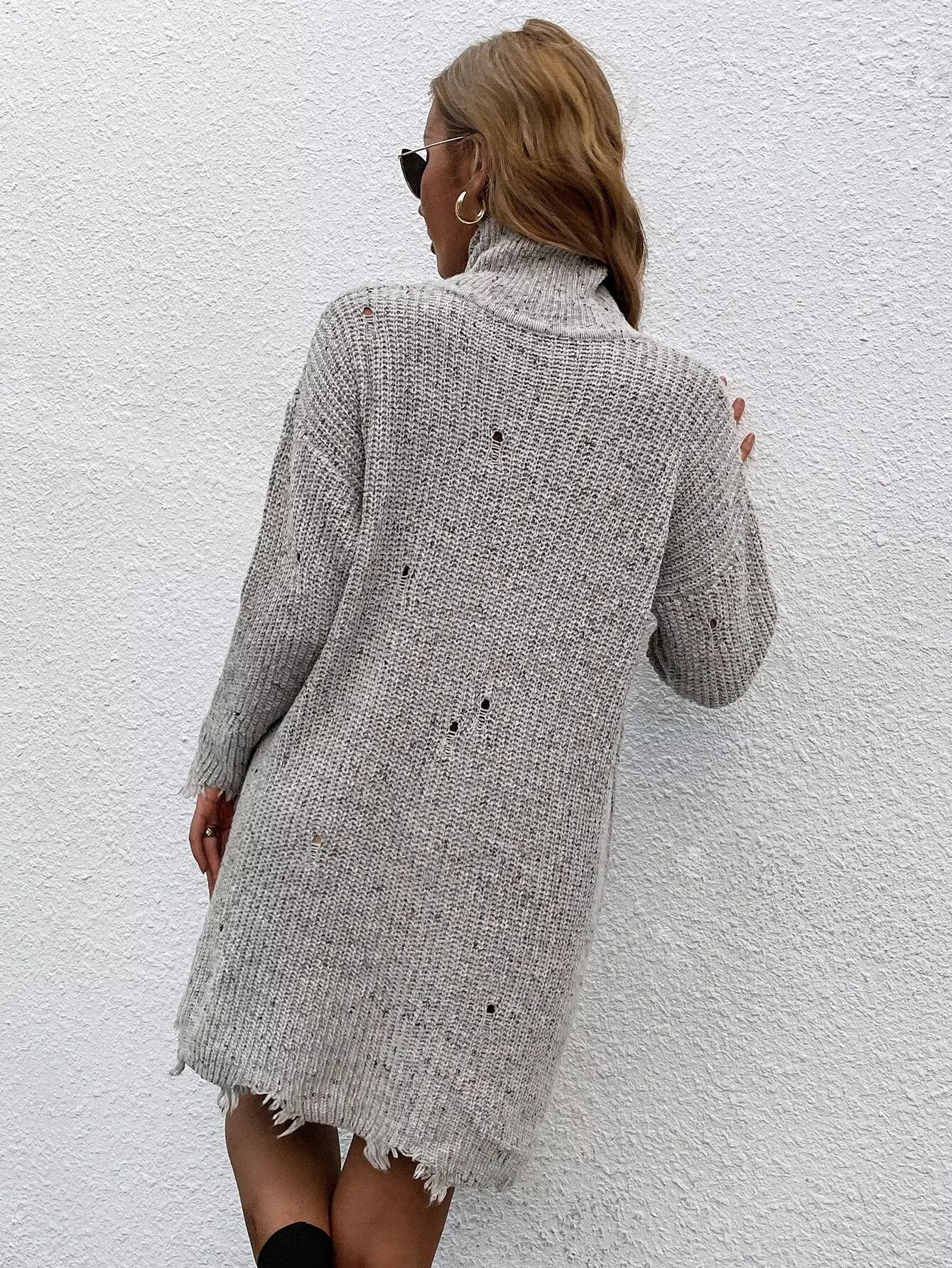 Marled Raw Hem Sweater Dress Without Belt