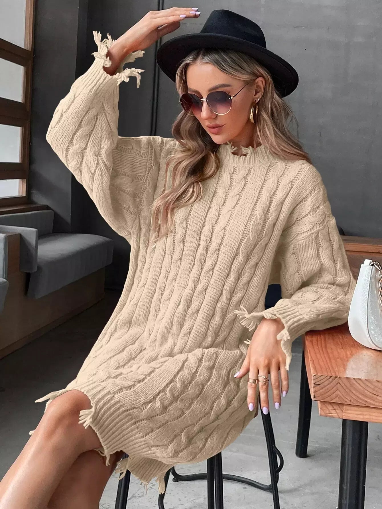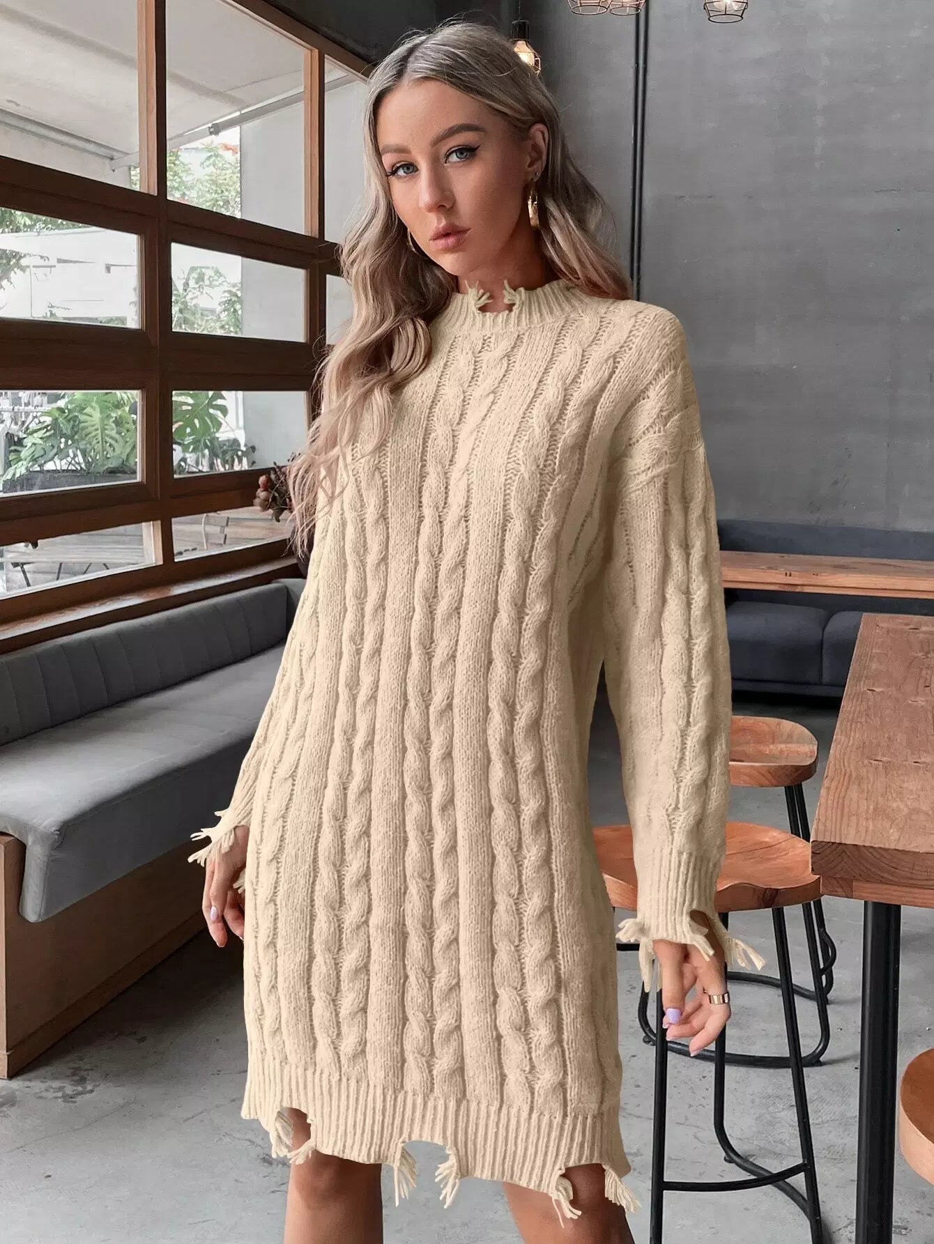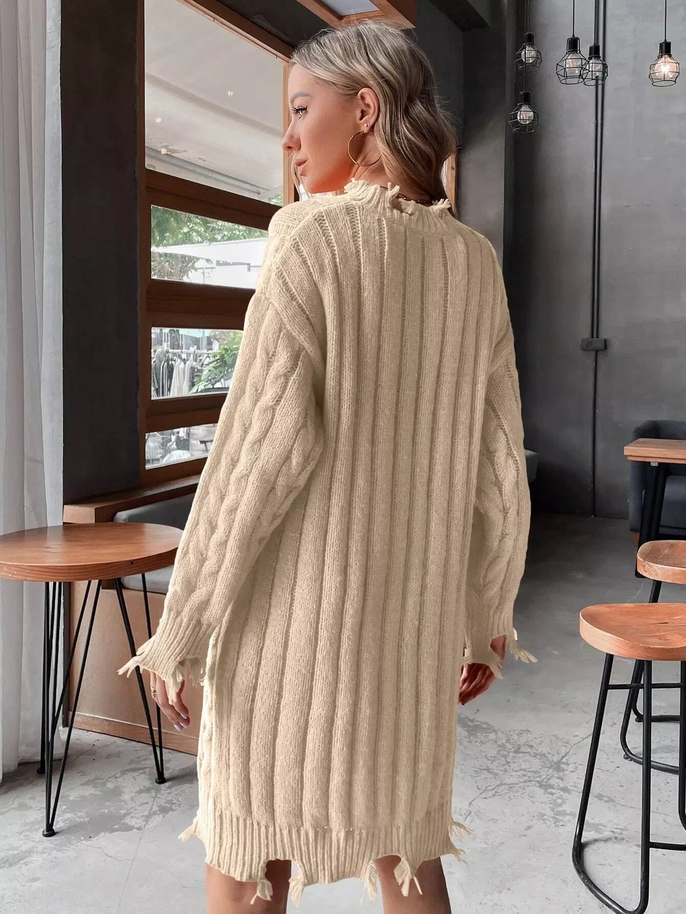 Raw Hem Cable Knit Sweater Dress Without Belt