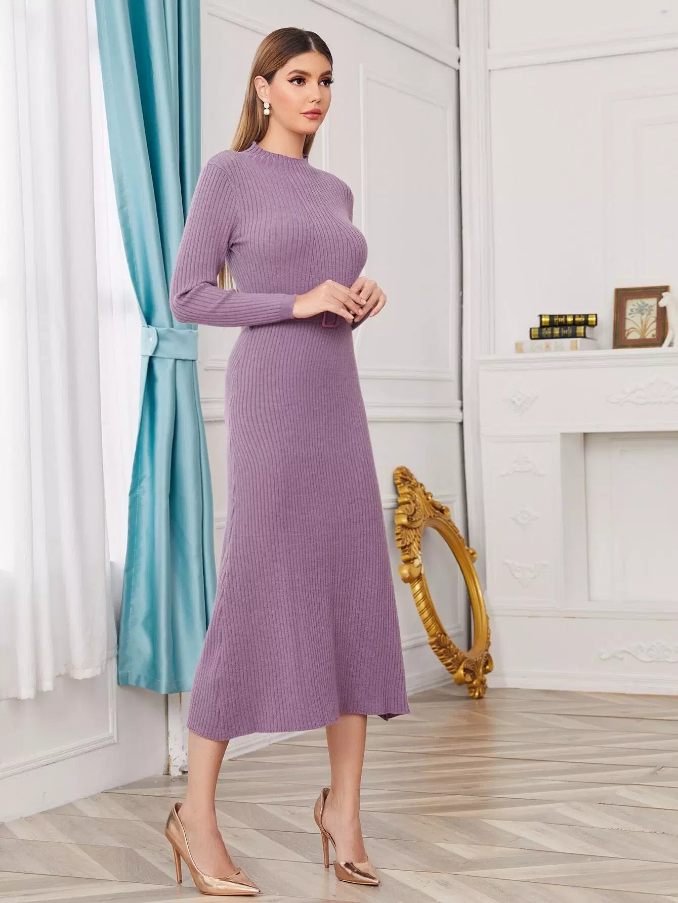 Ribbed Knit Buckle Sweater Dress Without Belt