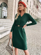 Ribbed Knit Half Button Sweater Dress Without Belt