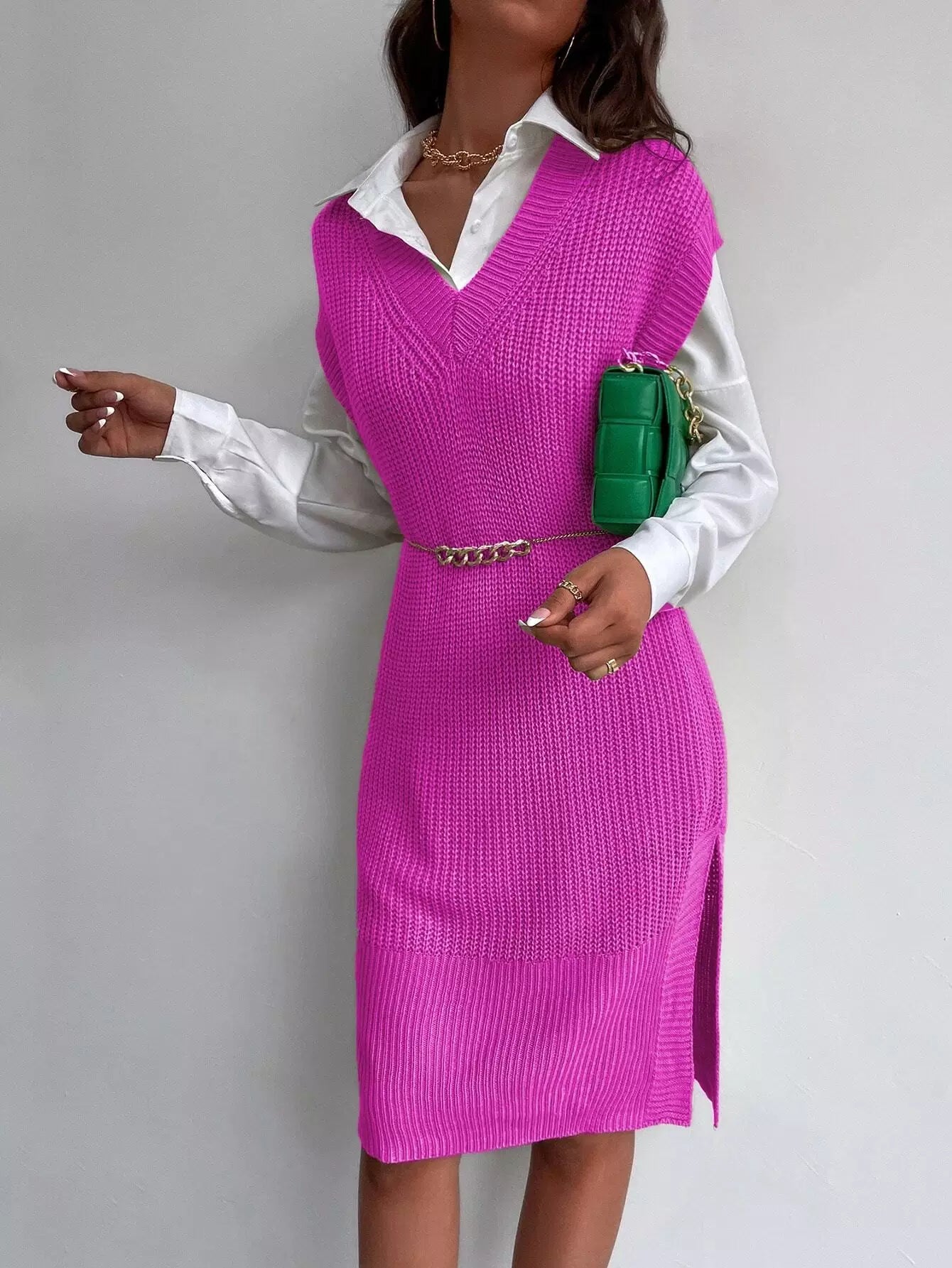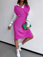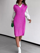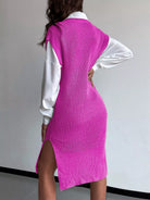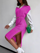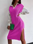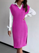 Solid Split Thigh Sleeveless Sweater Dress Without Belt