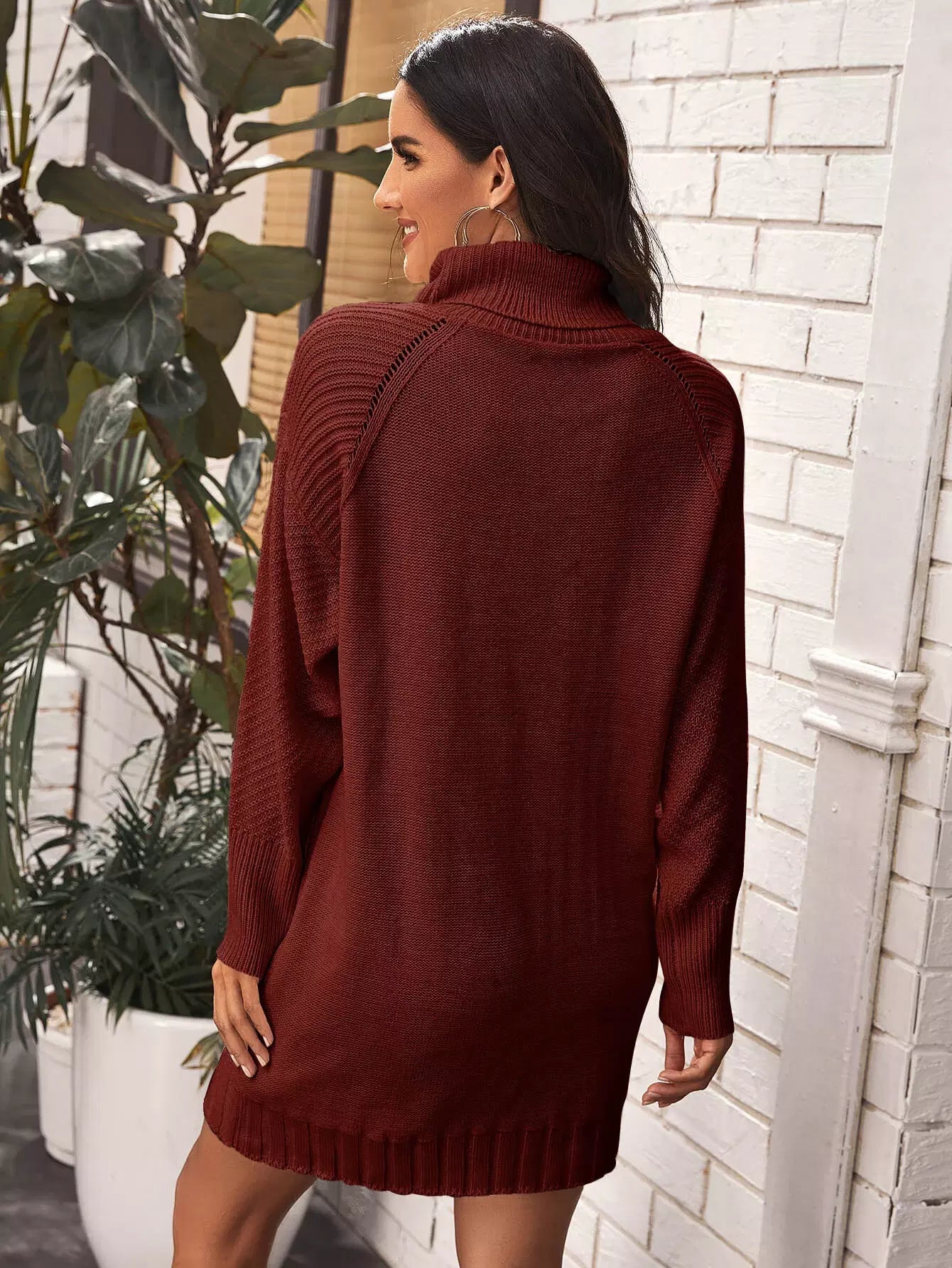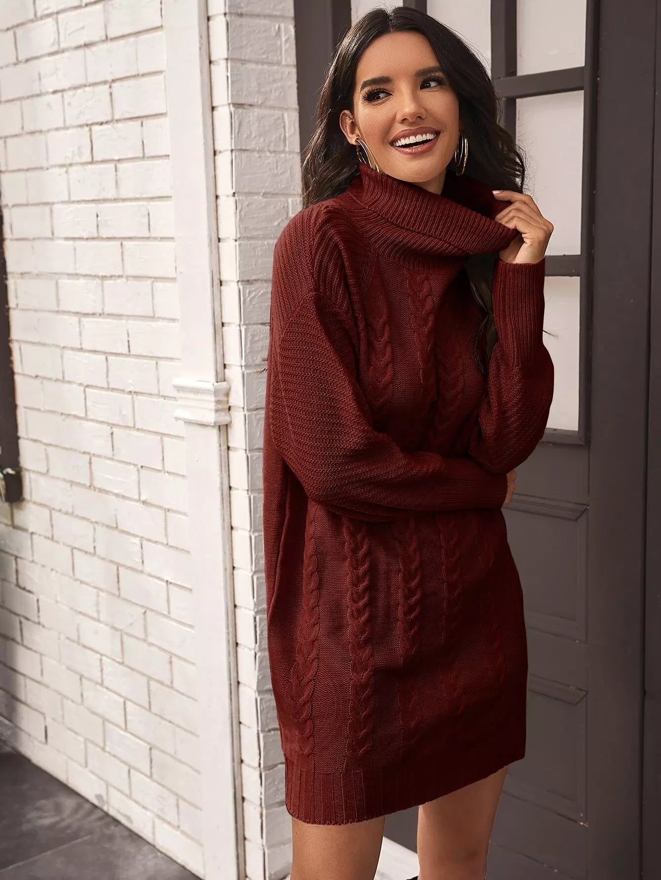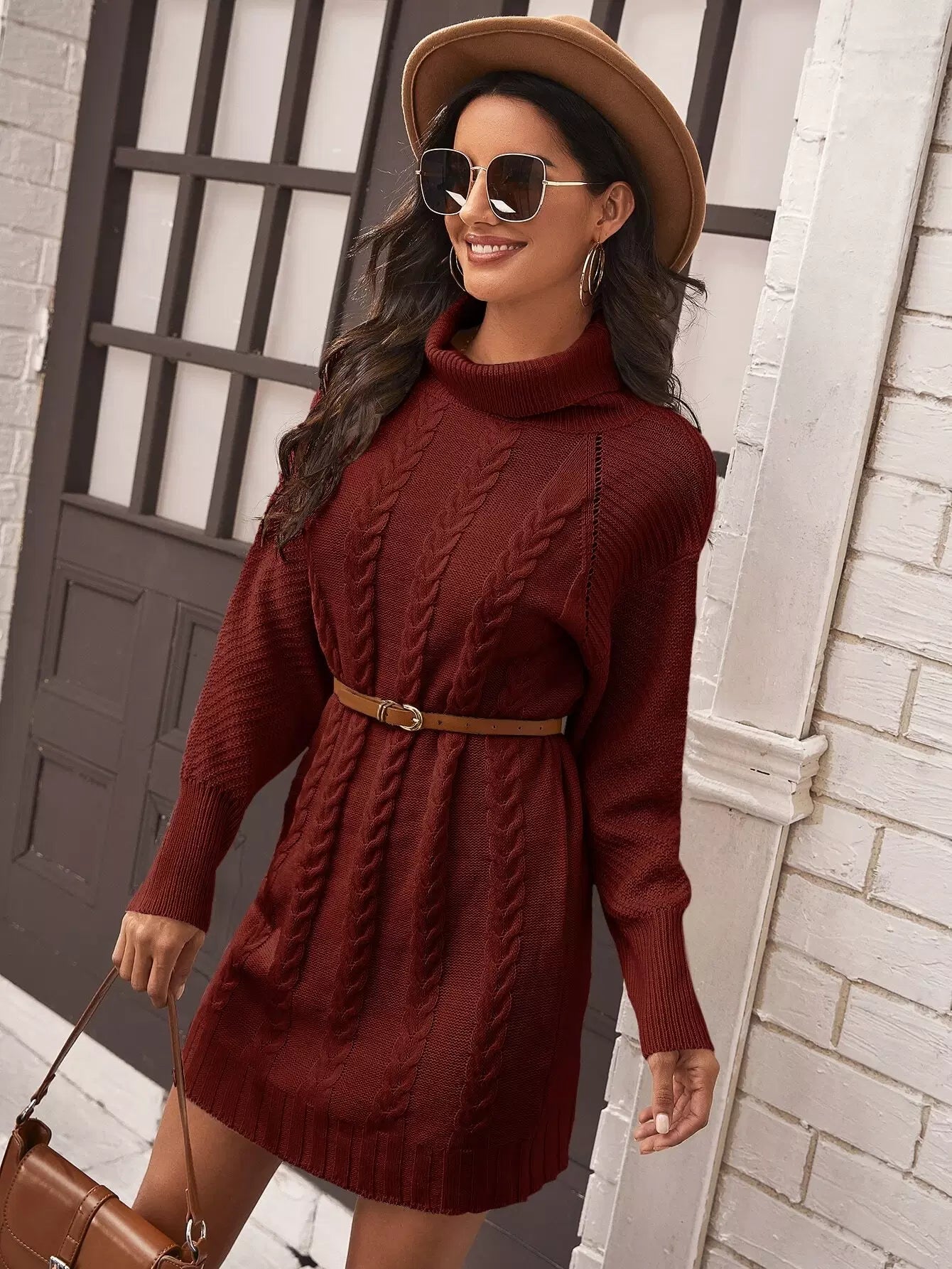 Turtle Neck Cable Knit Sweater Dress Without Belt