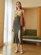 Two Tone Split Thigh Sweater Dress