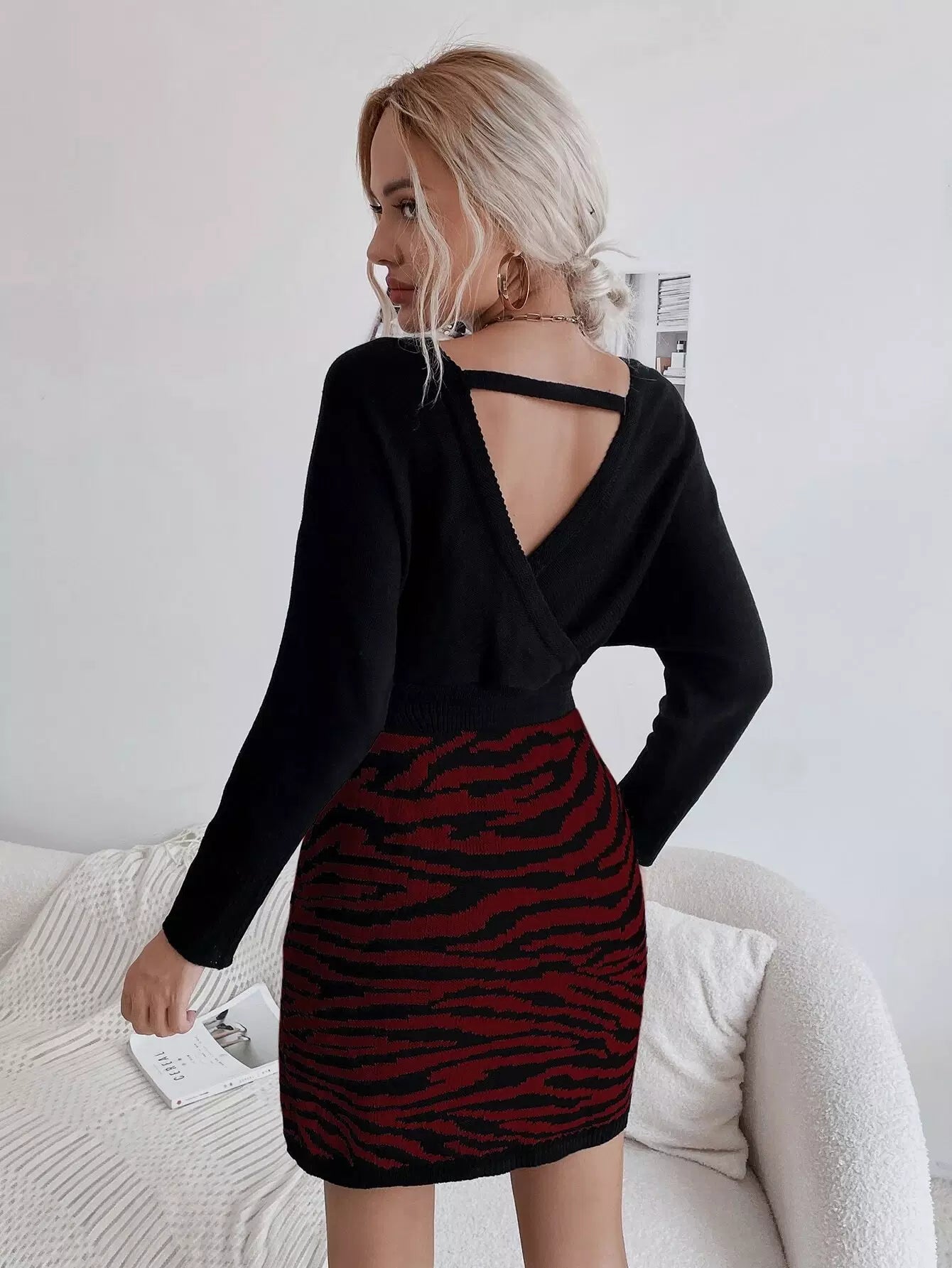 Women - Zebra Striped Batwing Sleeve High Waist Sweater Dress