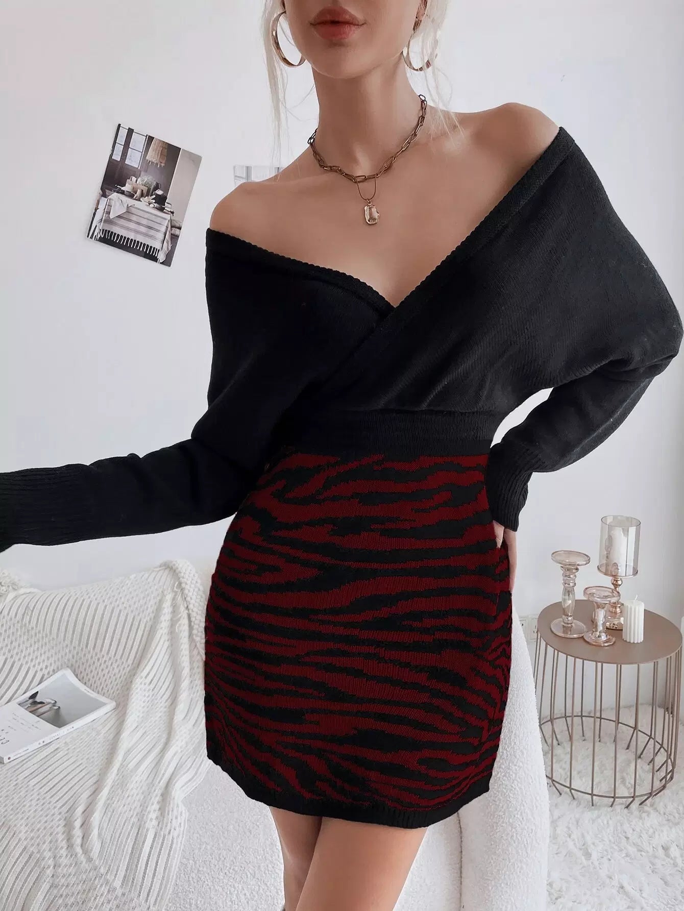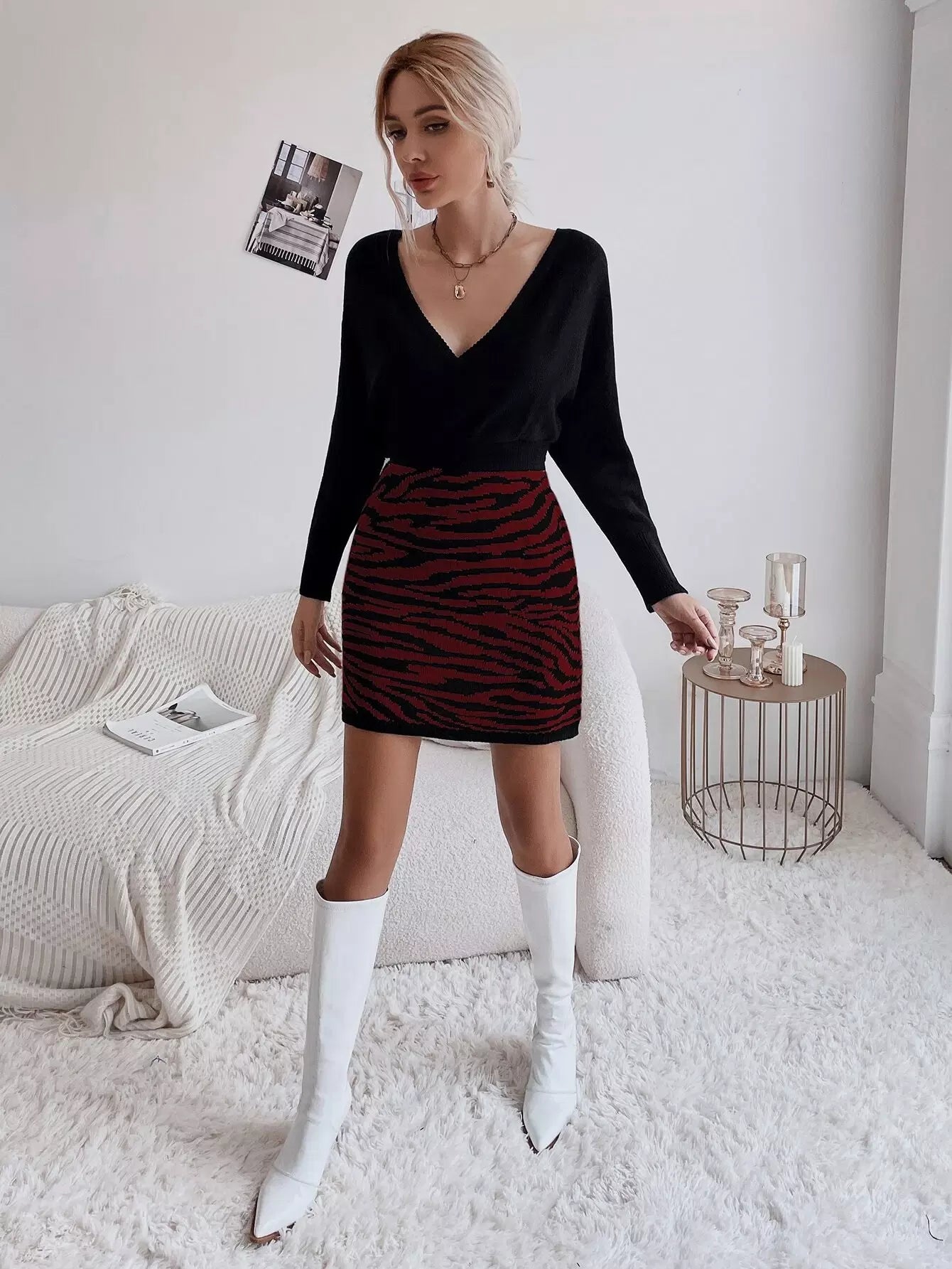 Zebra Striped Batwing Sleeve High Waist Sweater Dress