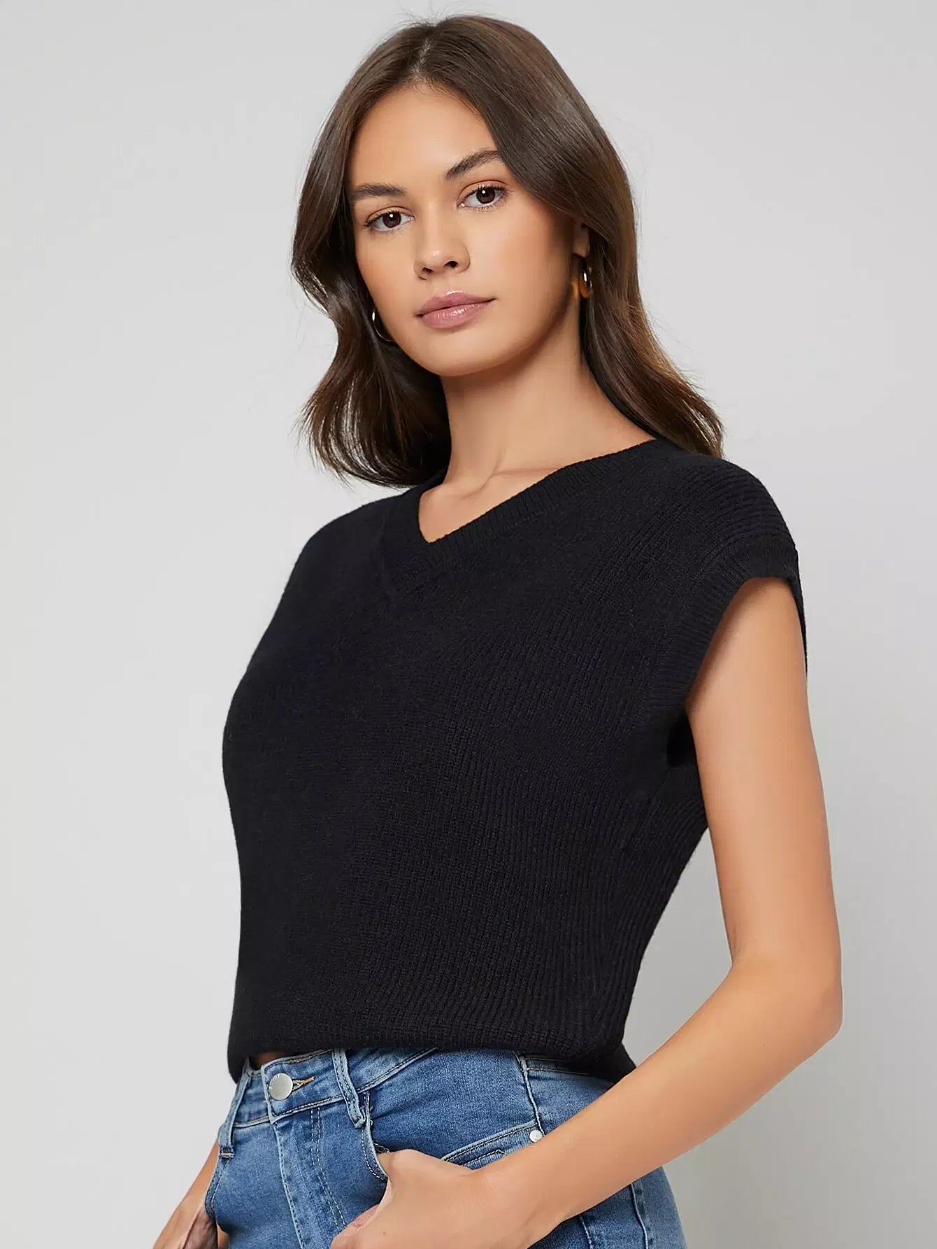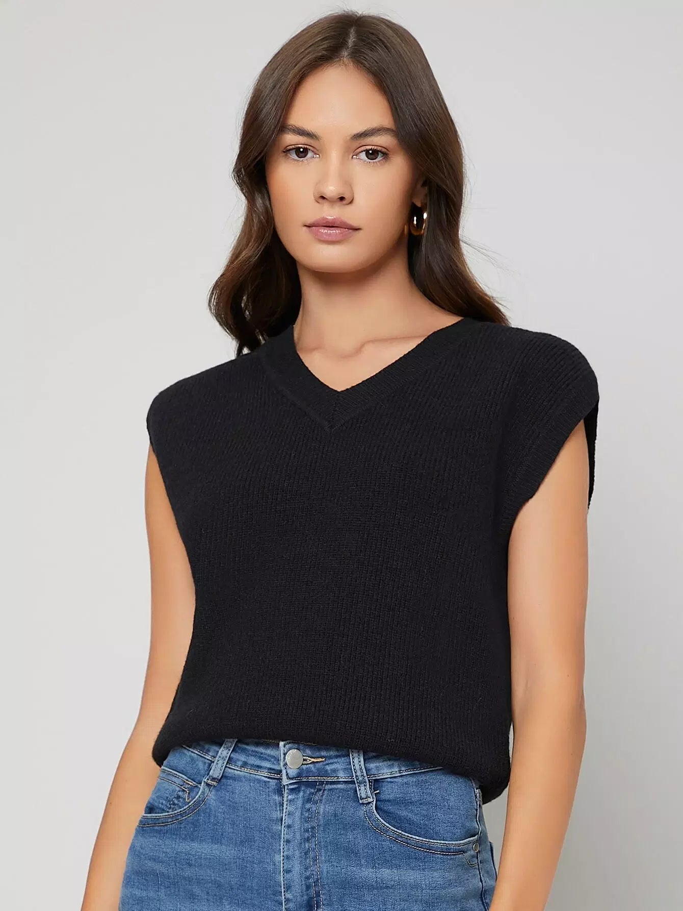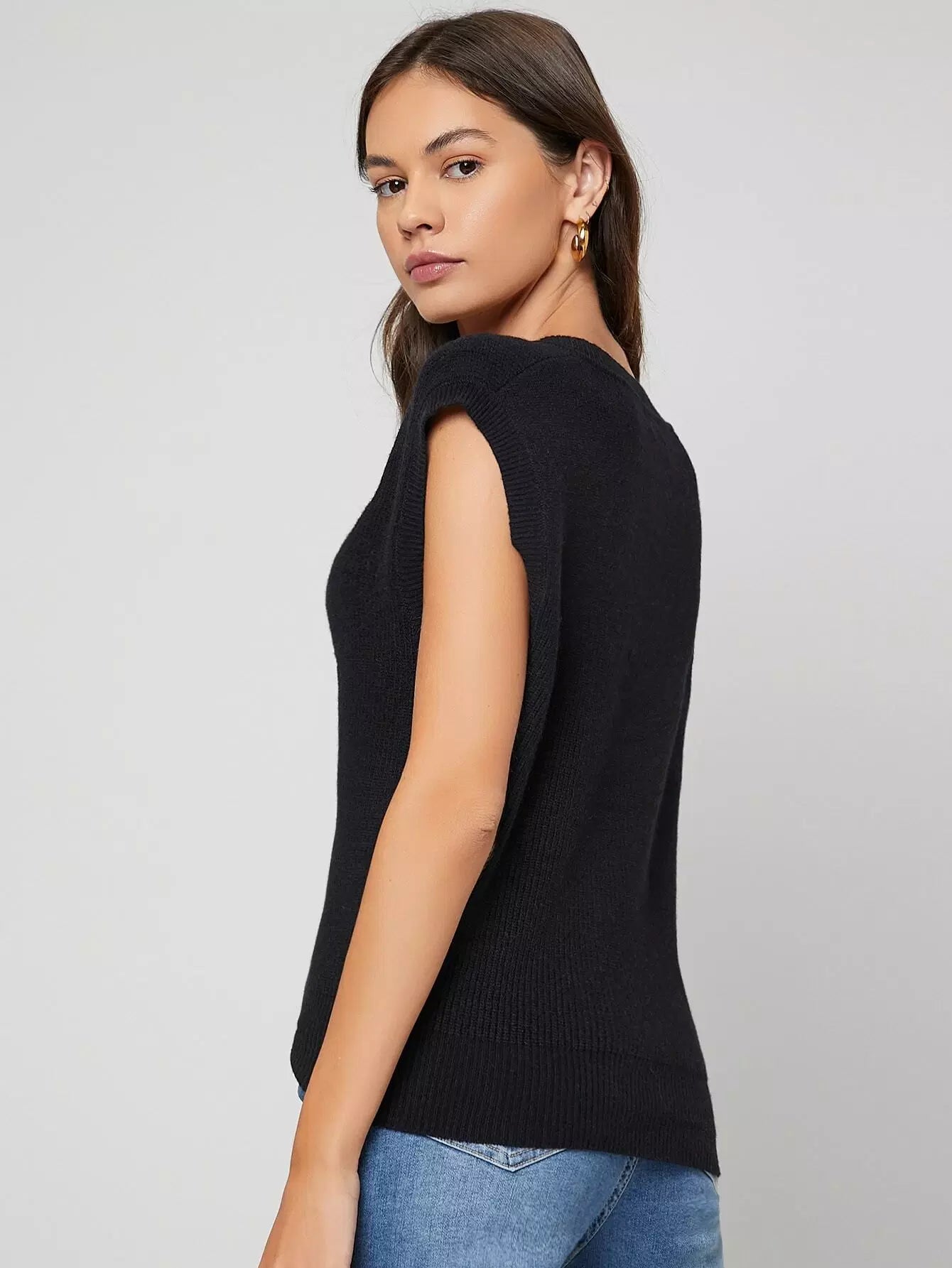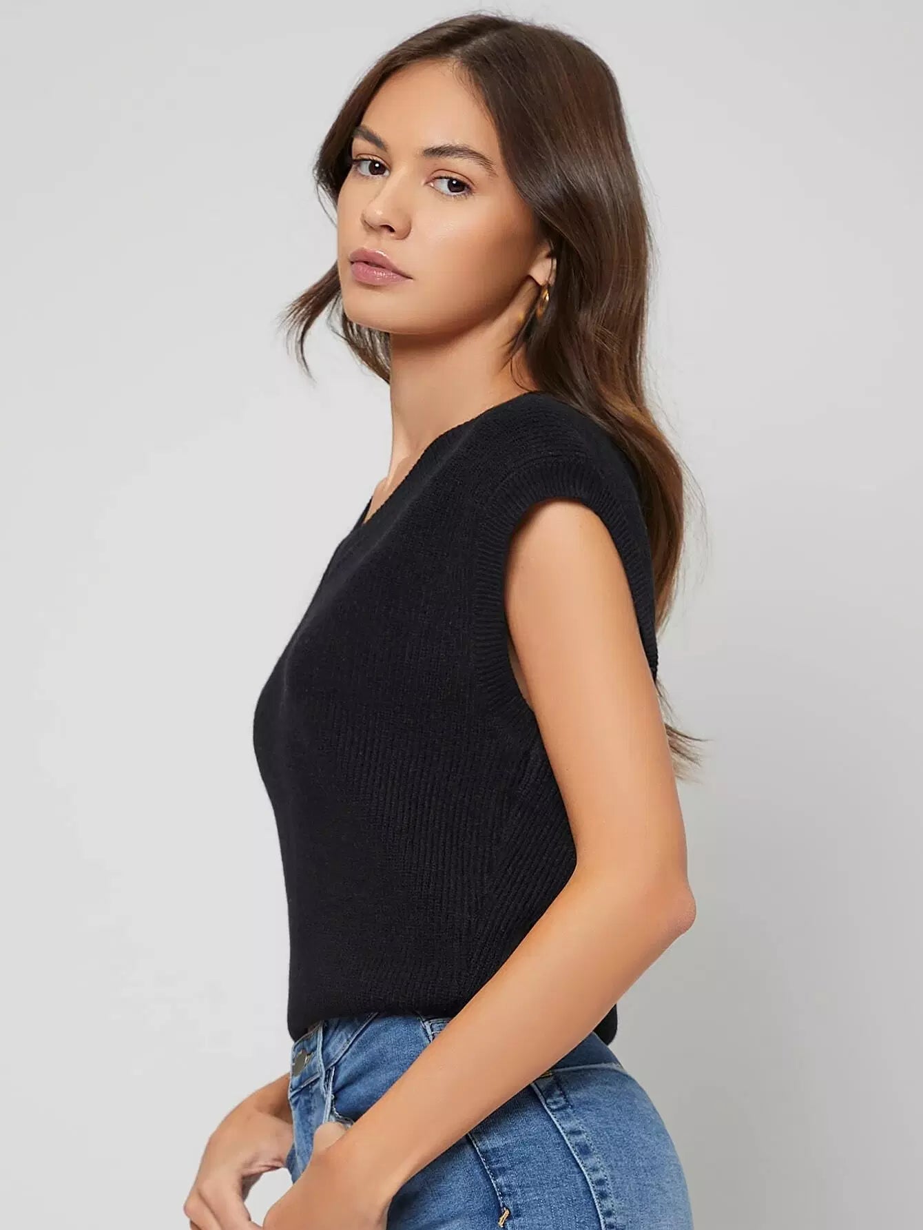 Big Armhole Rib Knit Sweater Vest