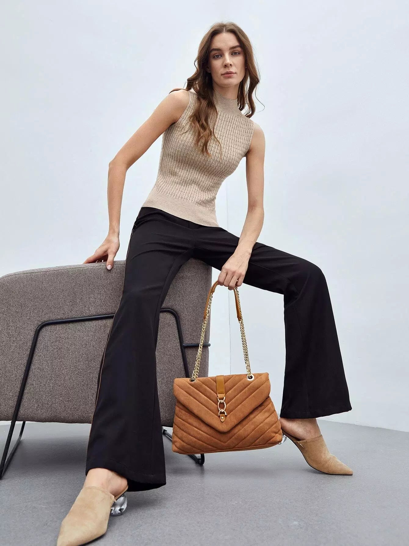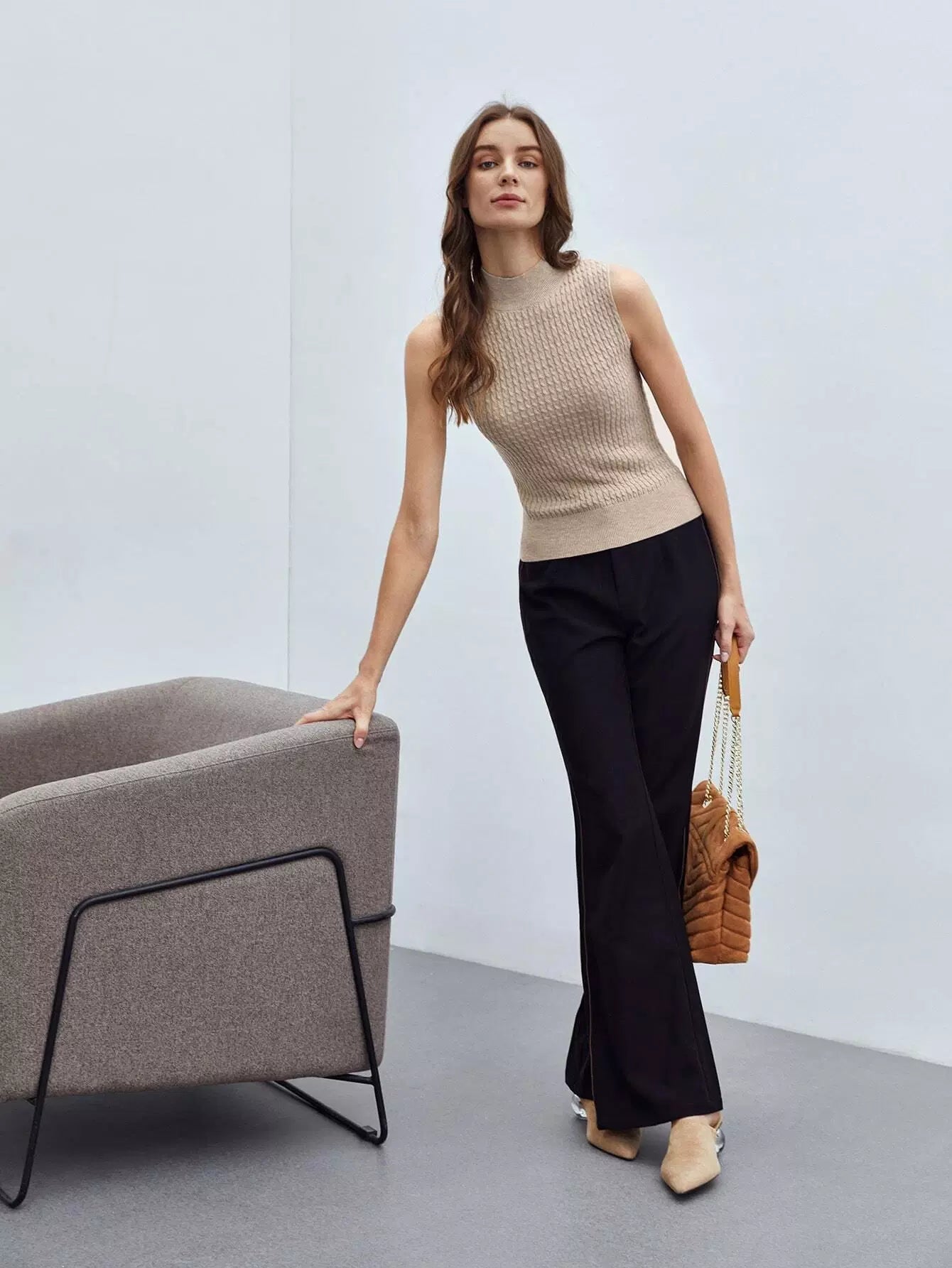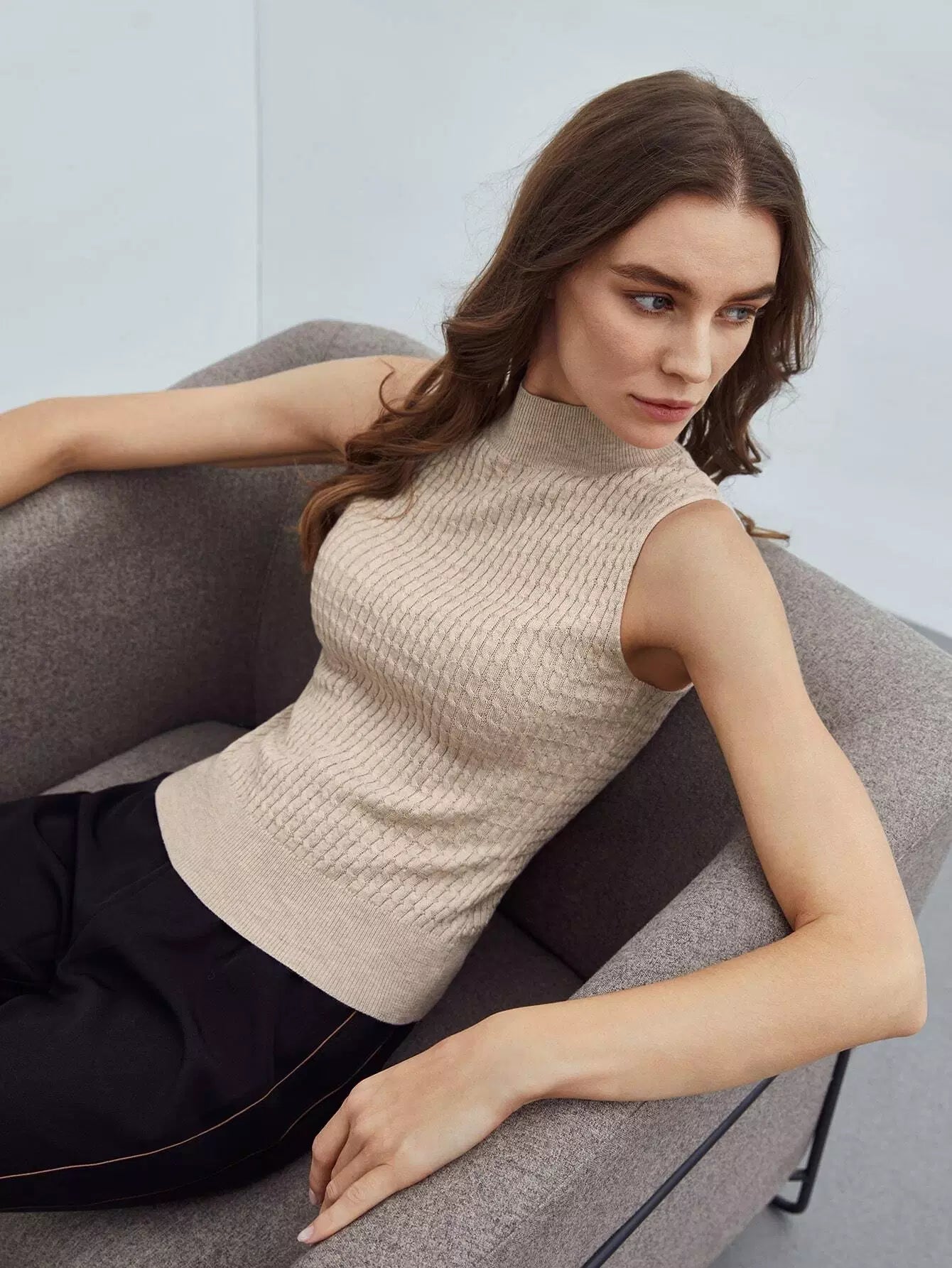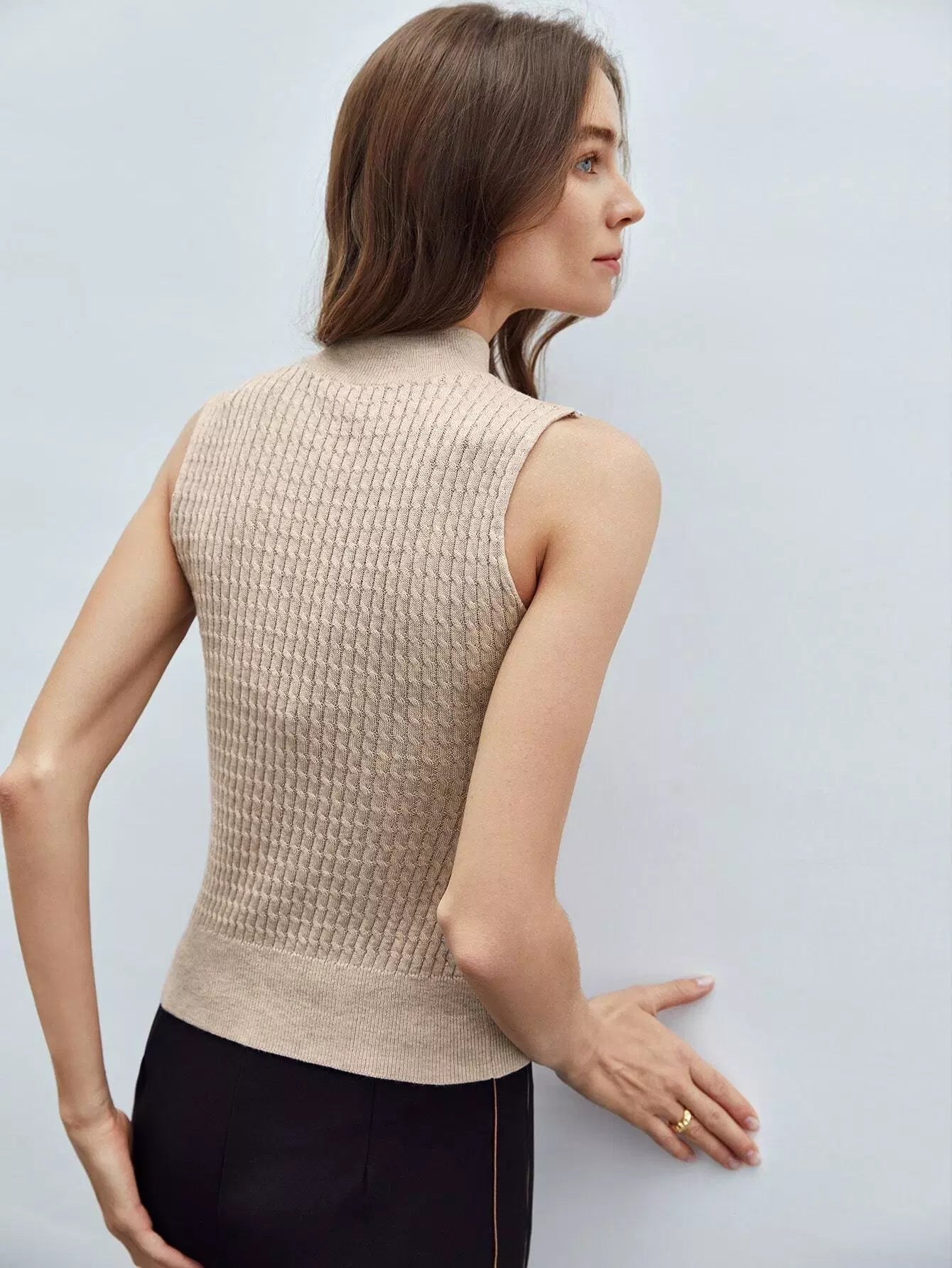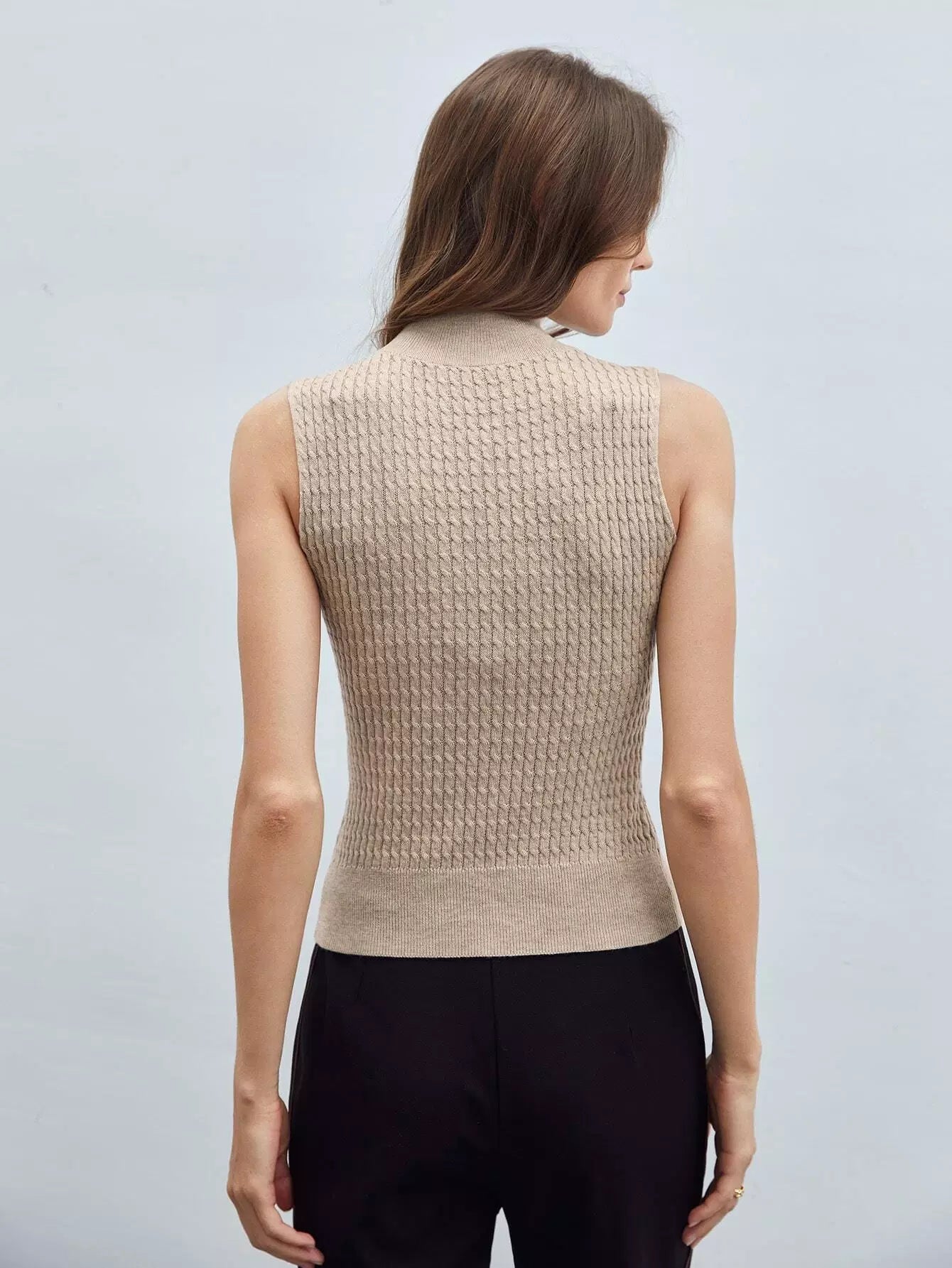 RECYCLED POLYESTER CASHMERE CABLE KNIT TOP
