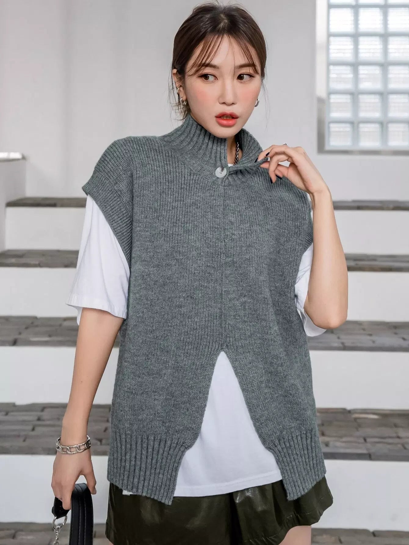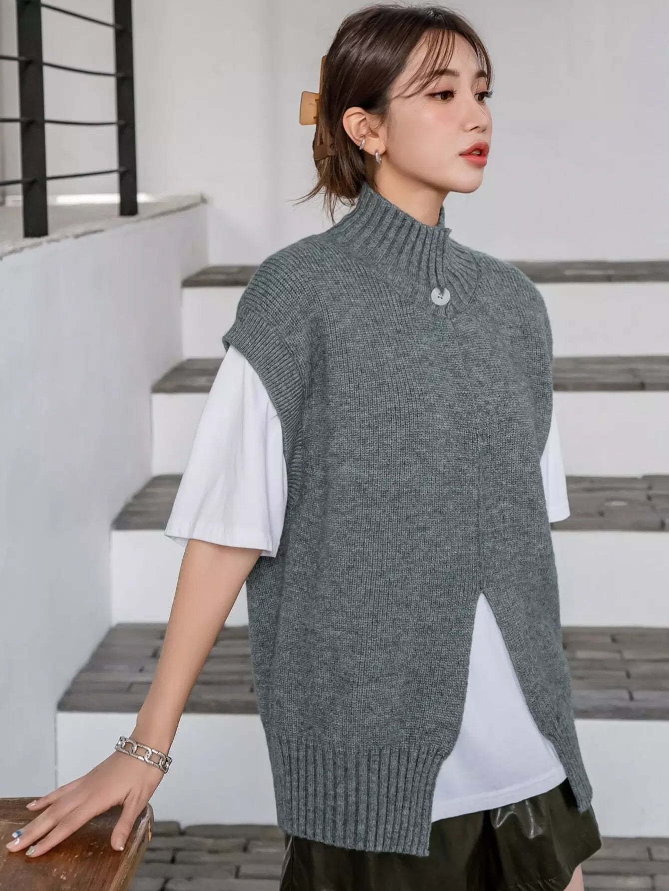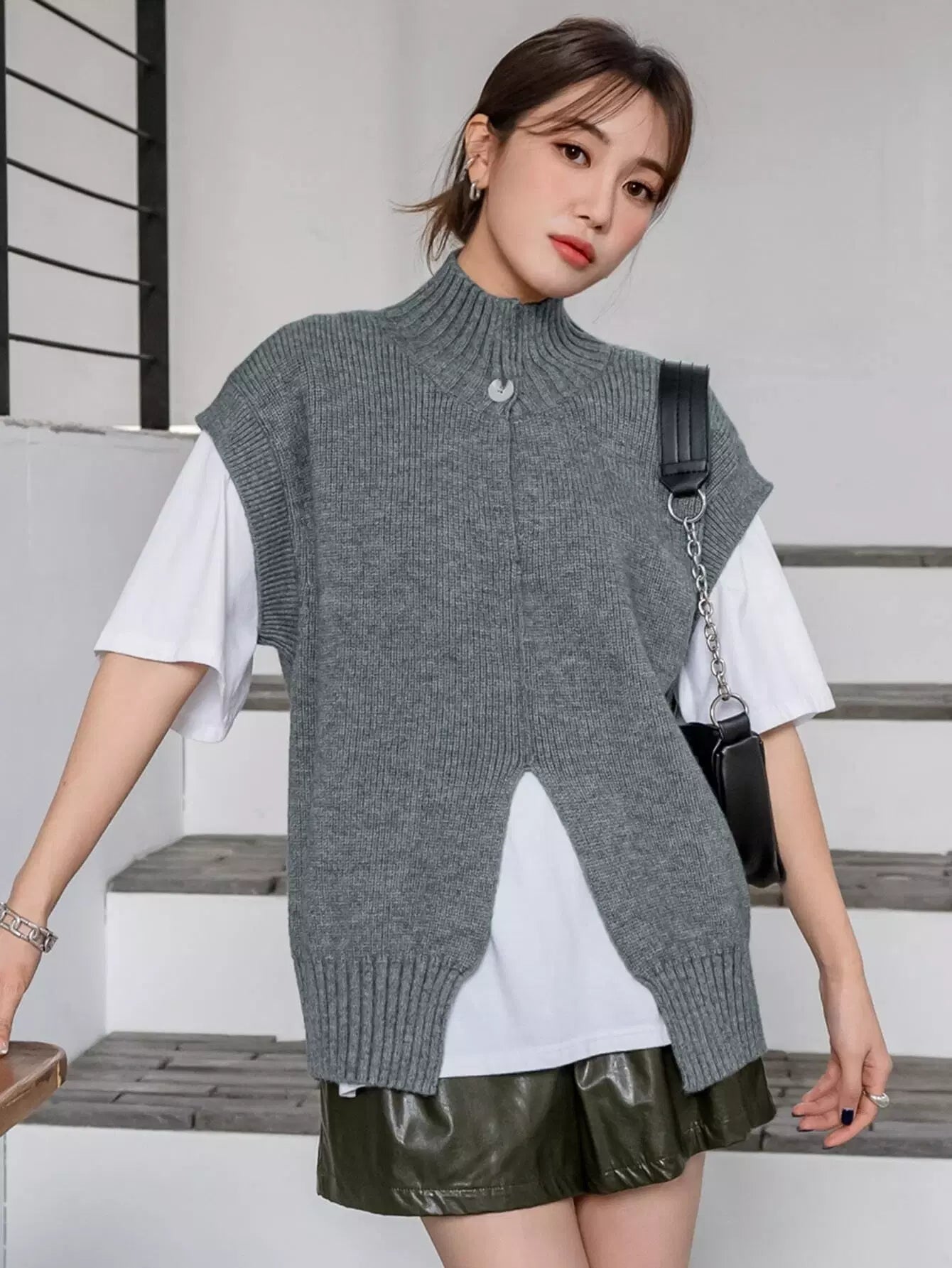 Split Hem Sweater Vest Without Tee