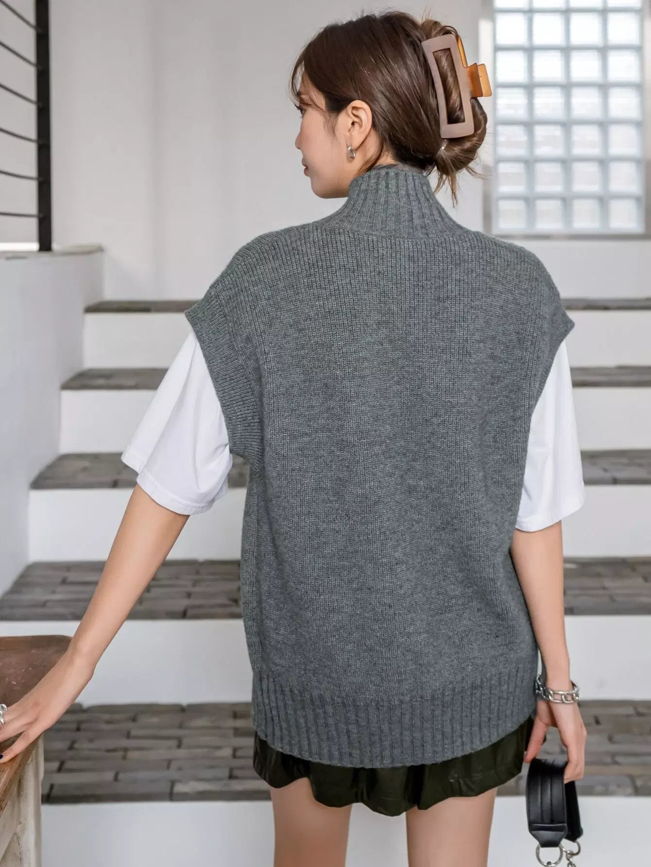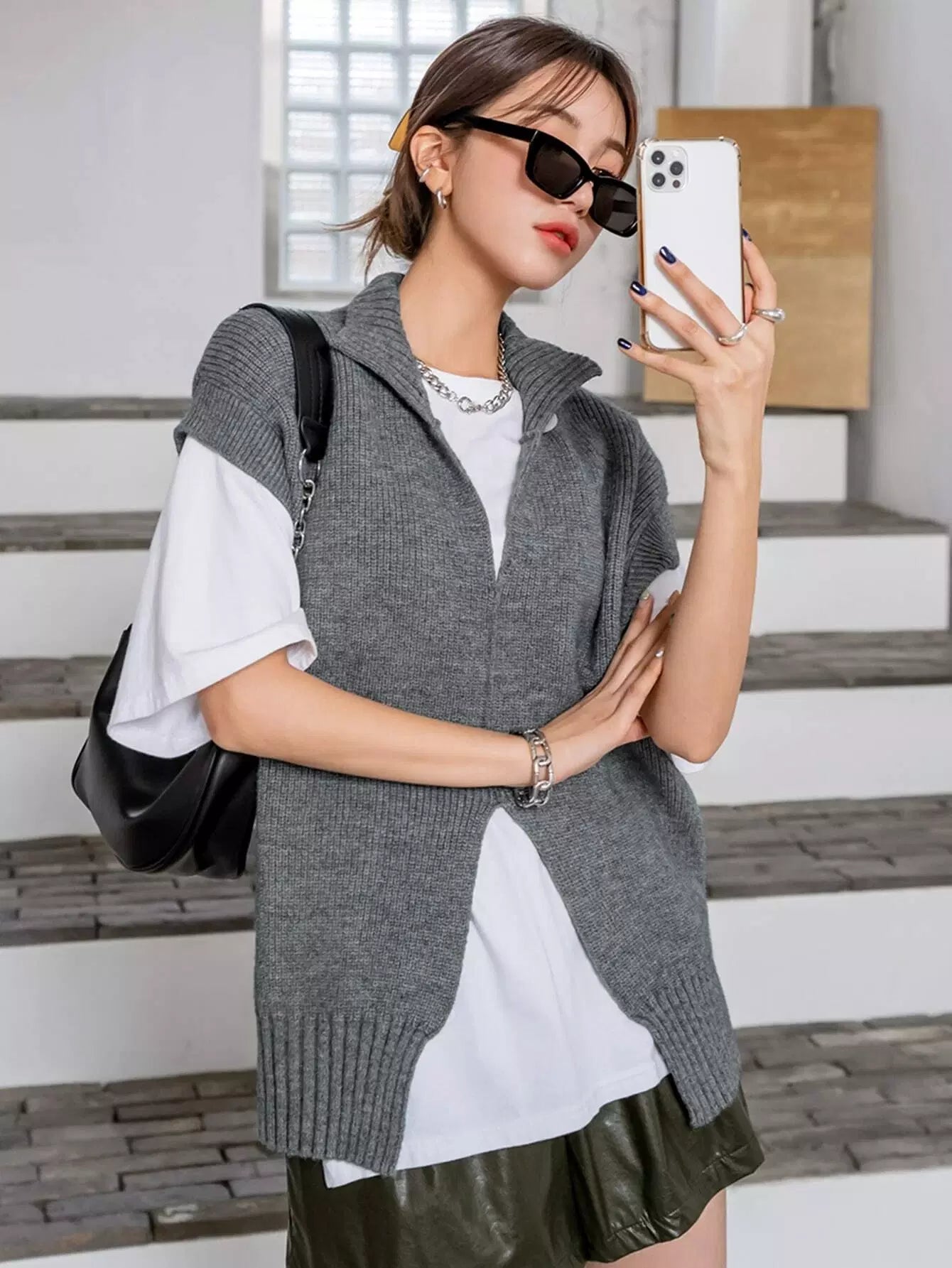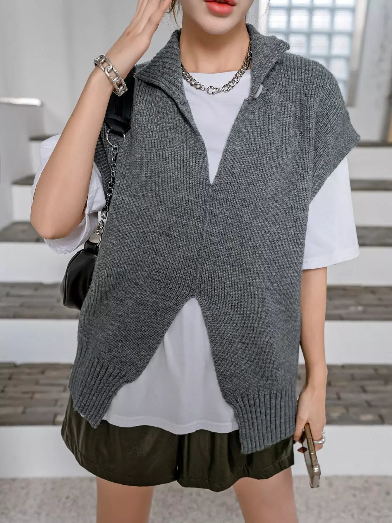 Split Hem Sweater Vest Without Tee