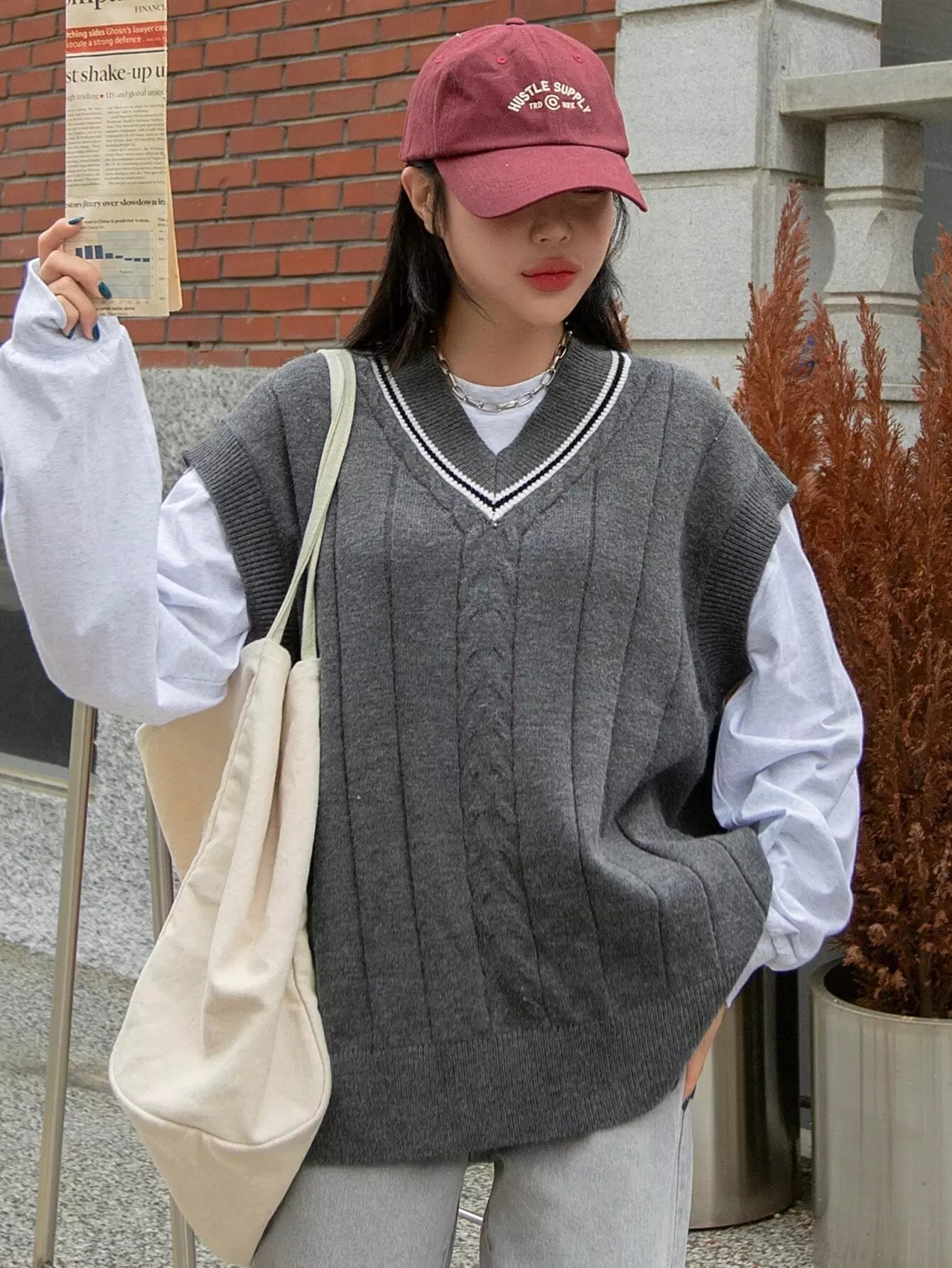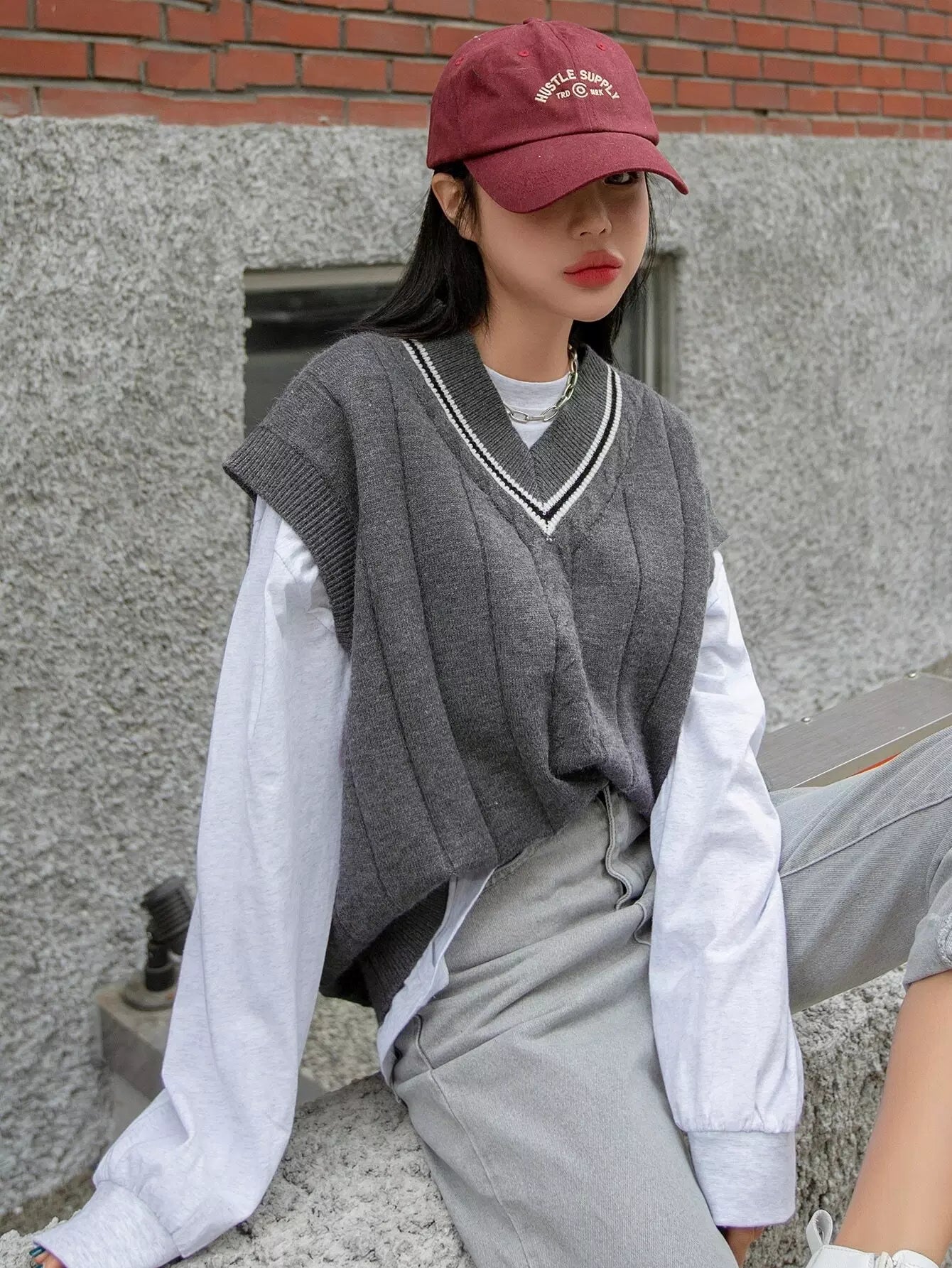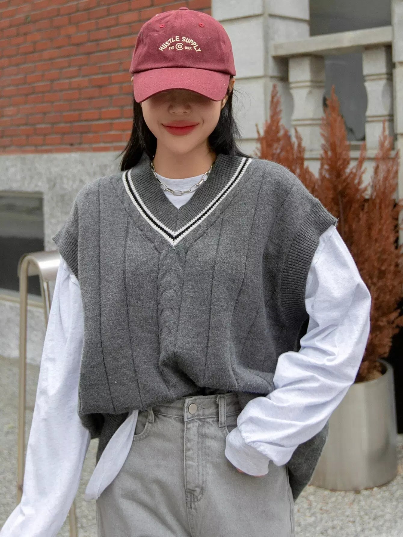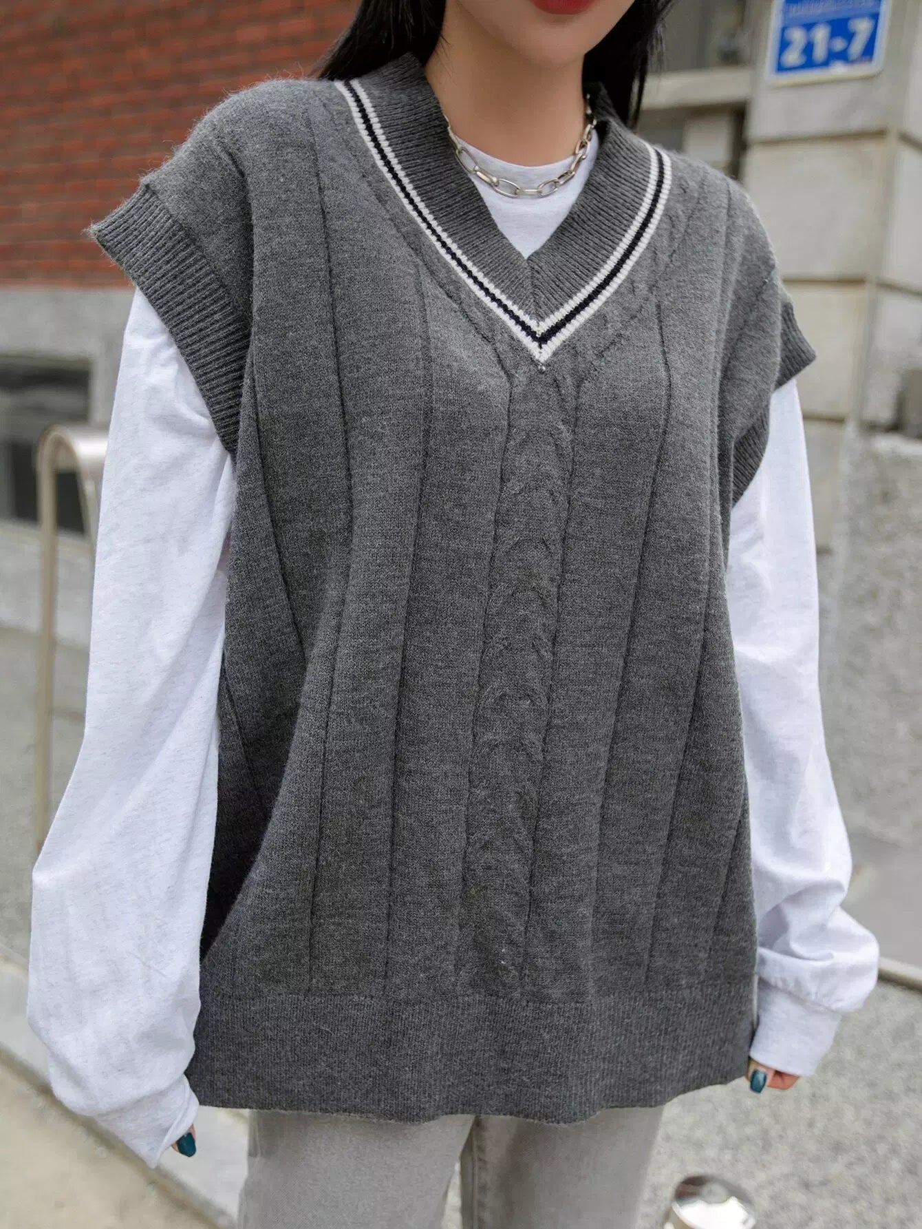 Striped Trim Sweater Vest Without Tee