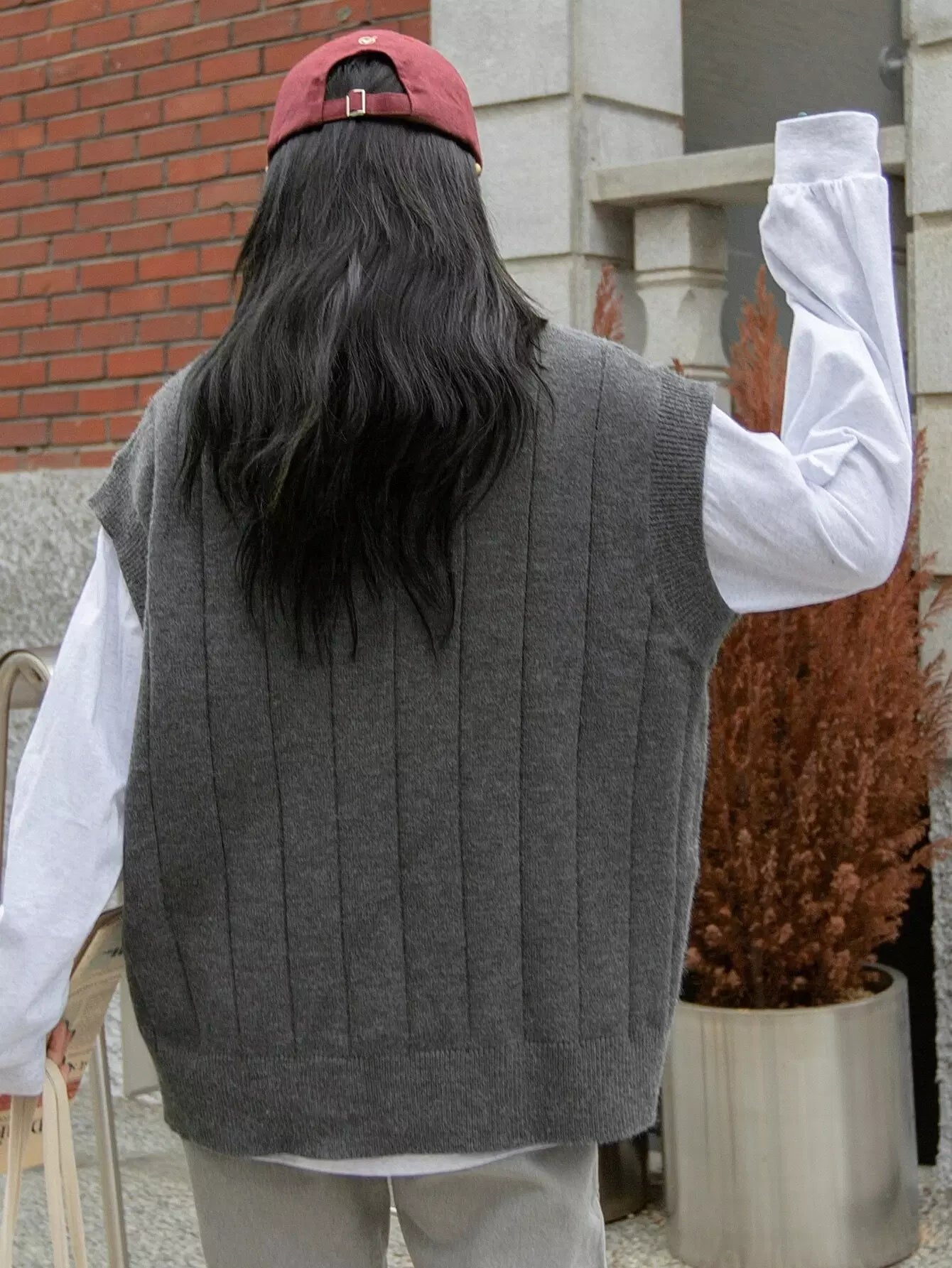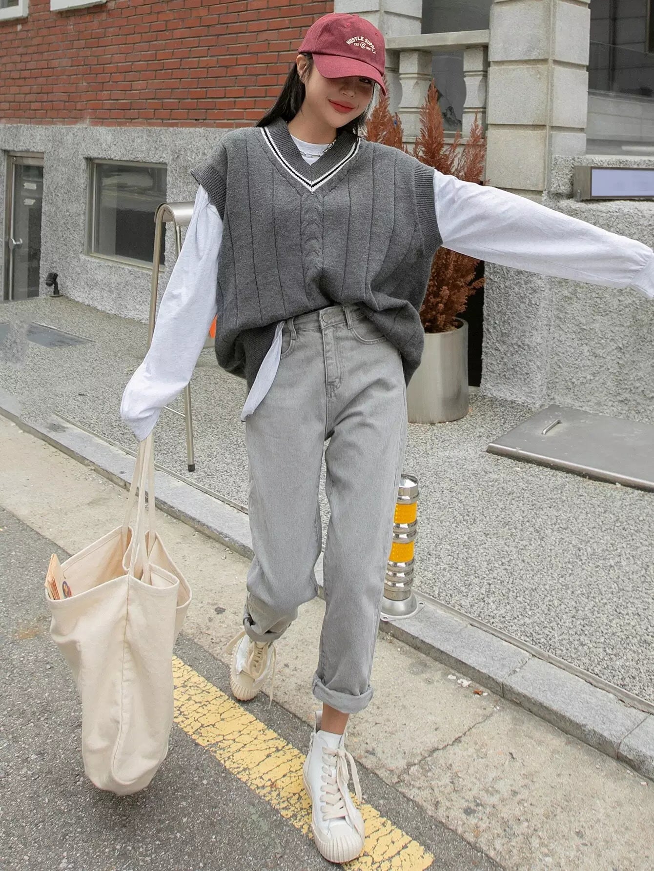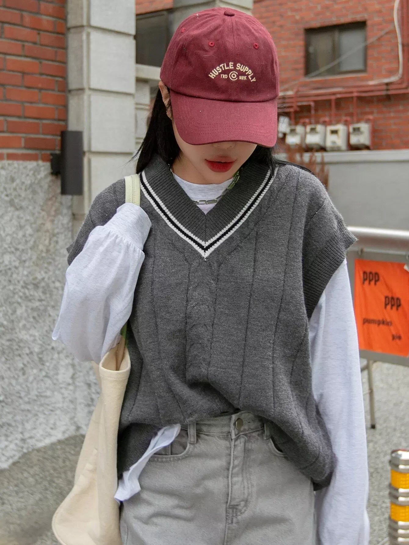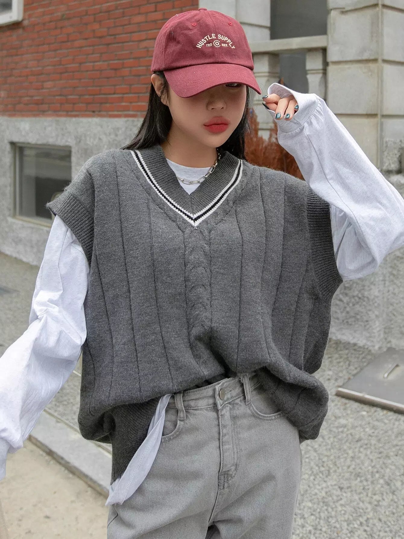Striped Trim Sweater Vest Without Tee