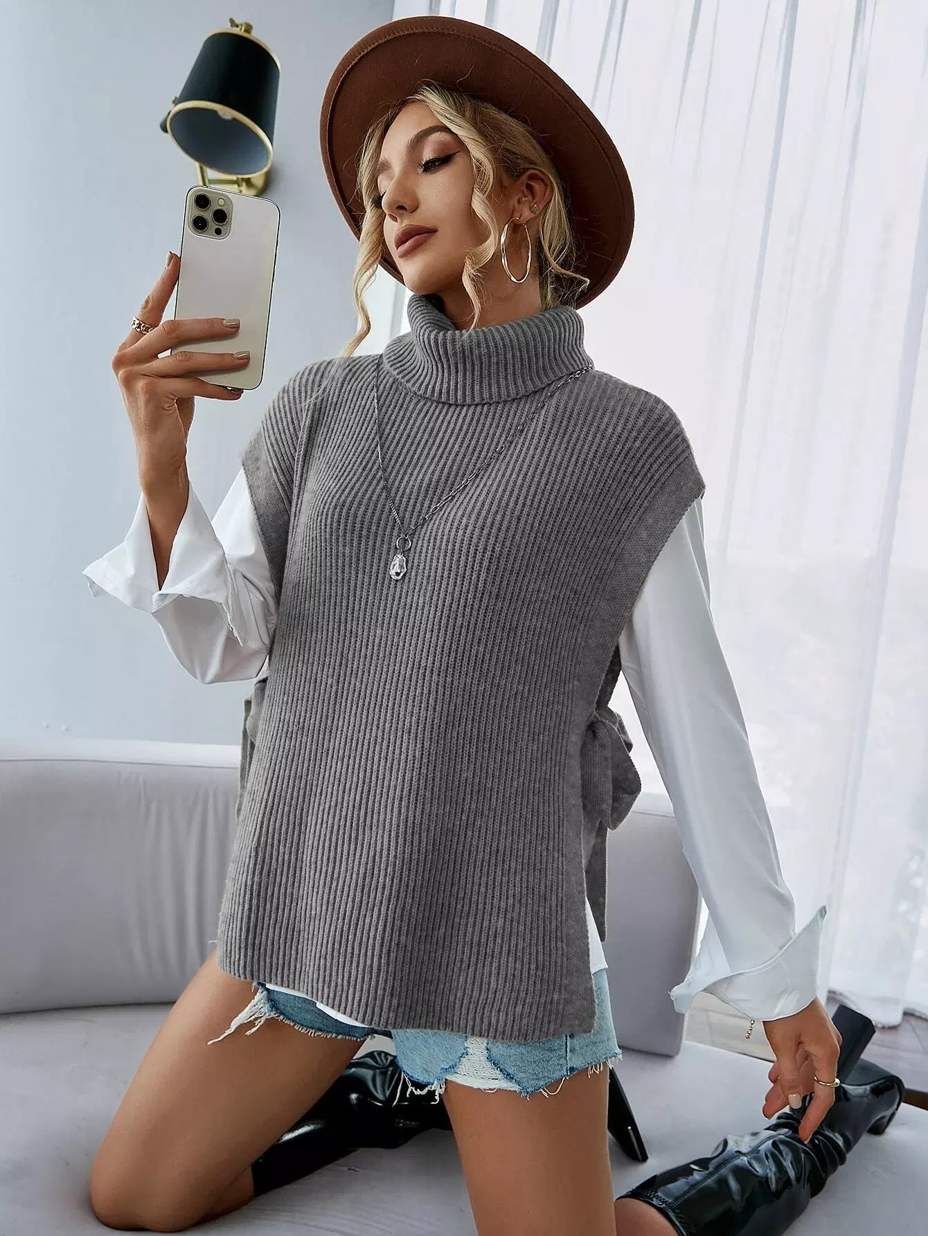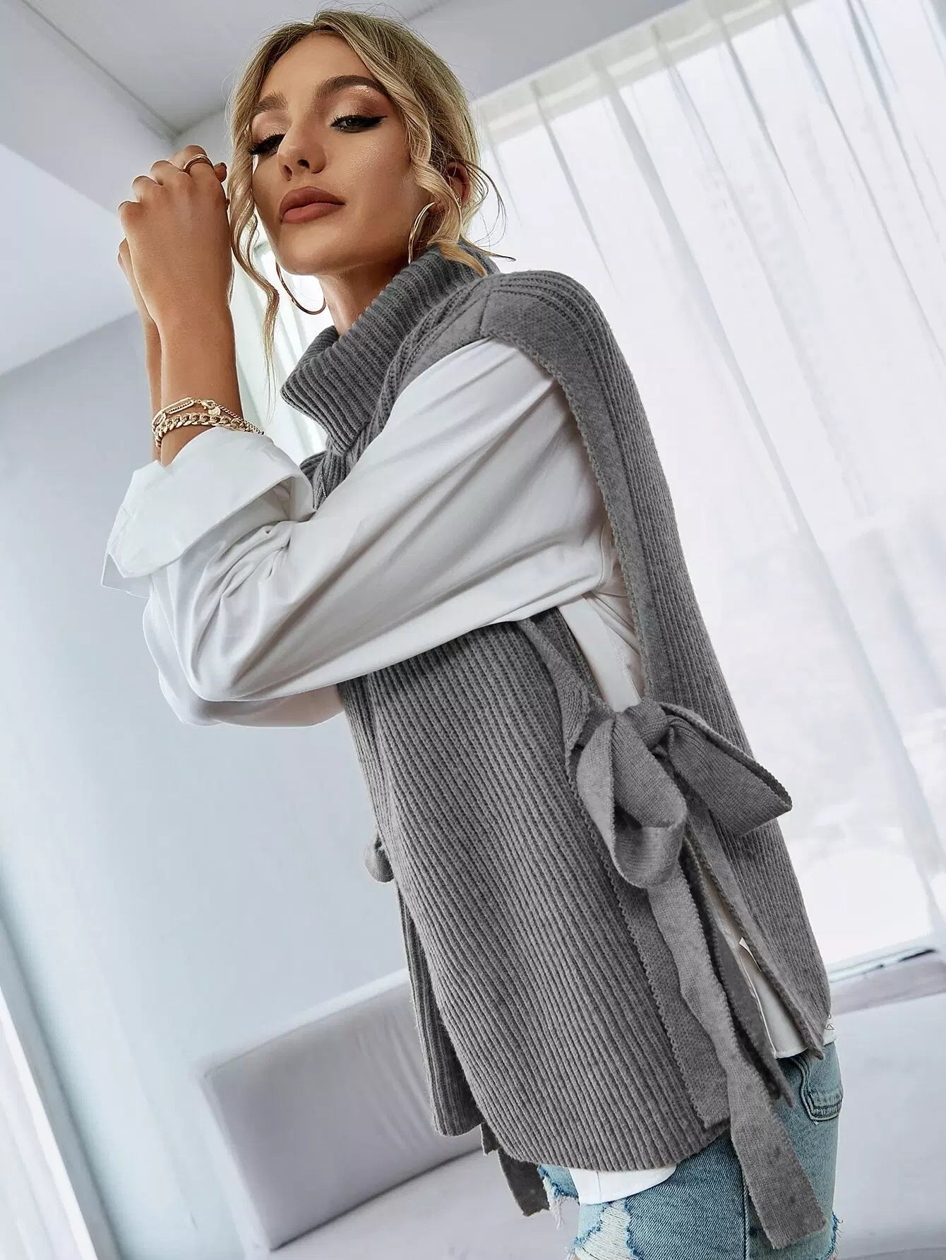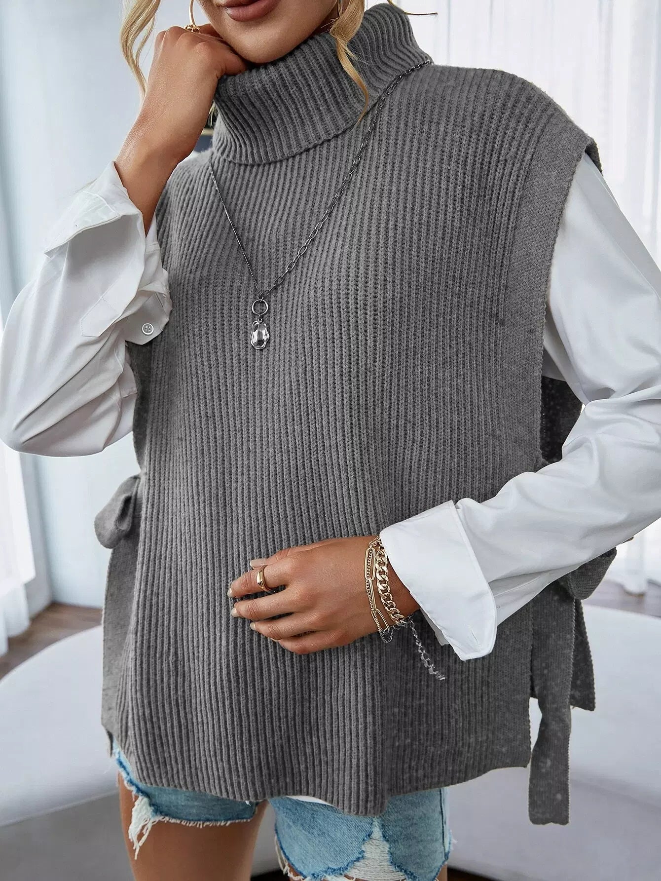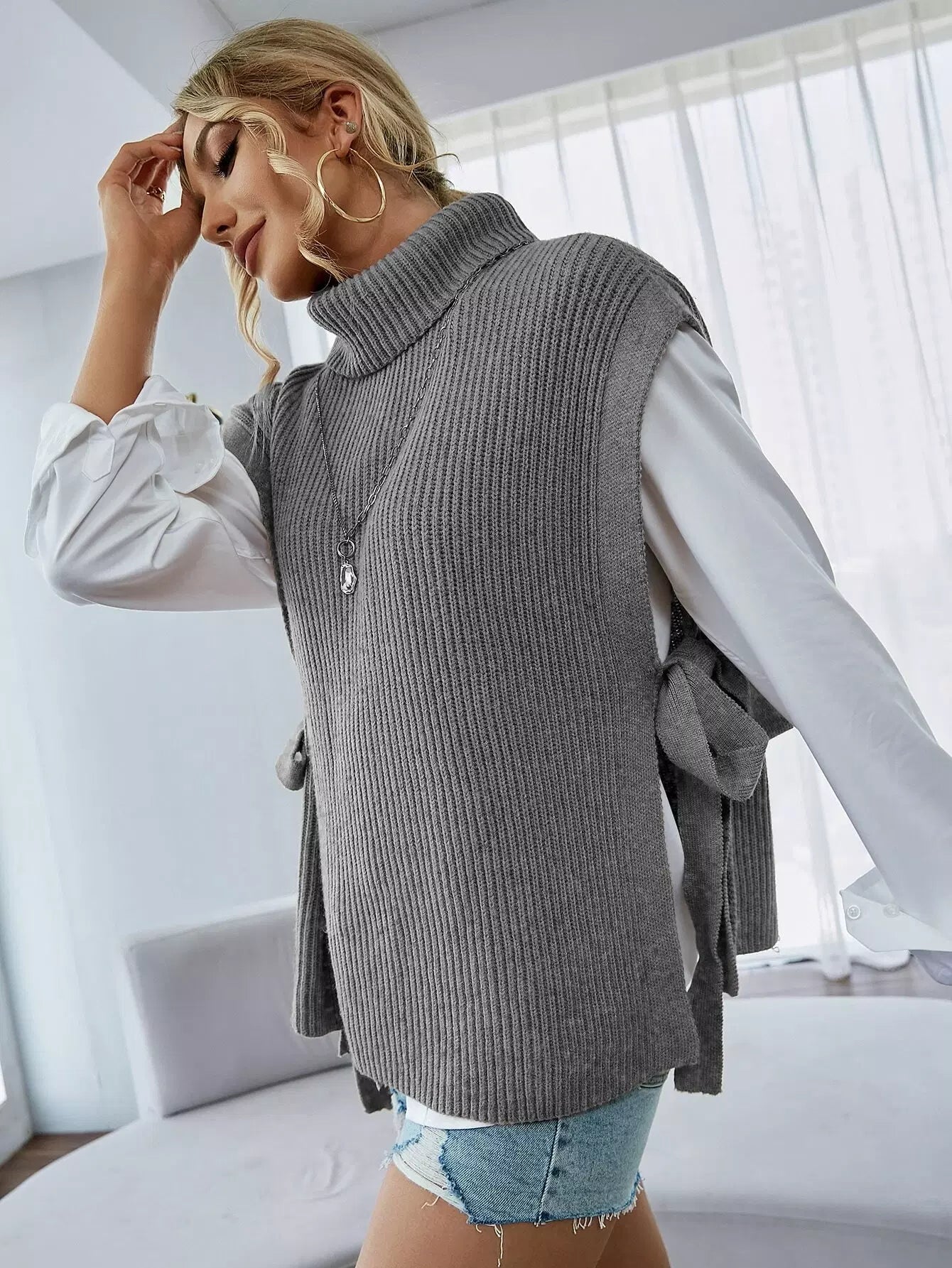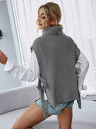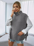Turtleneck Tie Side Sweater Vest Without Blouse
