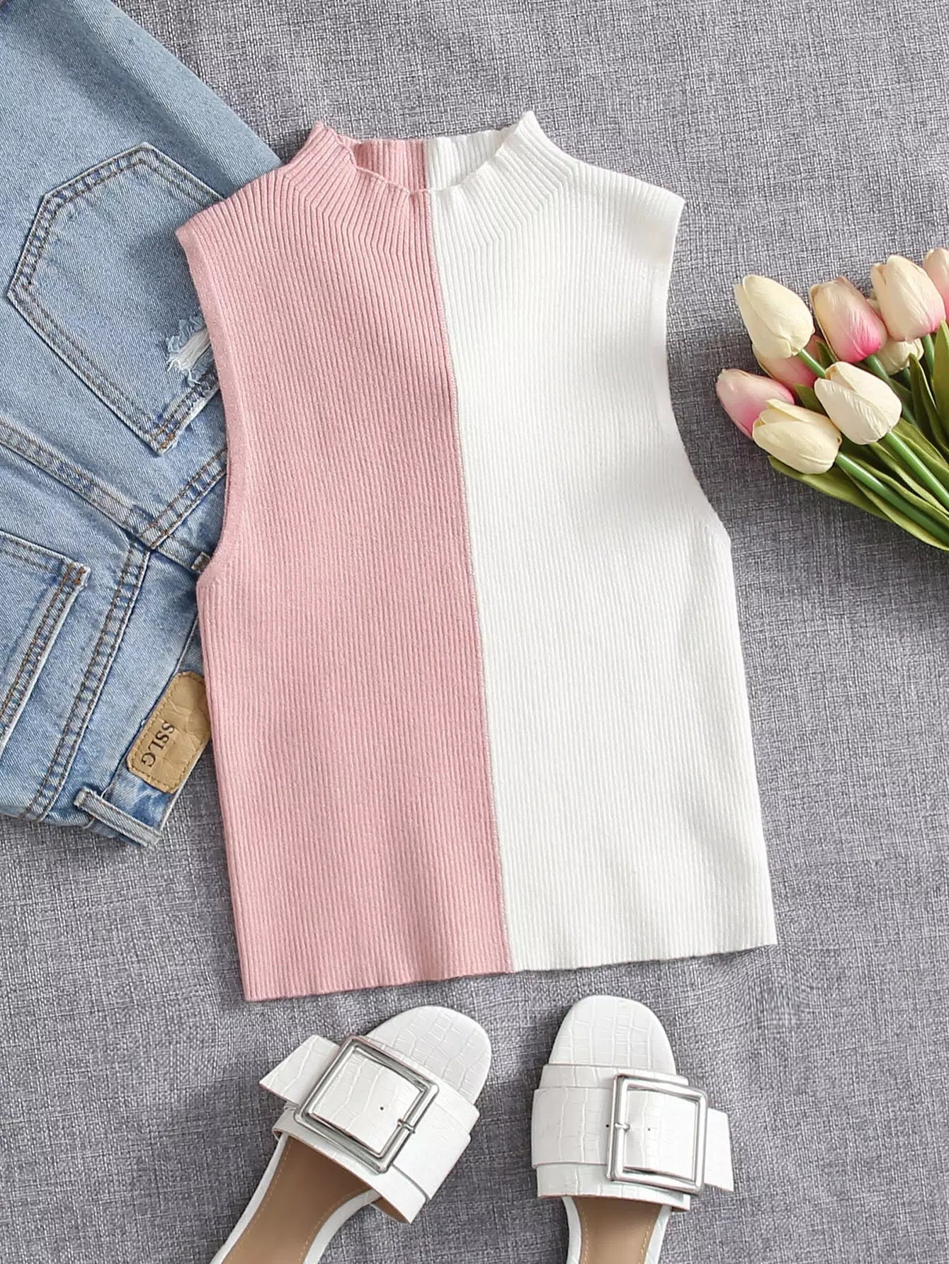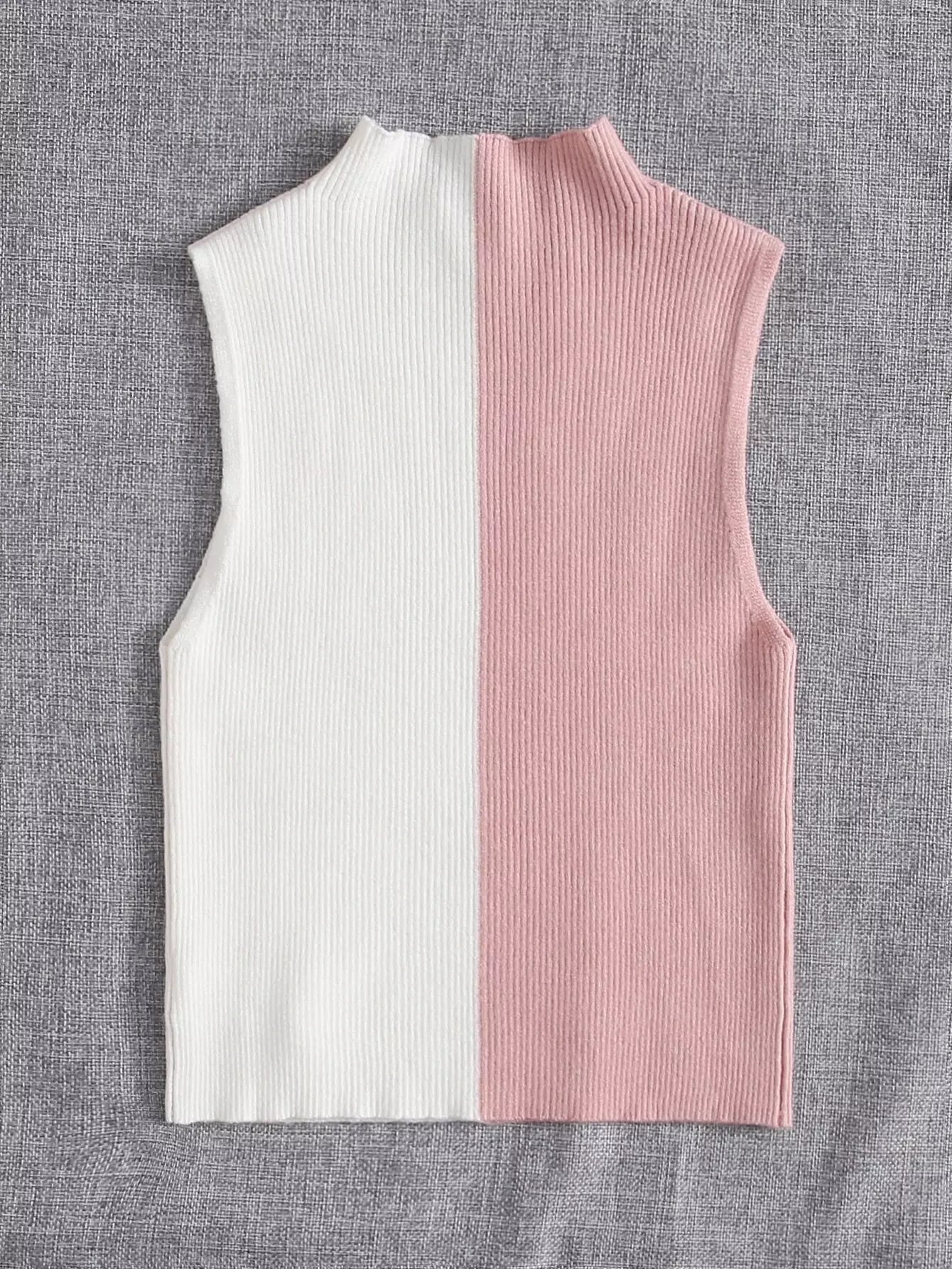 Two Tone Rib-knit Sweater Vest