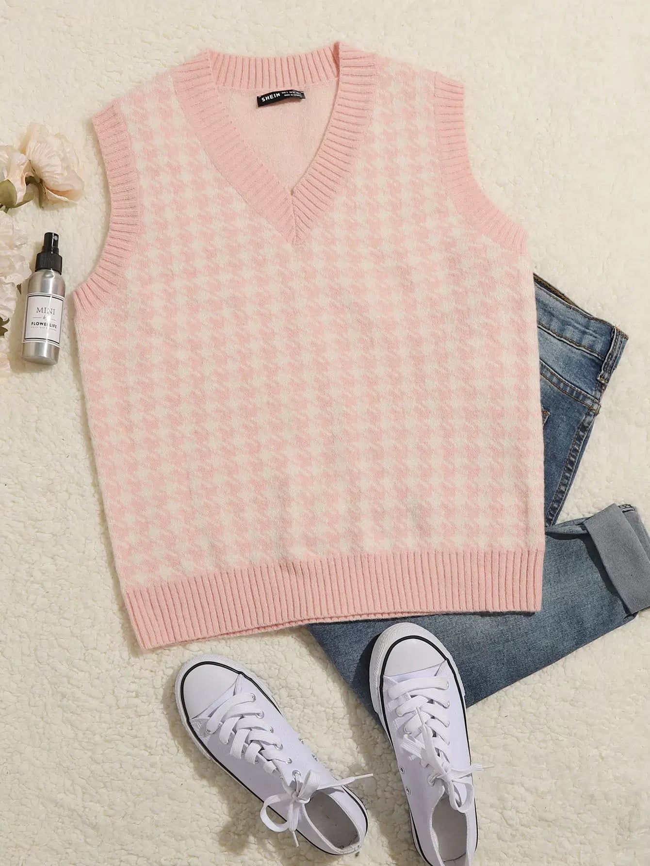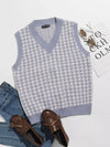 Women - V-neck Houndstooth Pattern Sweater Vest