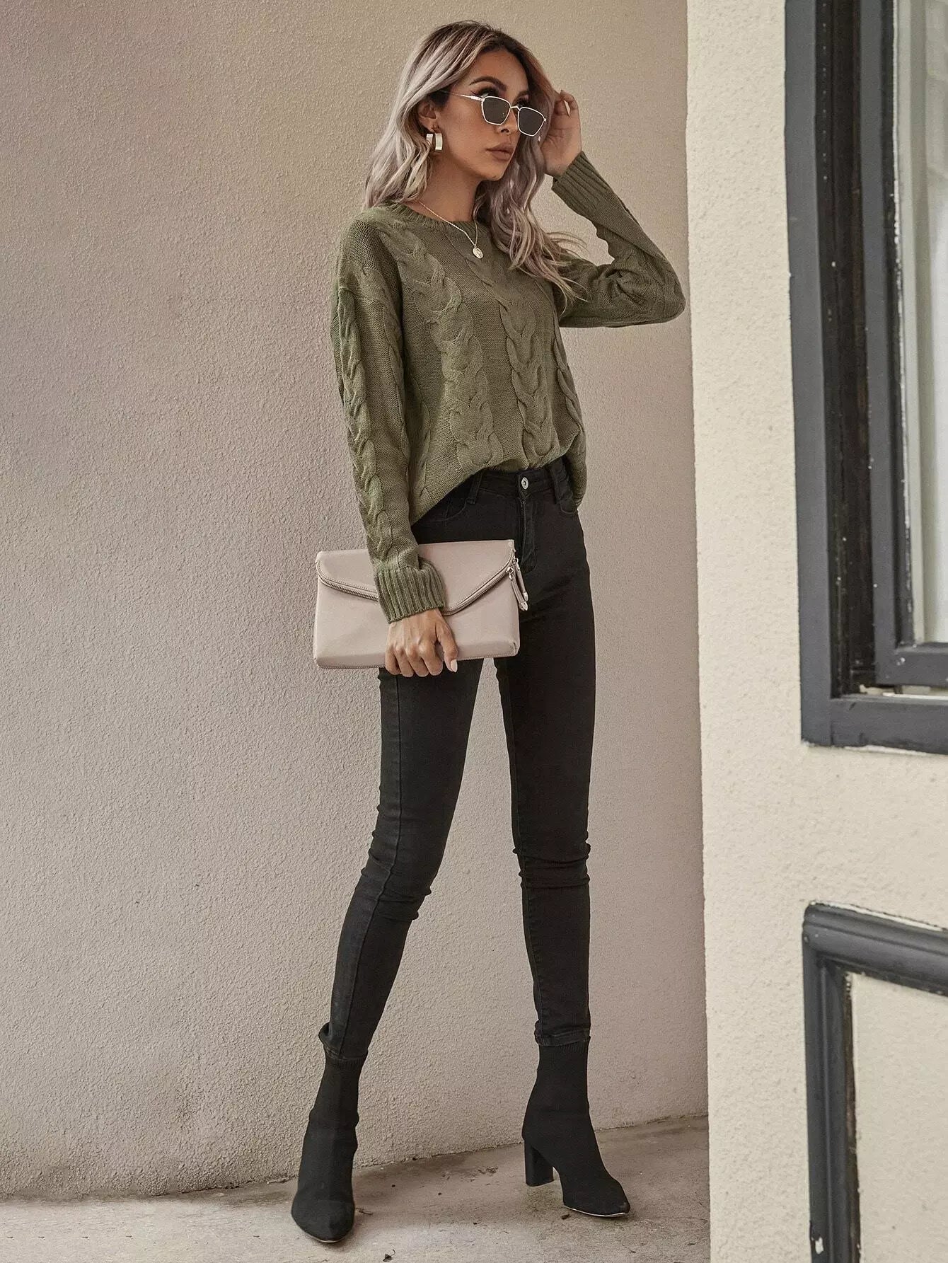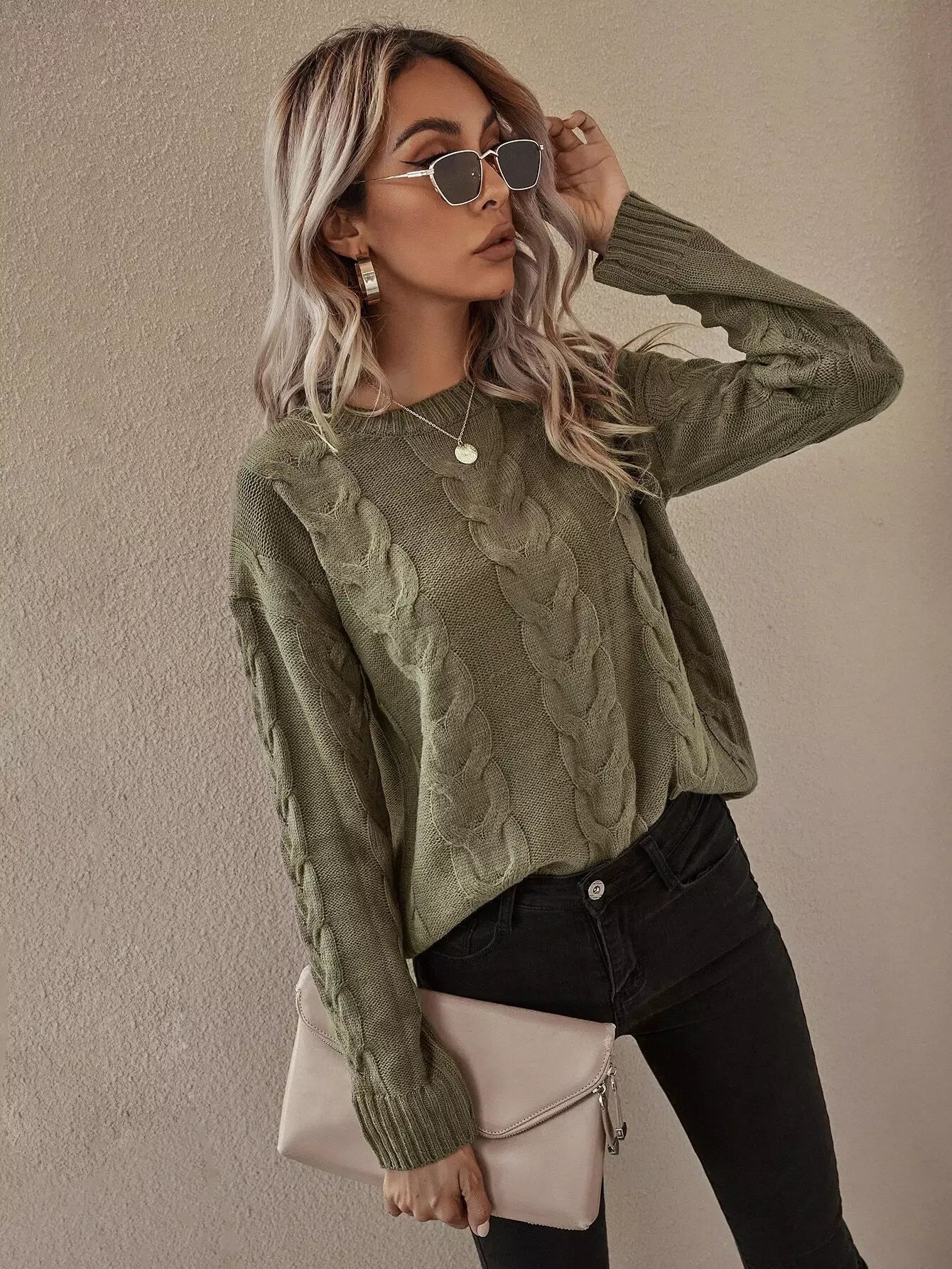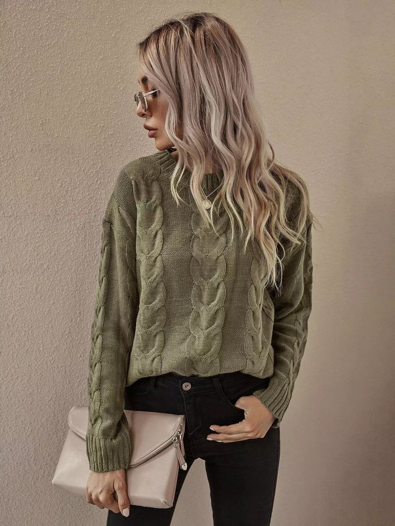 Cable Knit Drop Shoulder Sweater