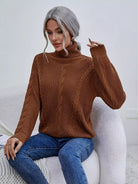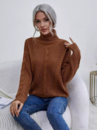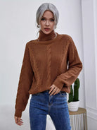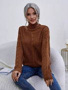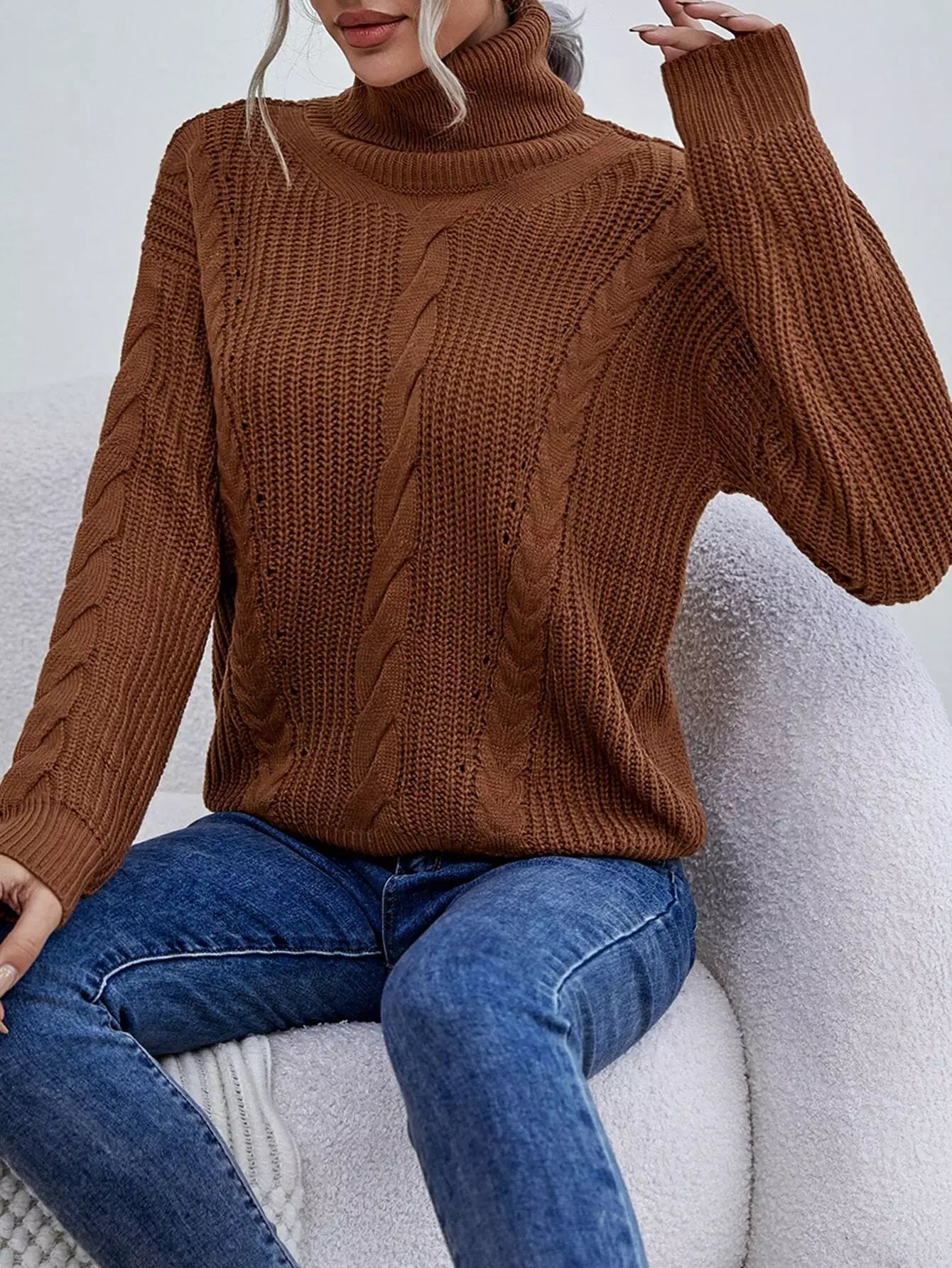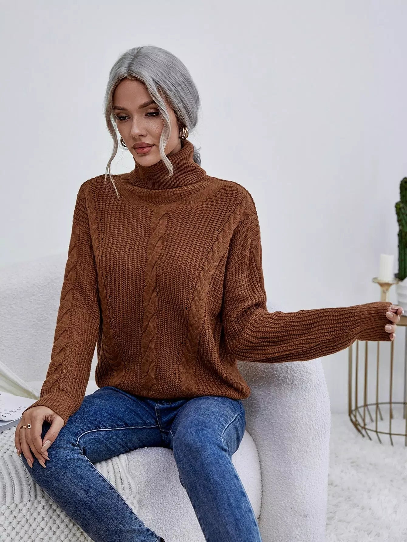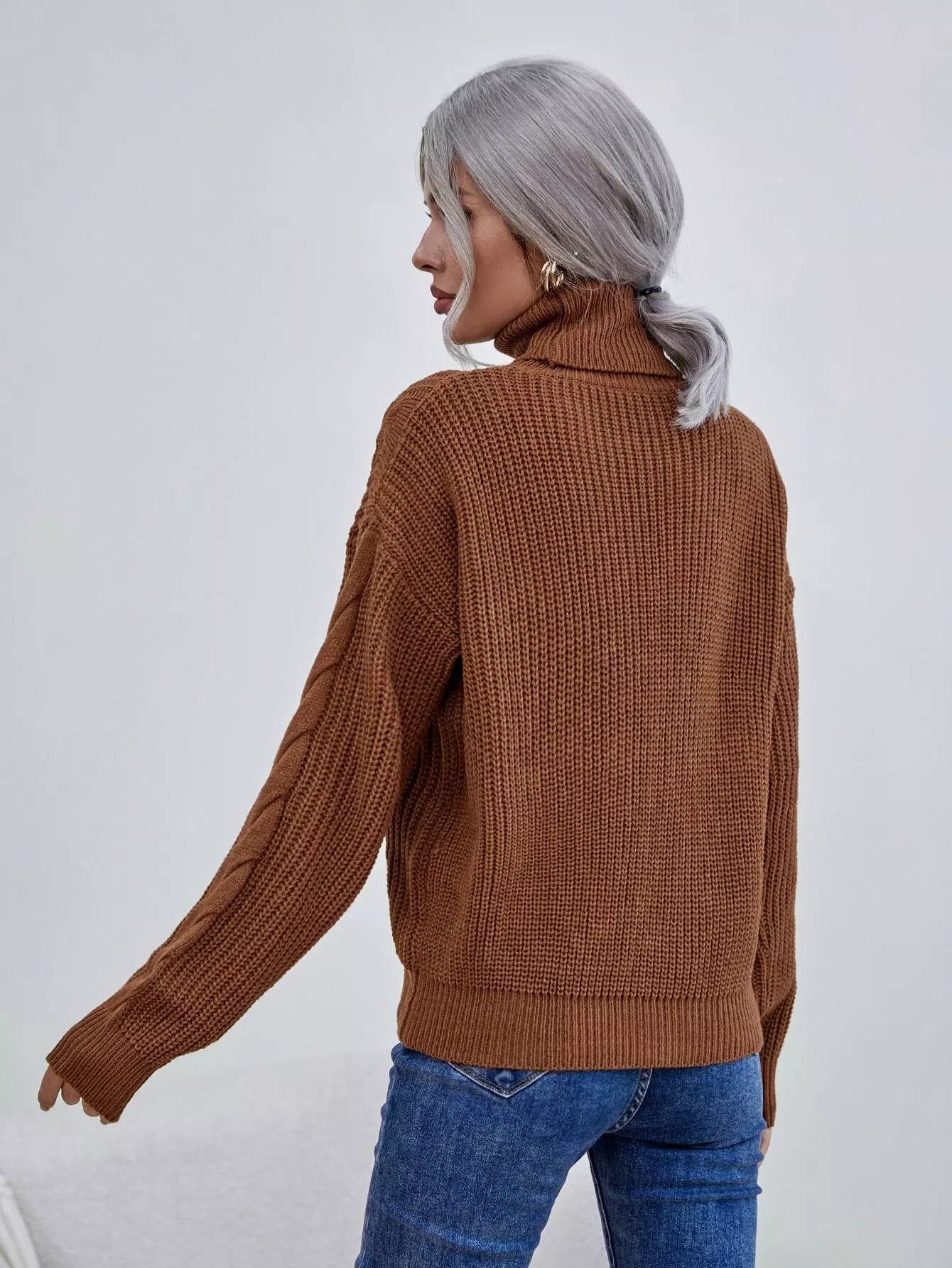 Cable Knit Turtleneck Drop Shoulder Sweater