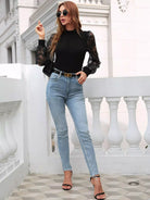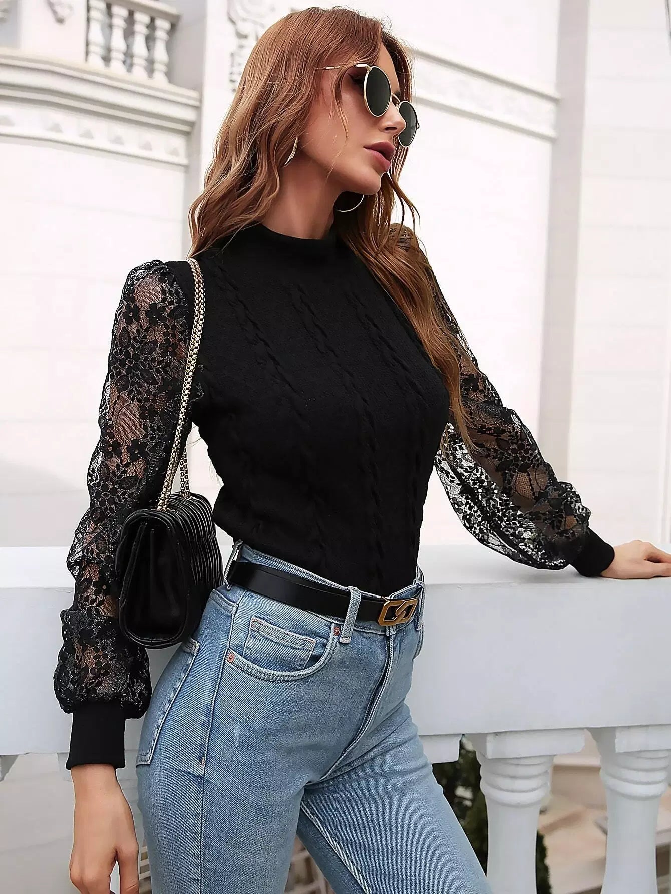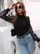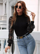 Contrast Lace Mock Neck Sweater