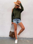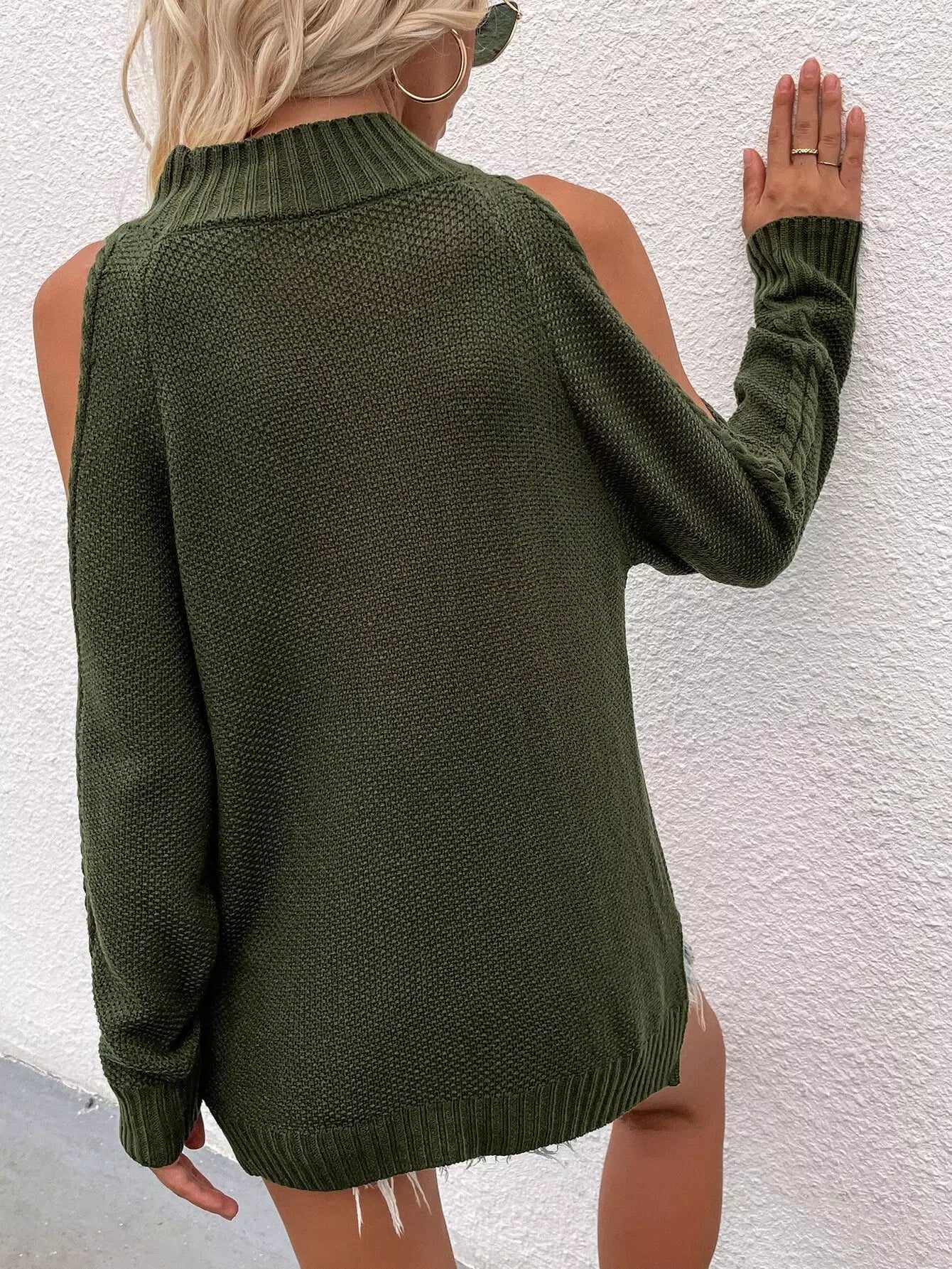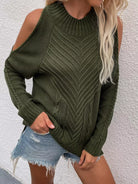 Cut Out Shoulder Cable Knit Sweater