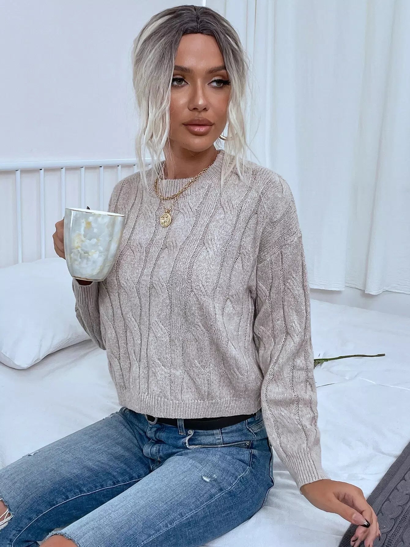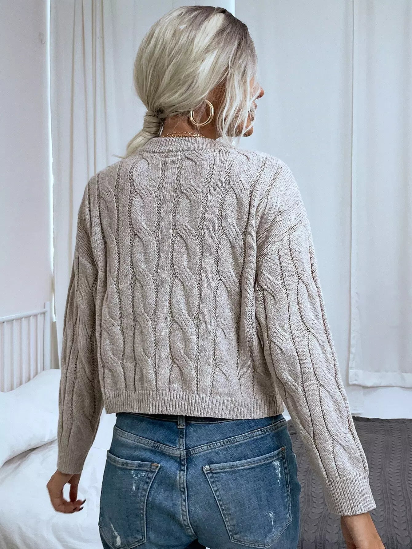 Drop Shoulder Cable Knit Sweater