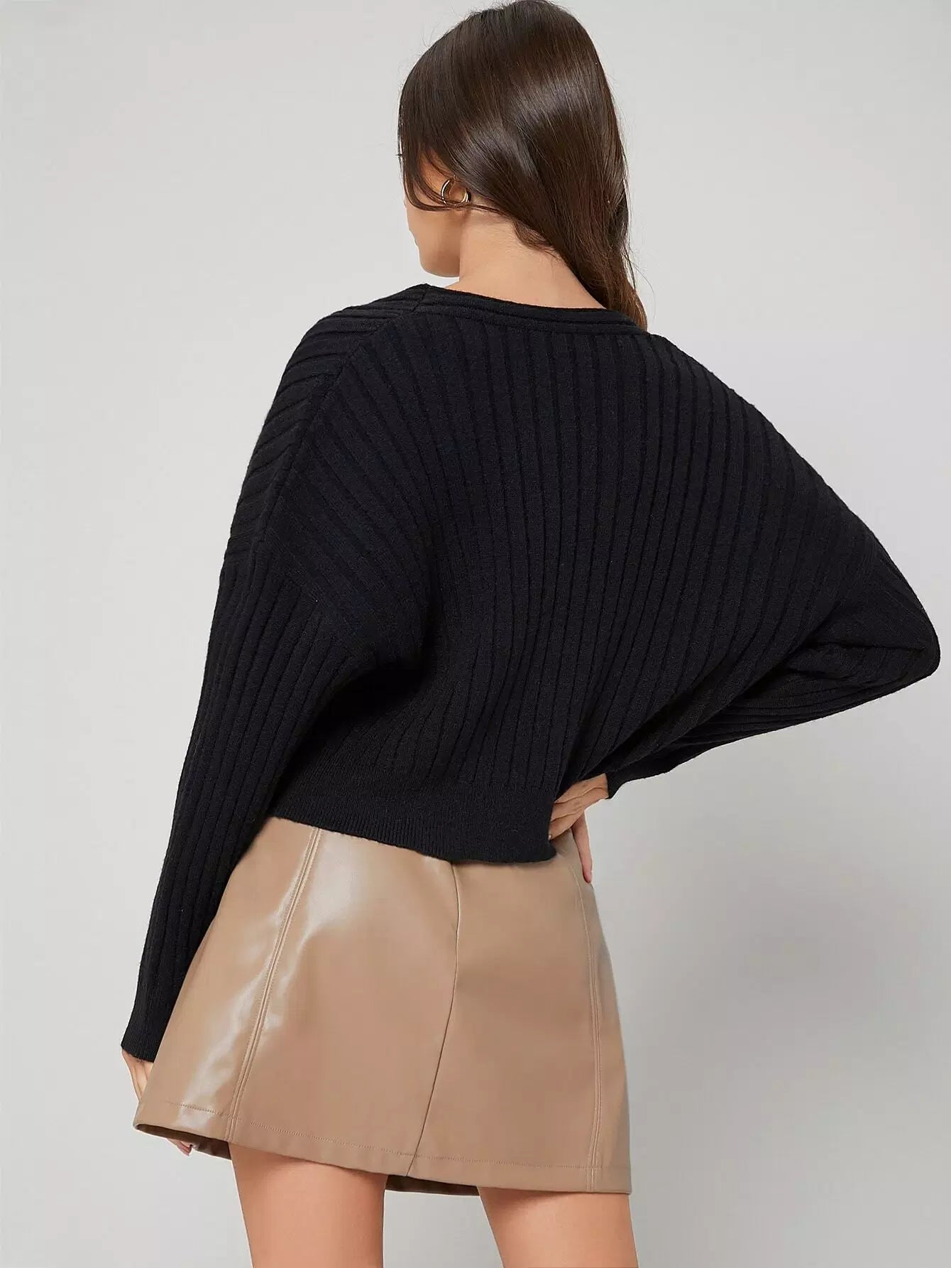 Drop Shoulder Rib Knit Sweater