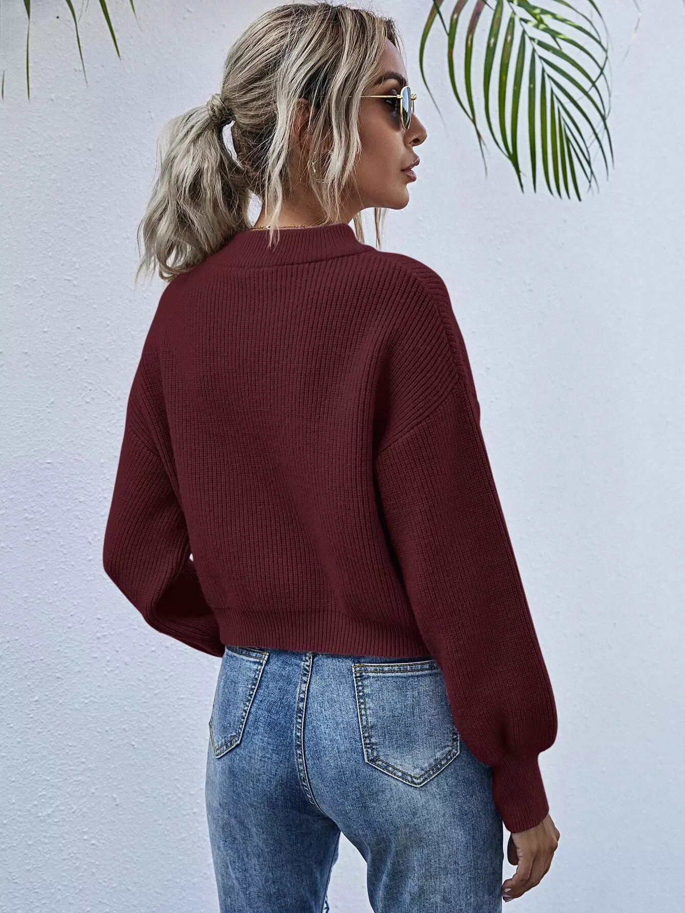 Drop Shoulder Solid Crop Sweater