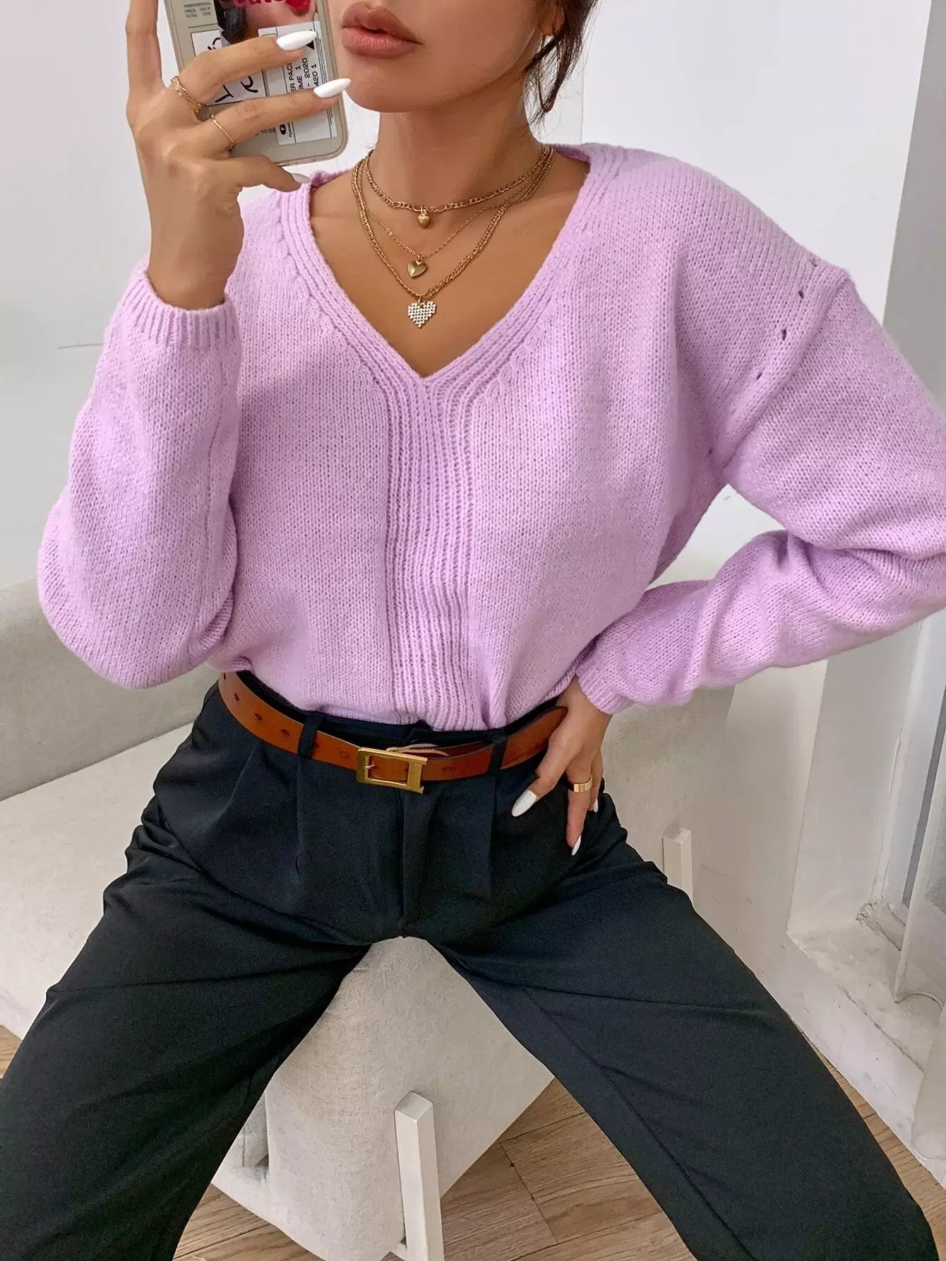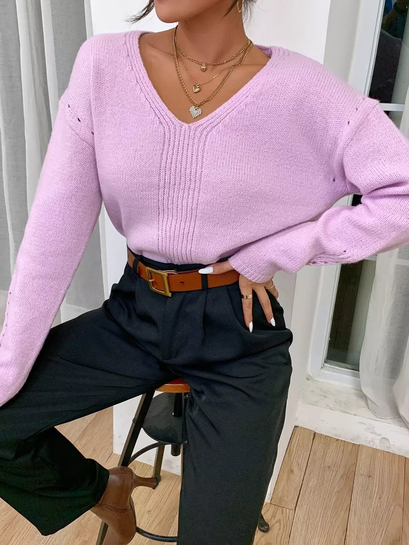 Drop Shoulder Solid Sweater