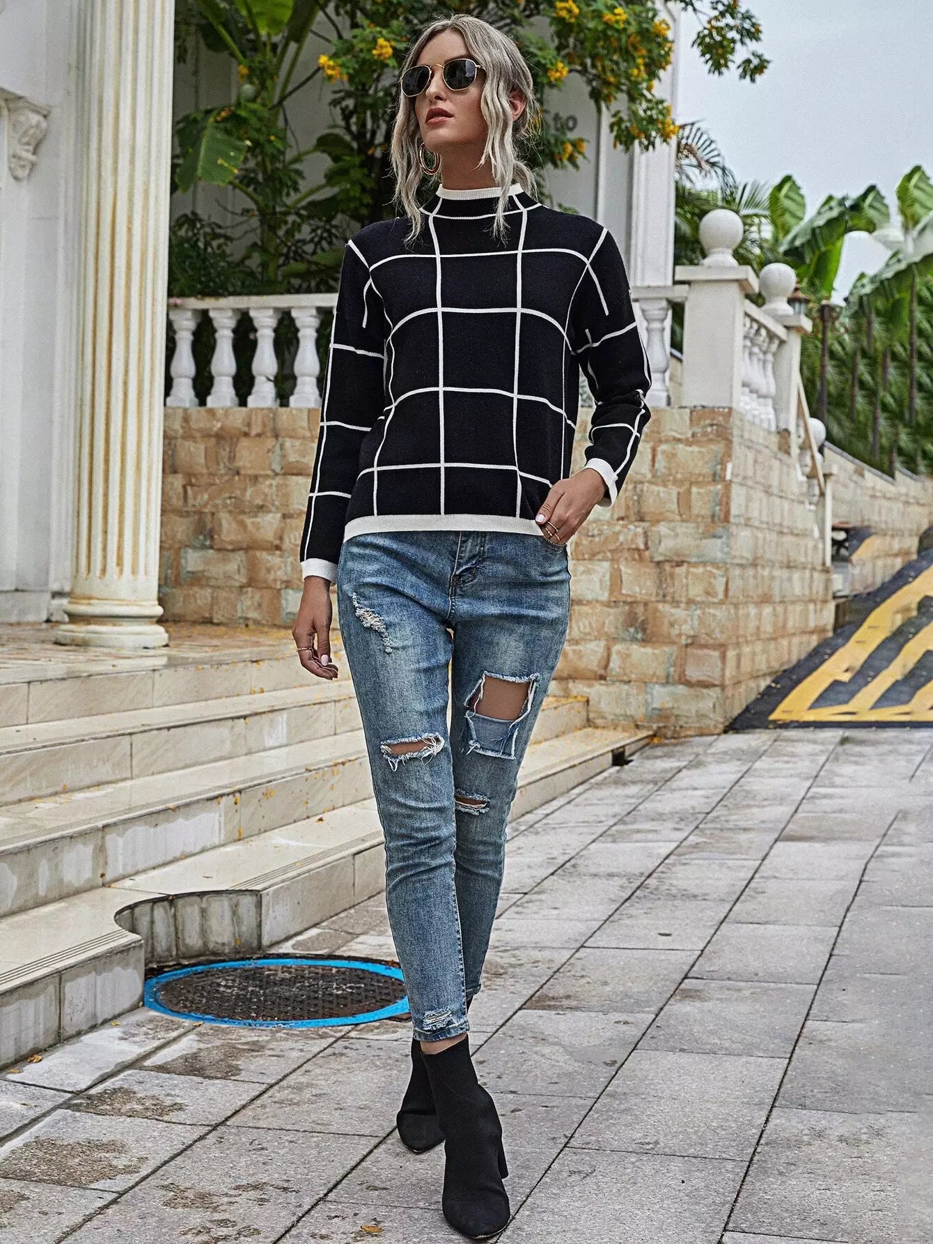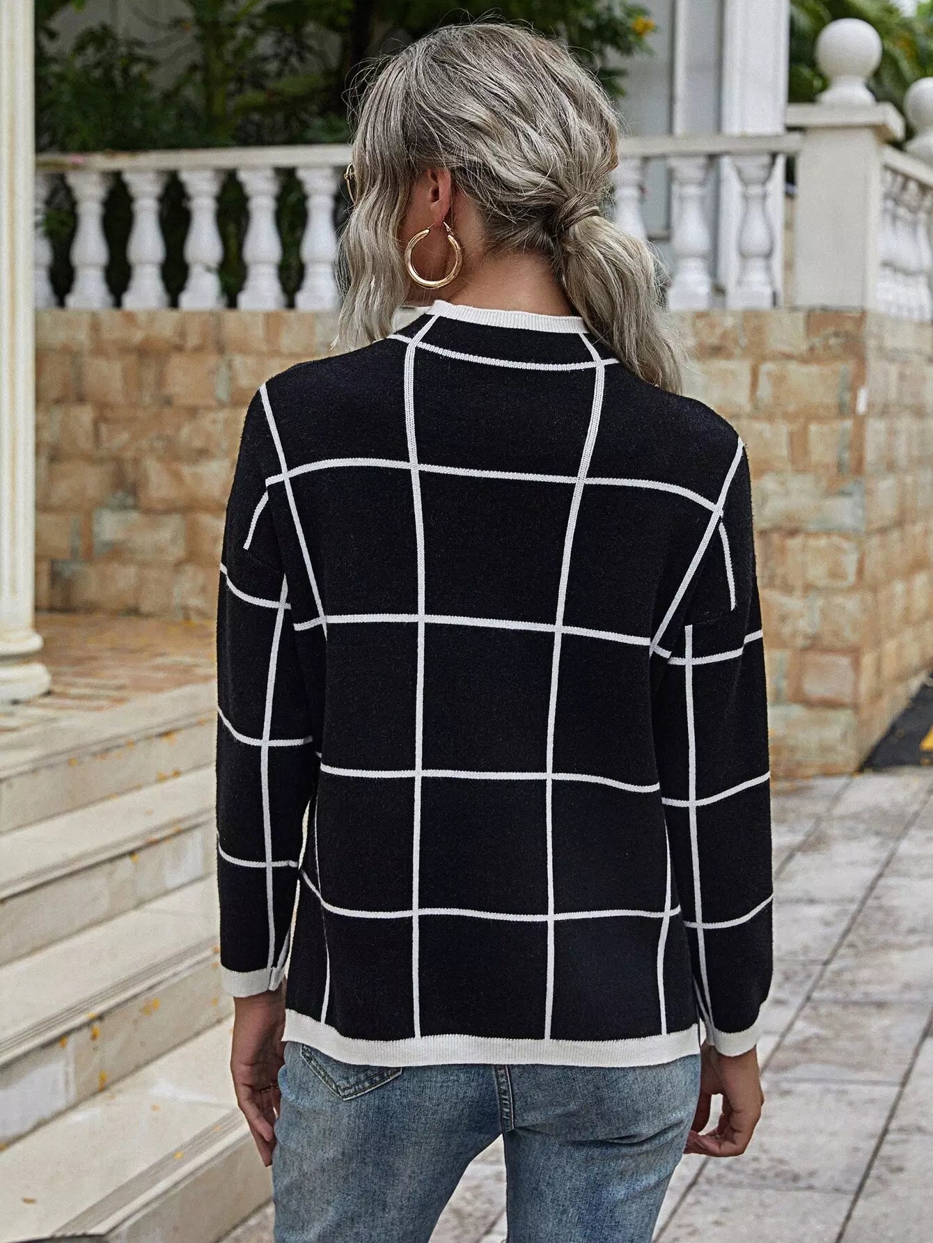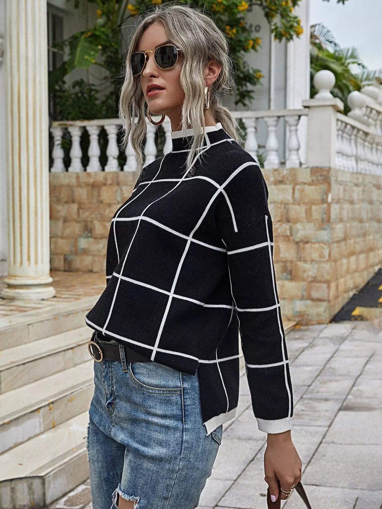 Women - Grid Mock Neck Drop Shoulder Sweater