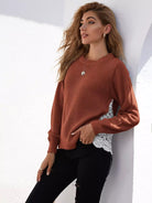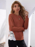 Guipure Lace Insert Ribbed Knit Sweater