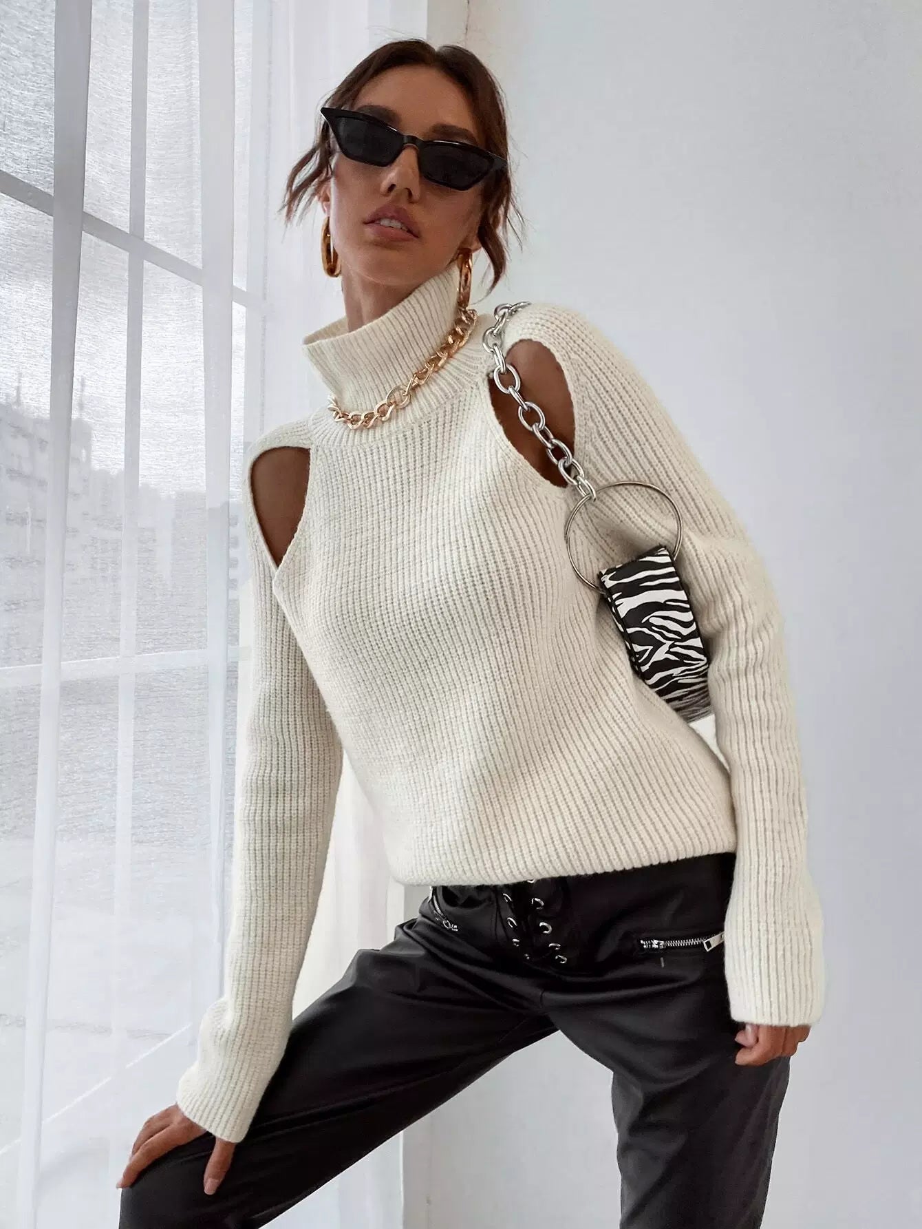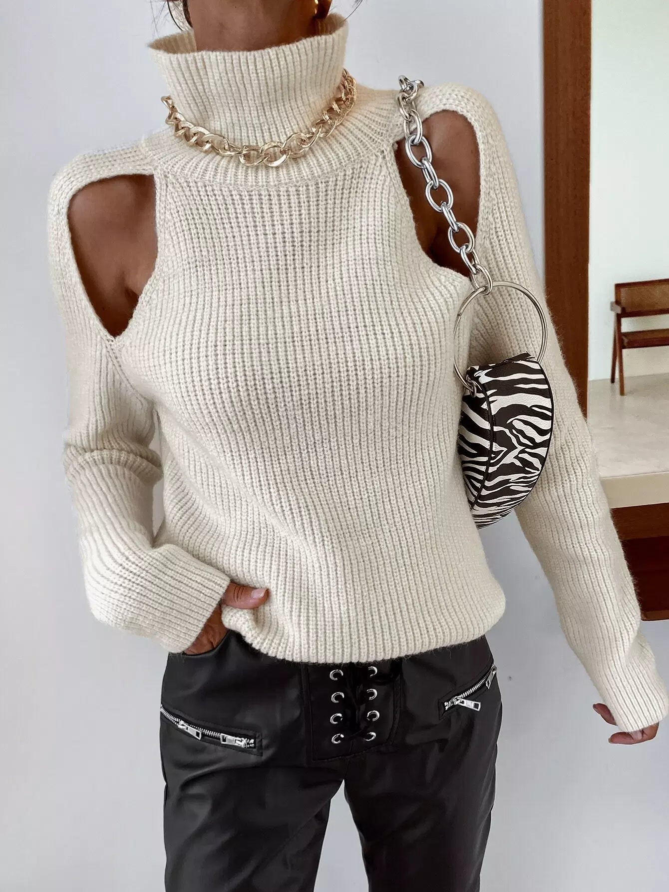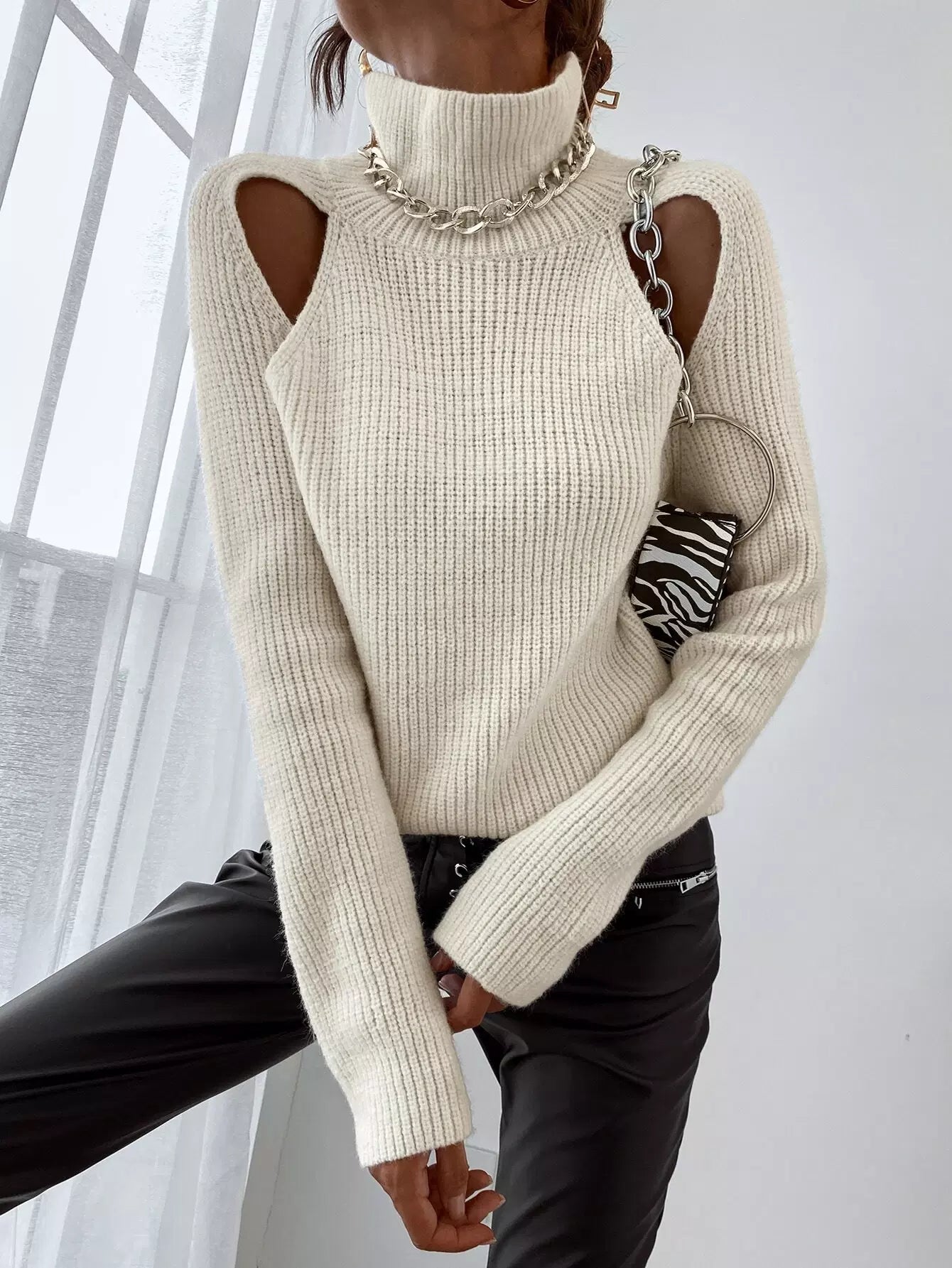 High Neck Cut Out Sweater