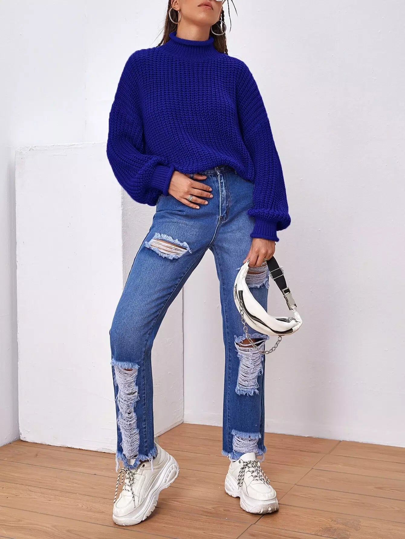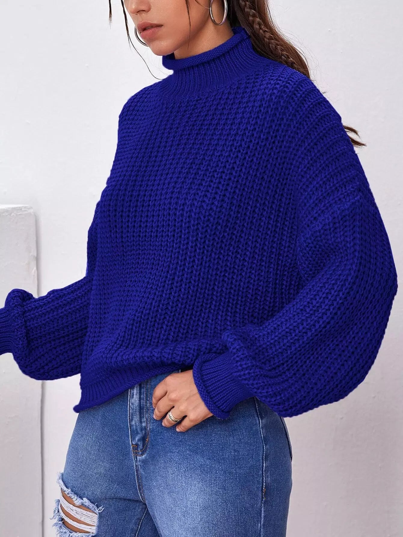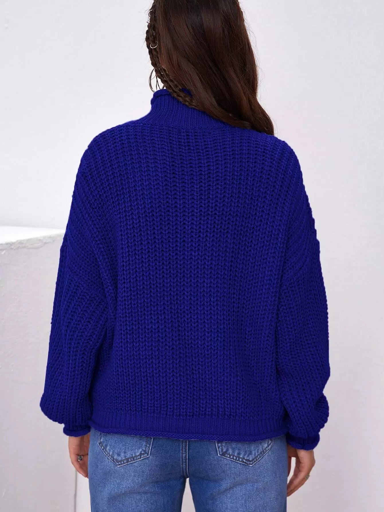 High Neck Drop Shoulder Sweater