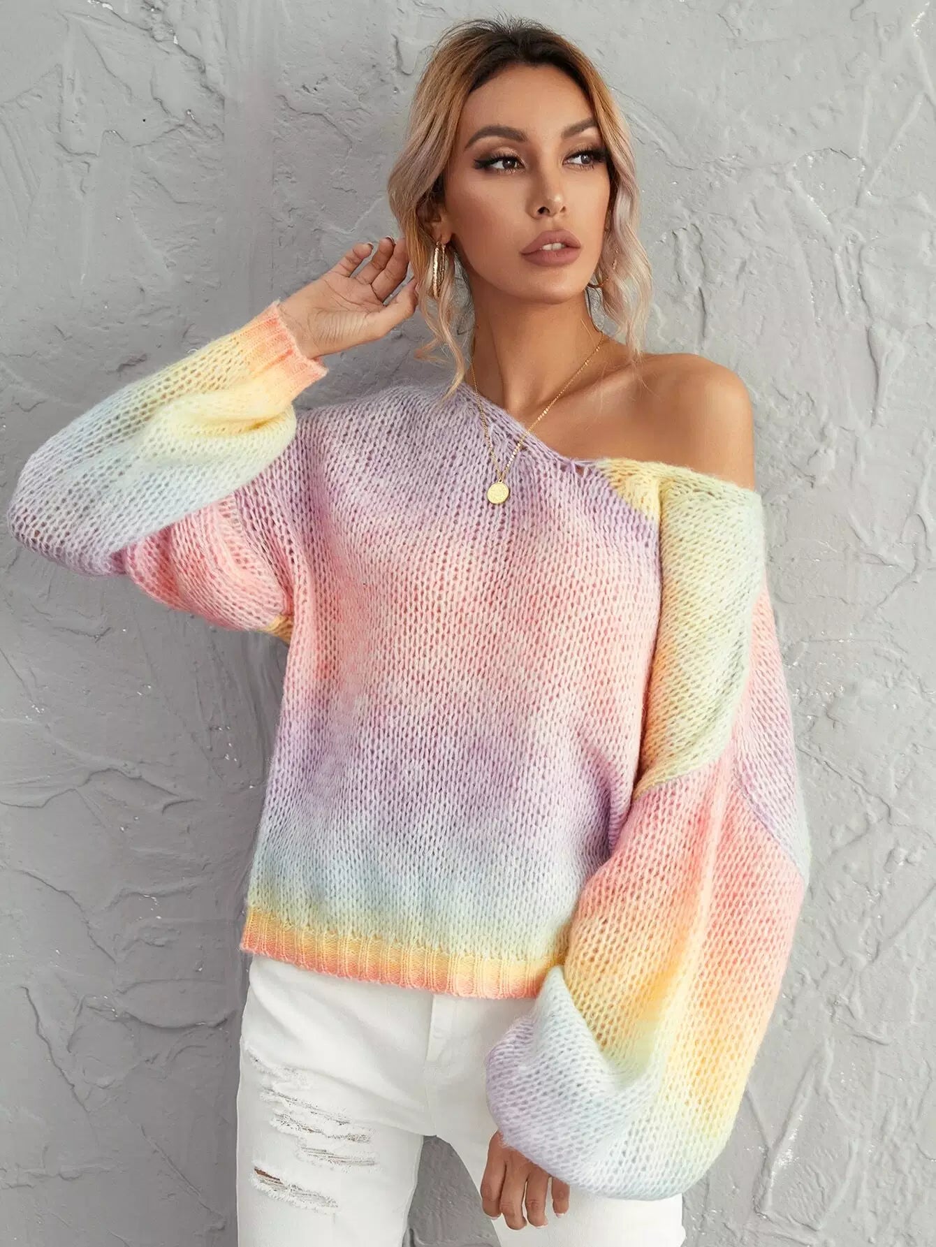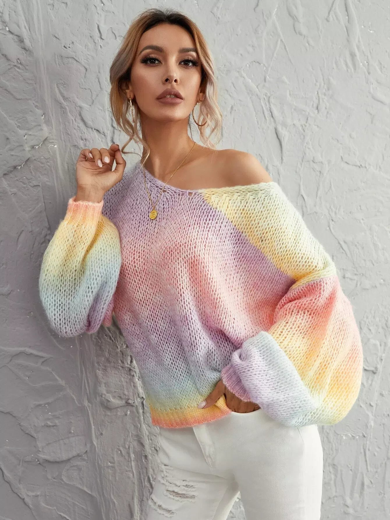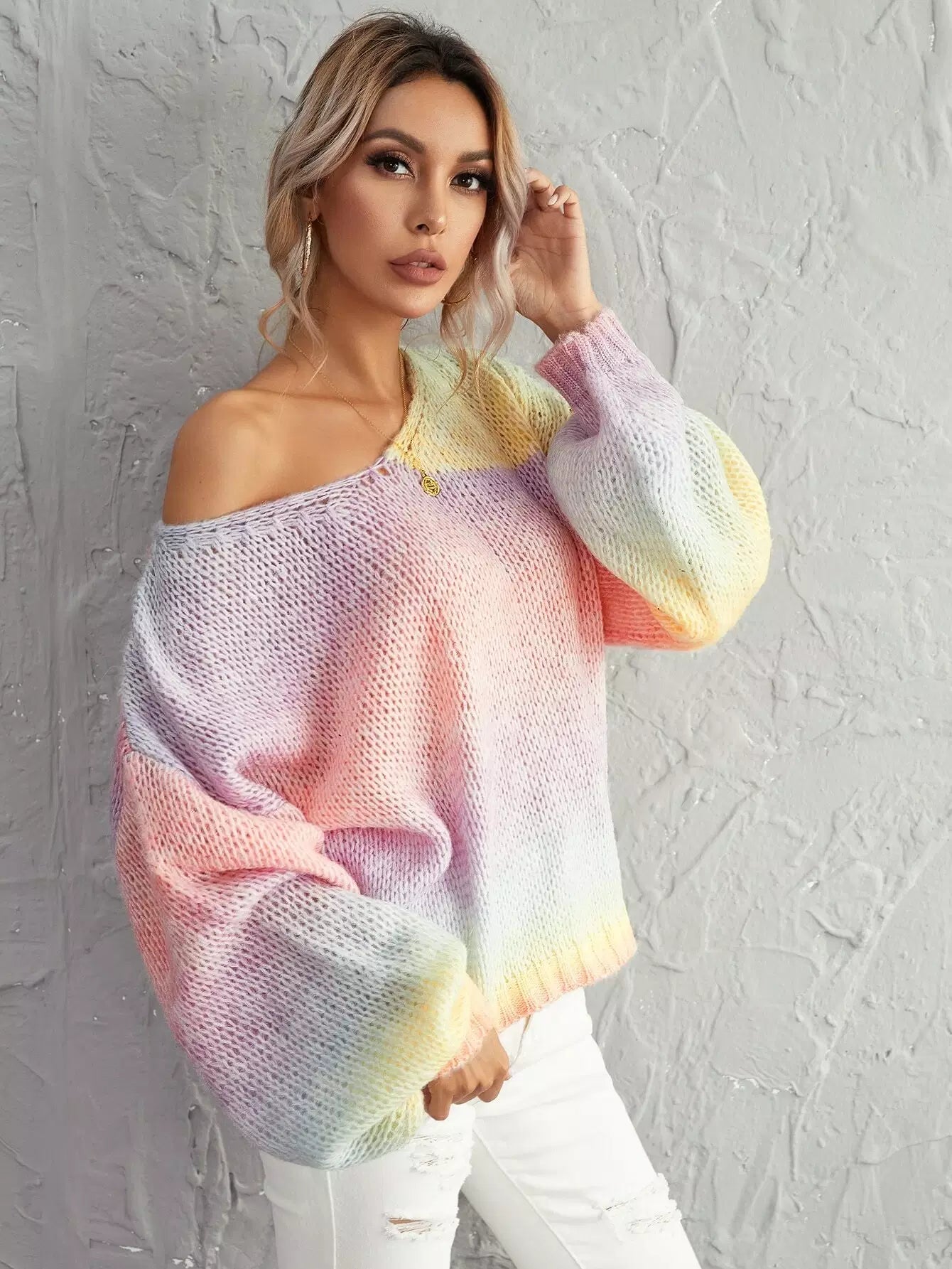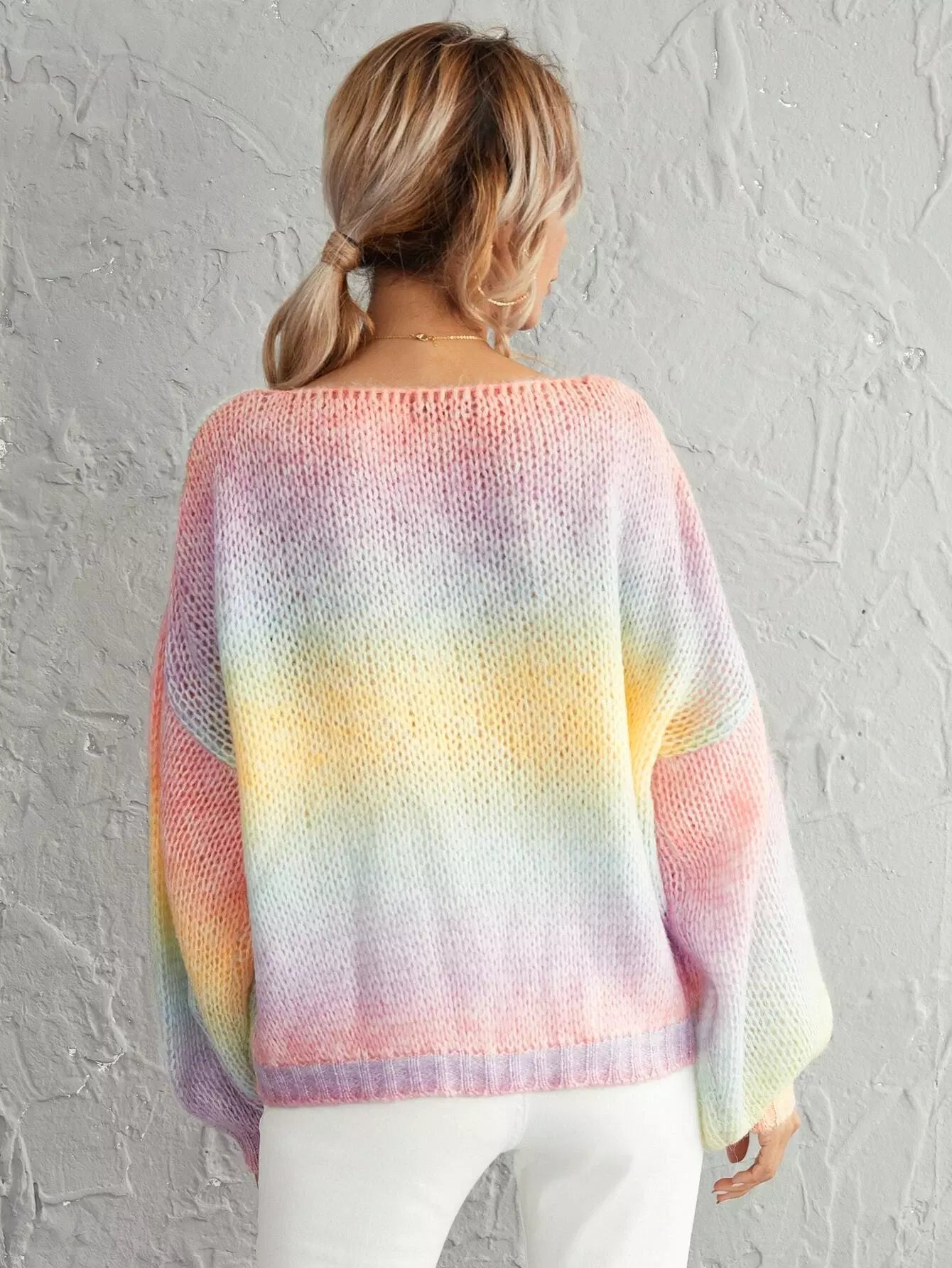 Women - Lantern Sleeve Ombre Oversized Sweater
