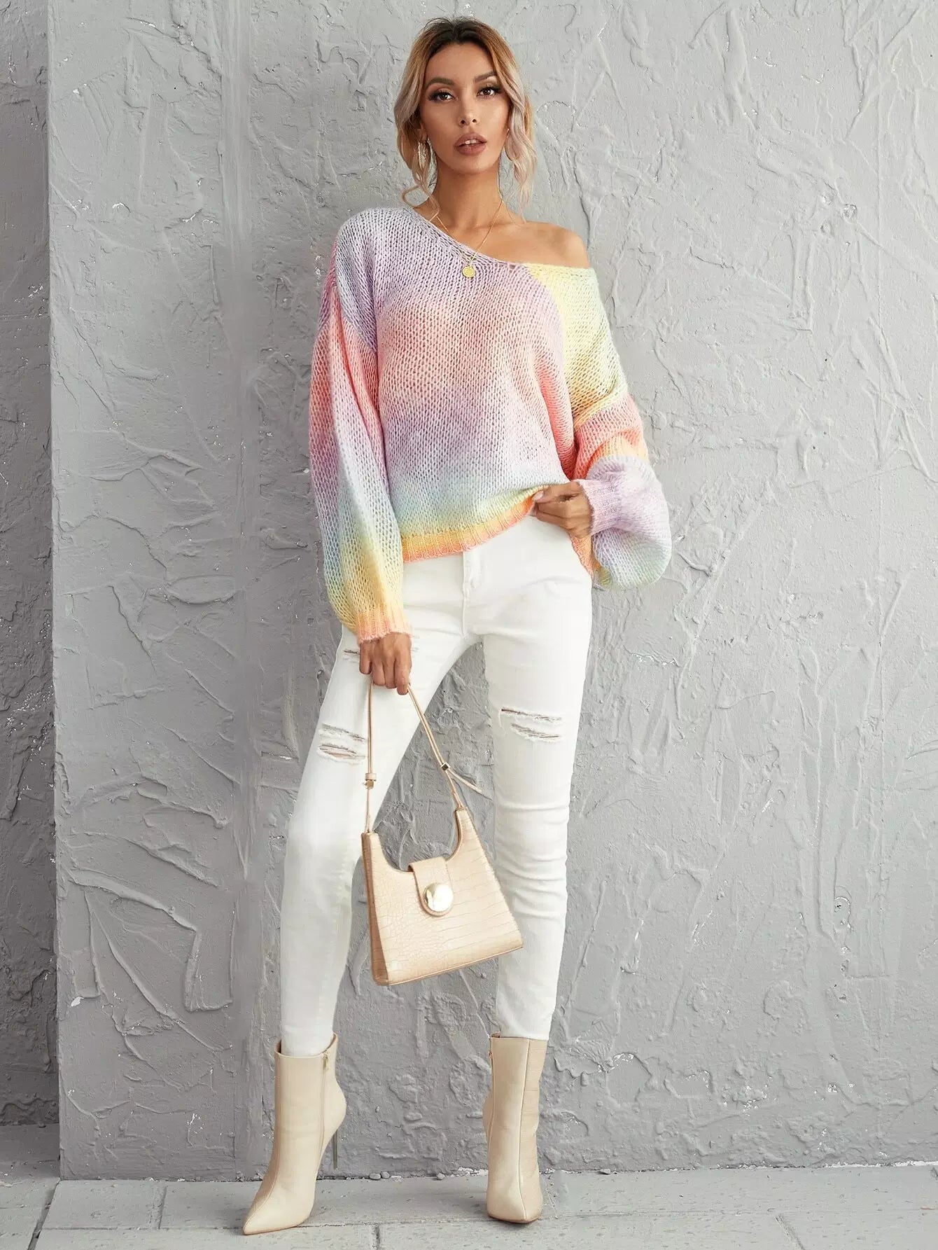 Lantern Sleeve Ombre Oversized Sweater