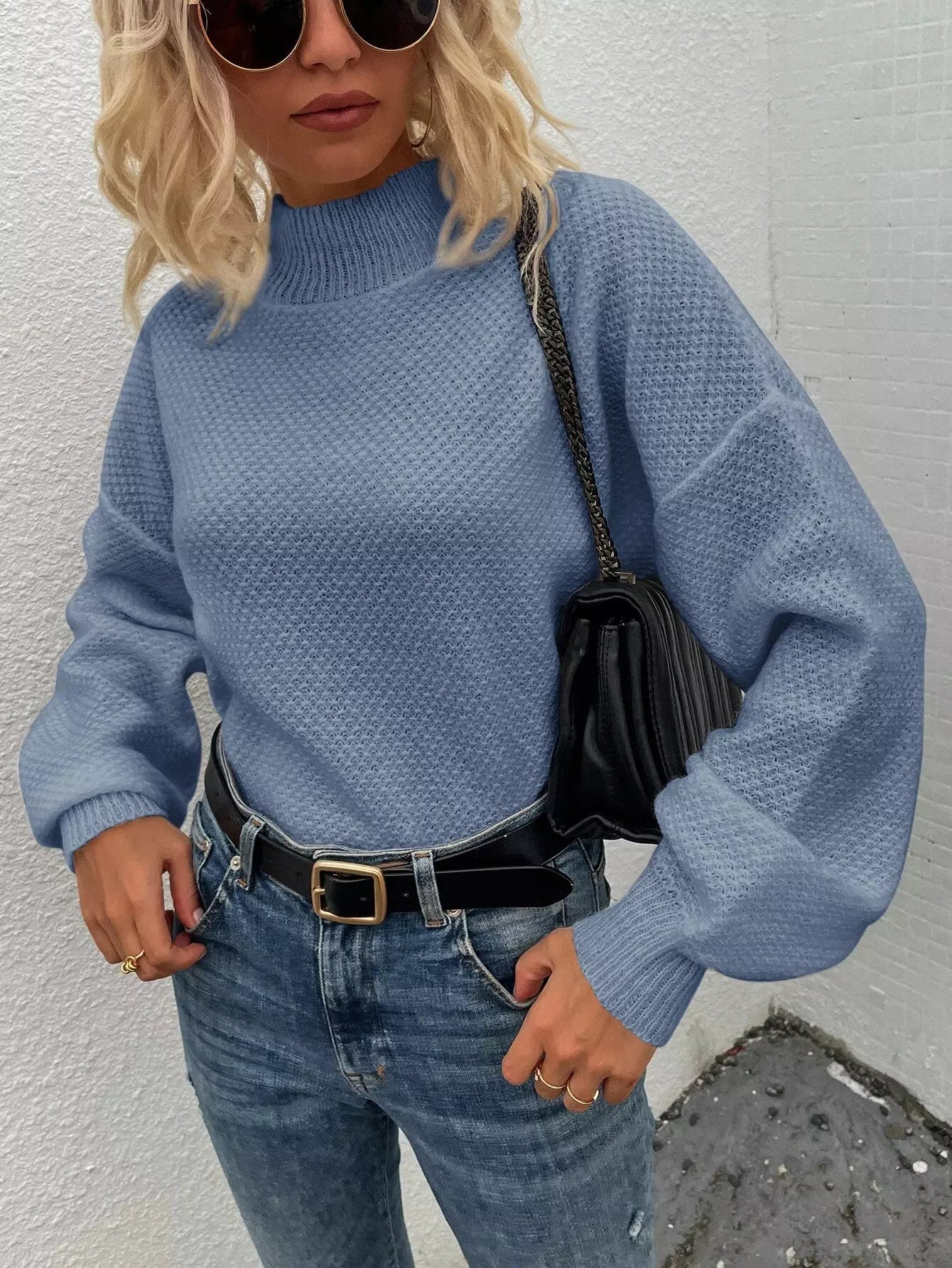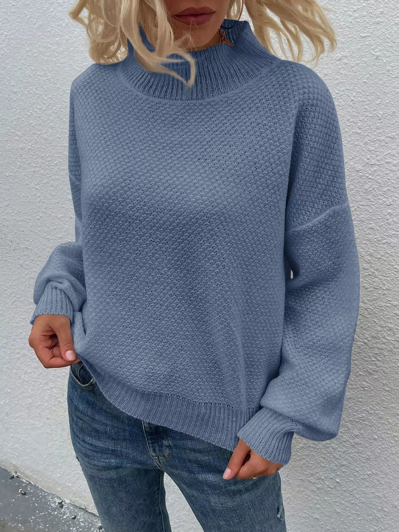 Mock Neck Lantern Sleeve Sweater